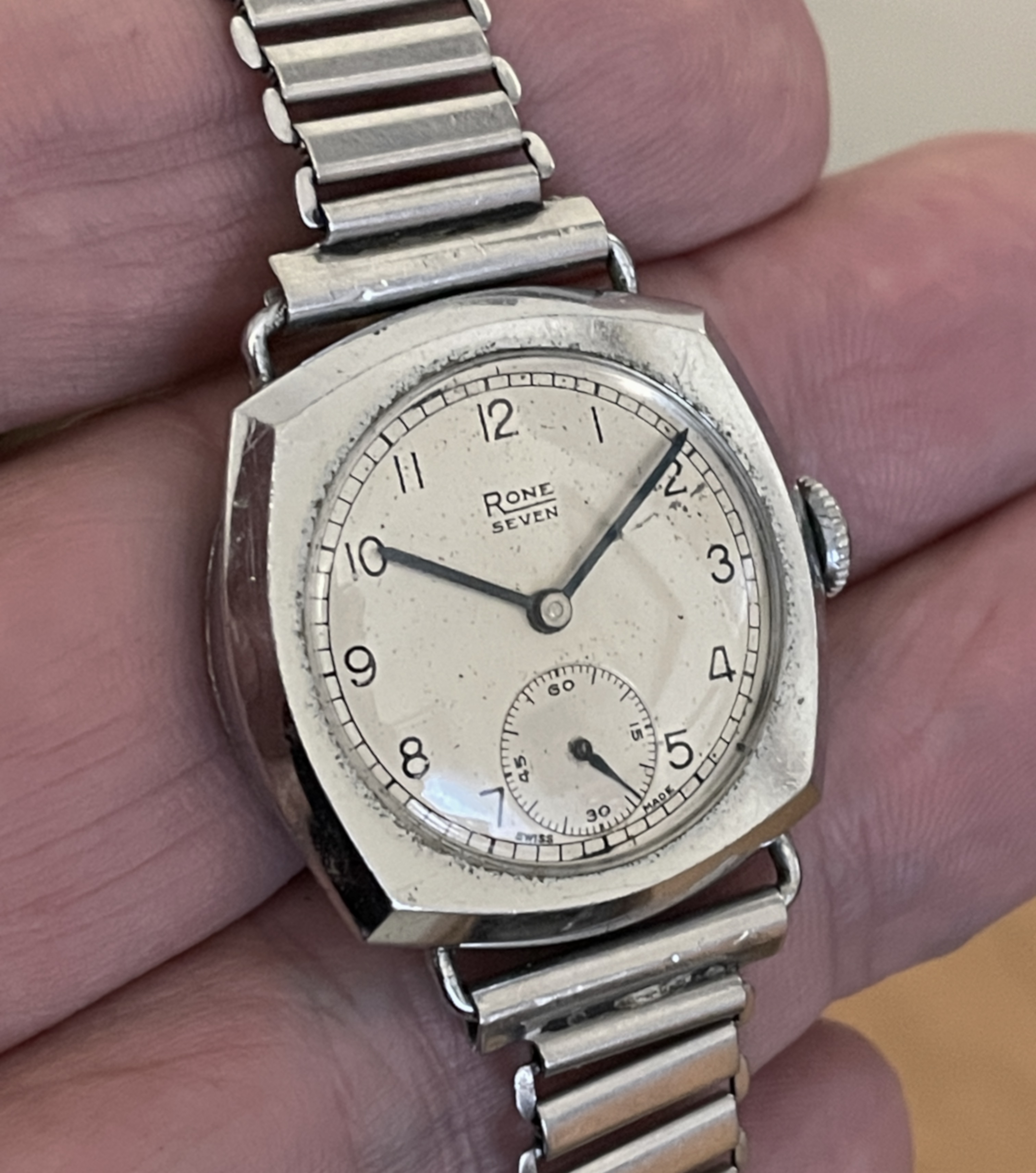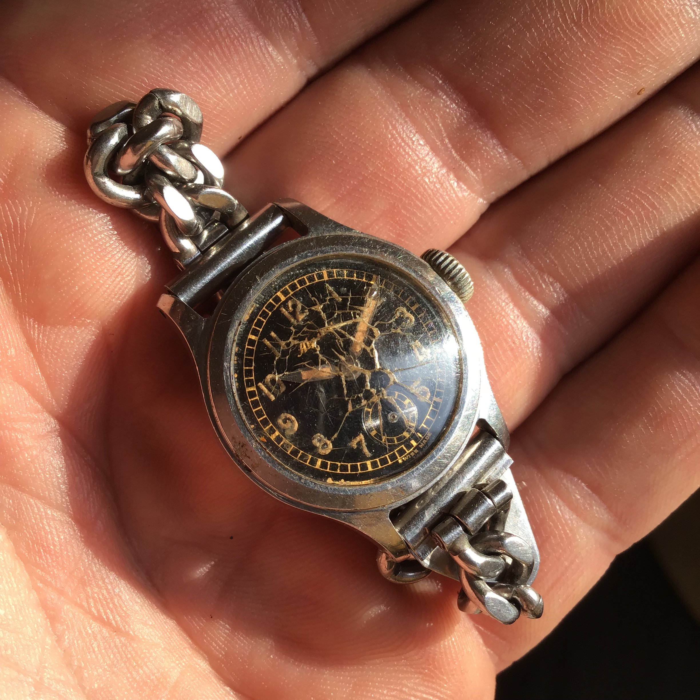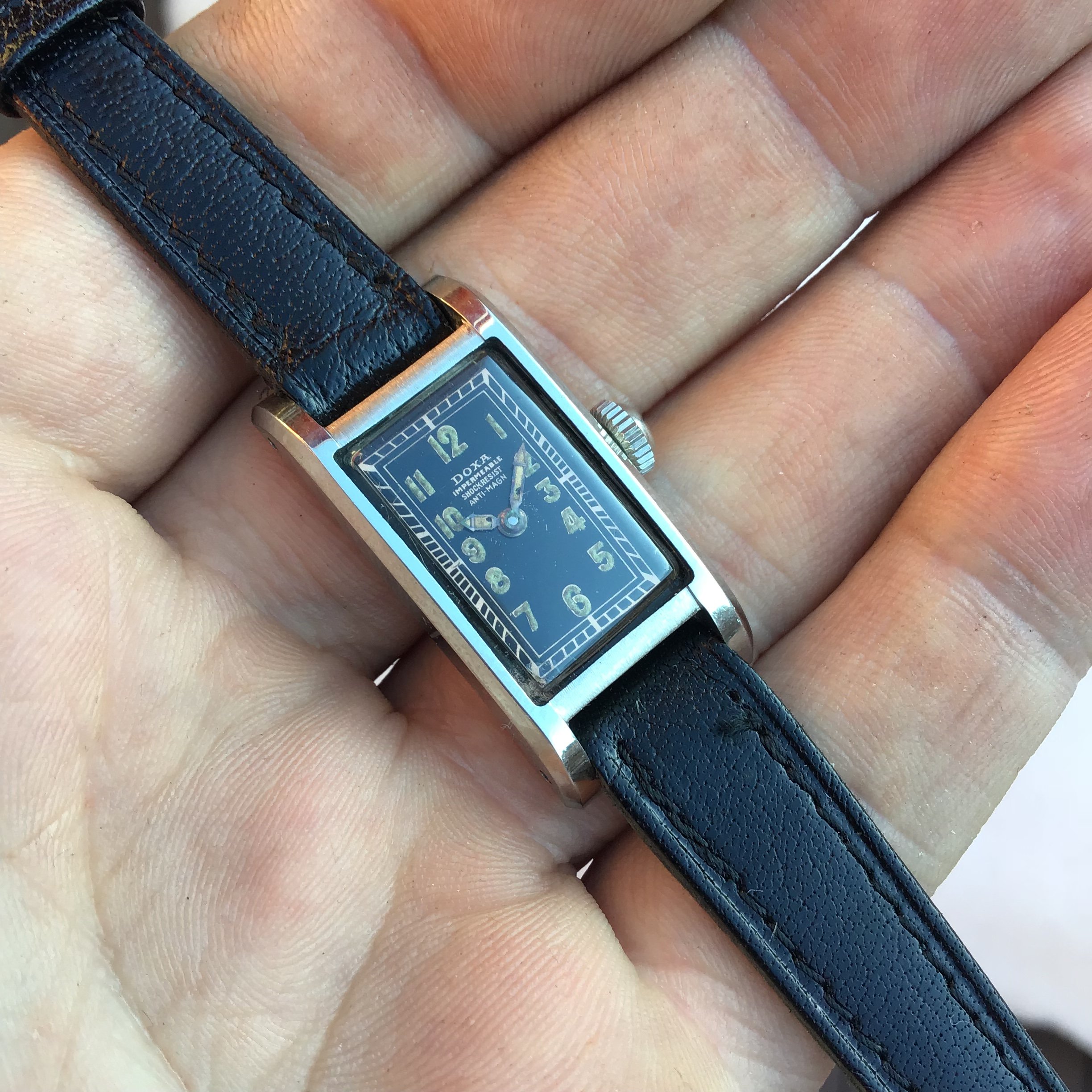 I suppose that these three Hamiltons would be considered small. The Piping Rocks are 1 1/8" across and 1 5/8" from lug to lug, while the Turner is 7/8" across and 1 3/8" from lug to lug.