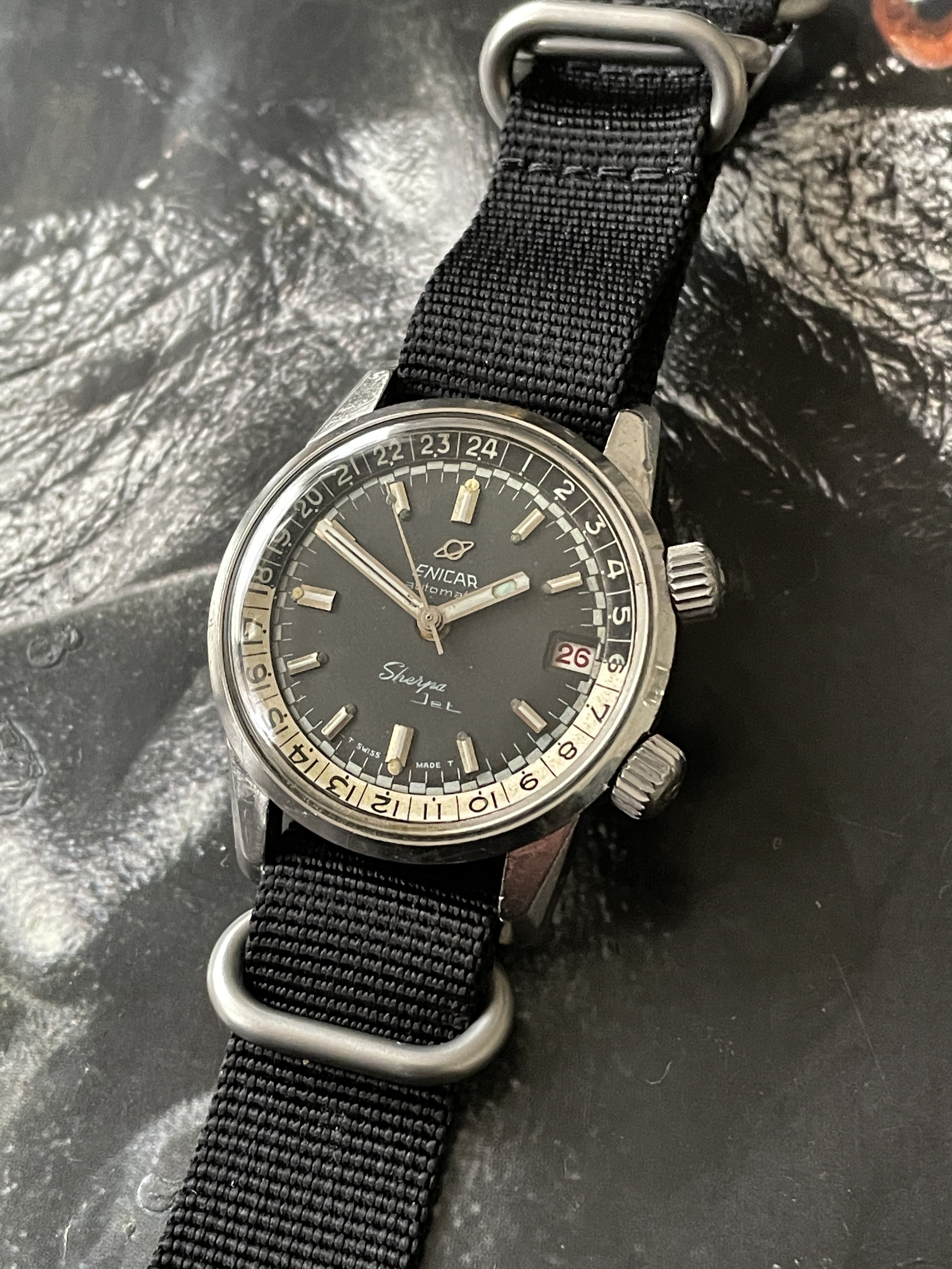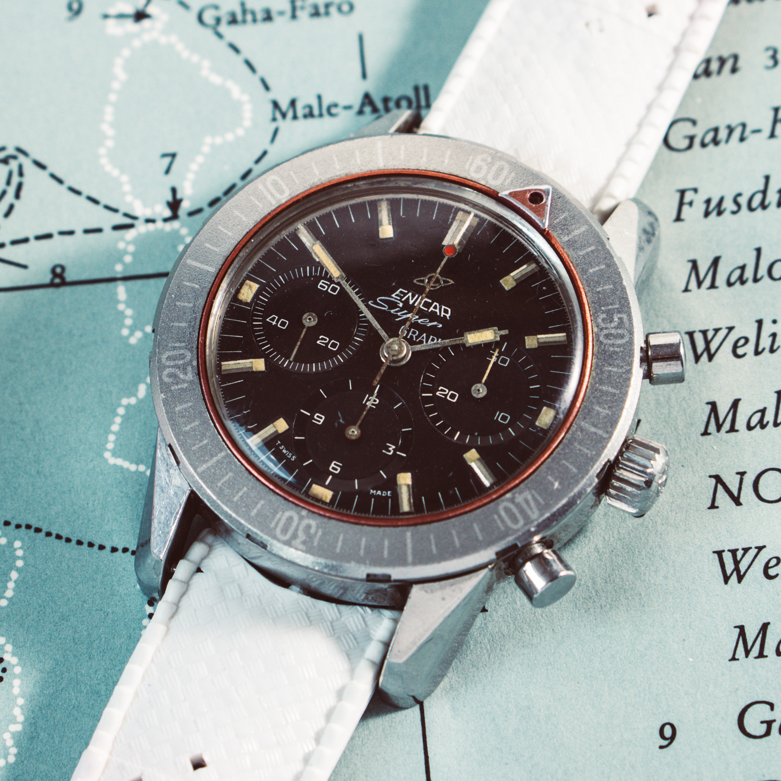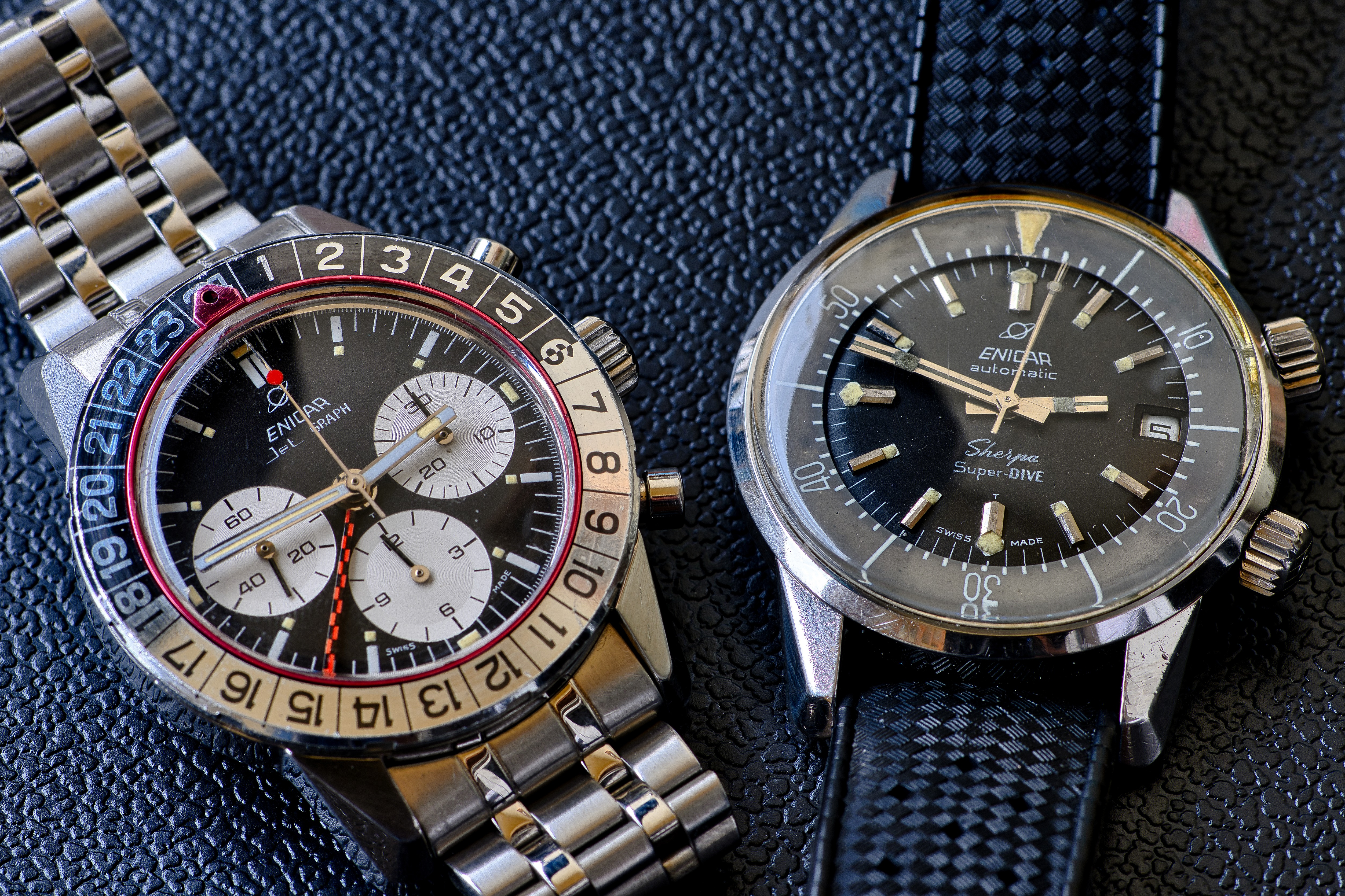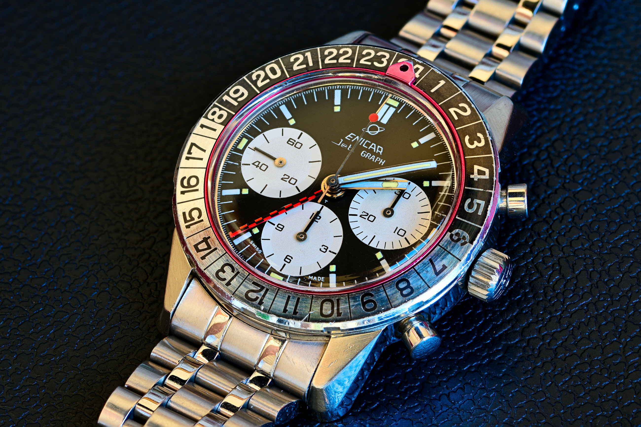 My pick-up at a local watch fair on Sunday. Enicar Ultrasonic chronograph with Valjoux 92 incl. box, original strap and buckle.
