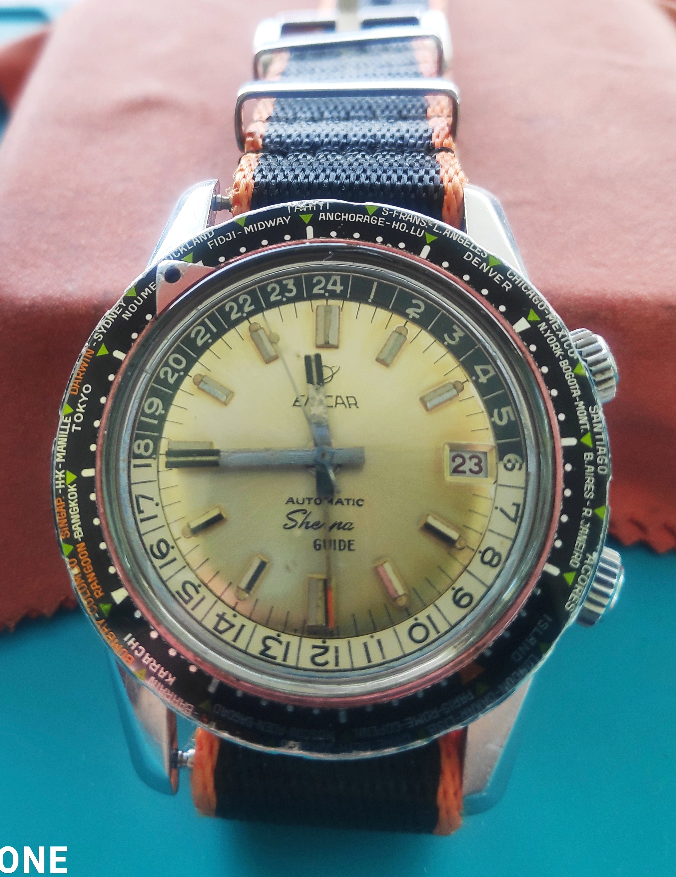 And last is a one of a kind watch. A Pre Production Sherpa Star Diver. Allready with saphire crystal in 1968/69 and a huge 43mm case. The dial was a test dial and didnt made it into the later production model.