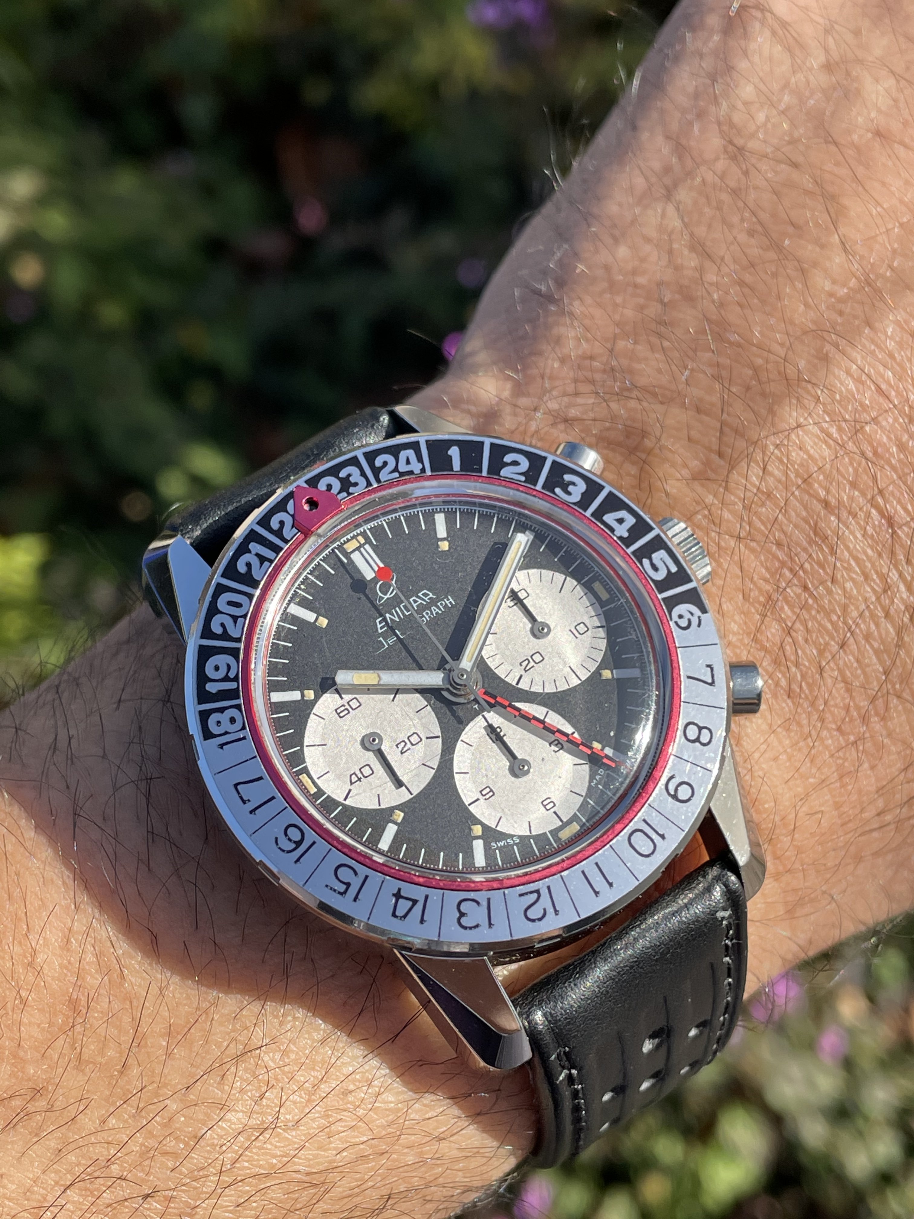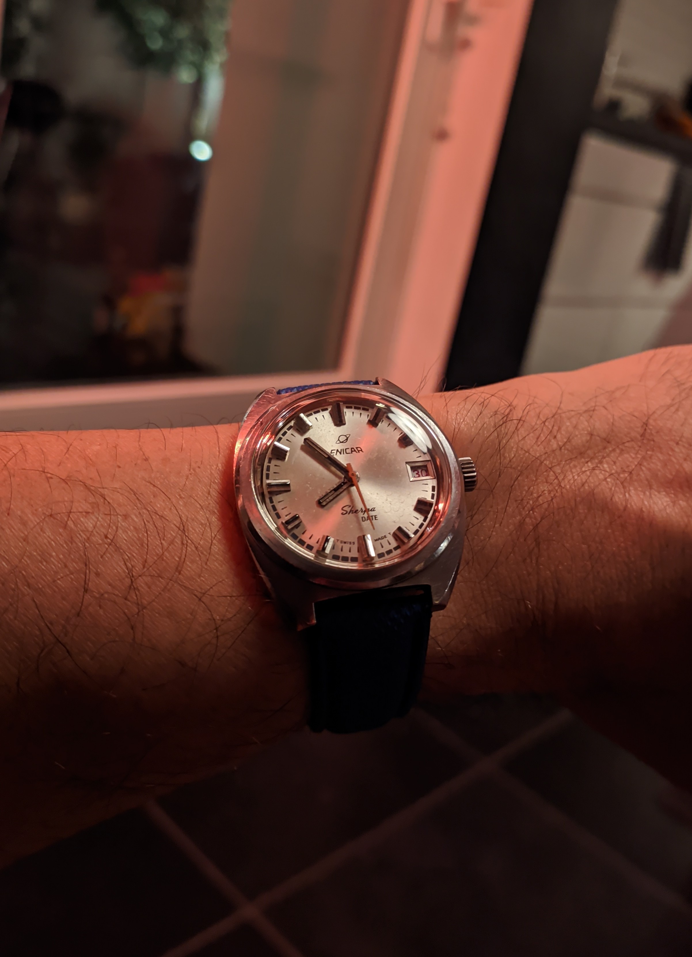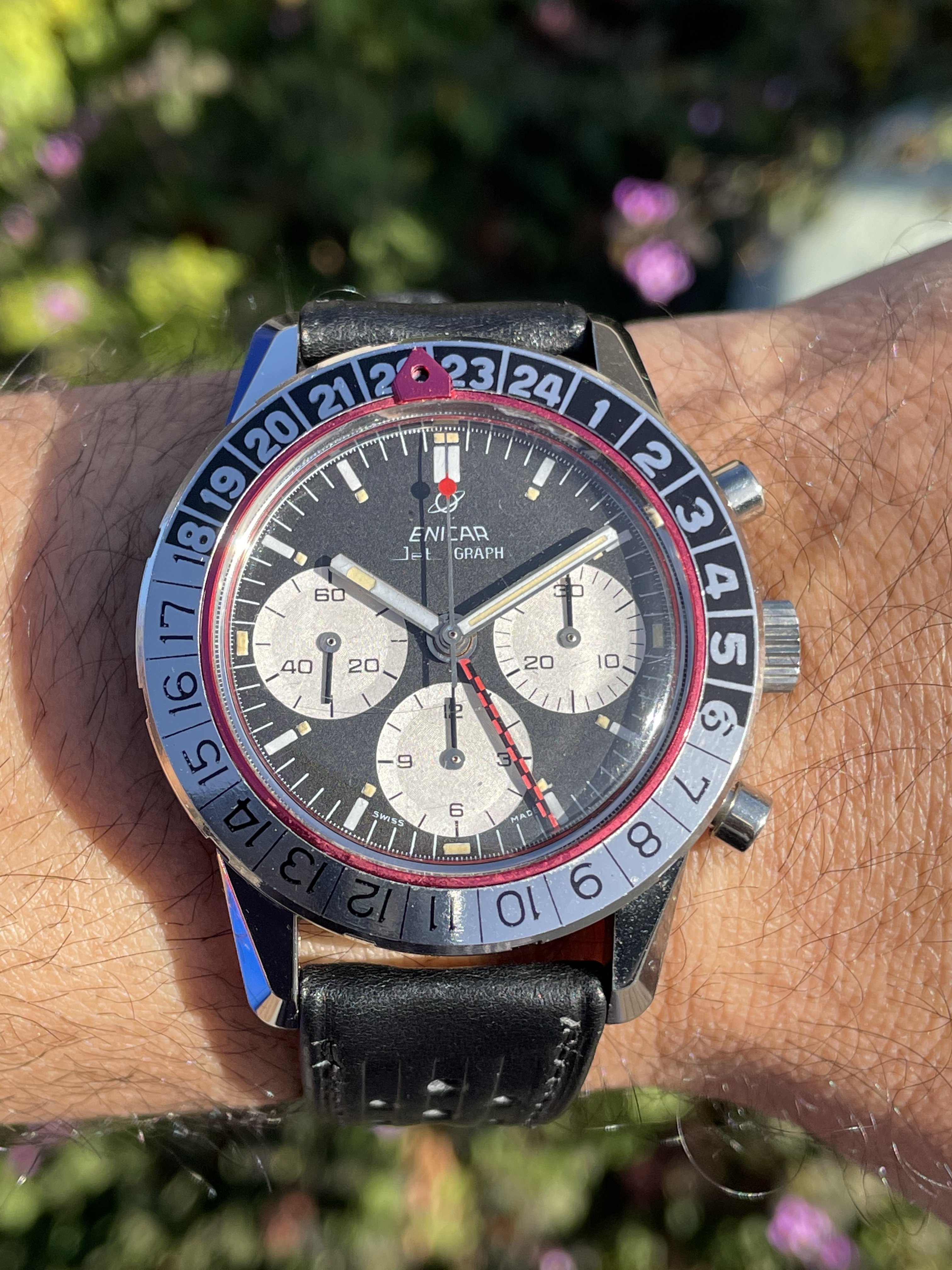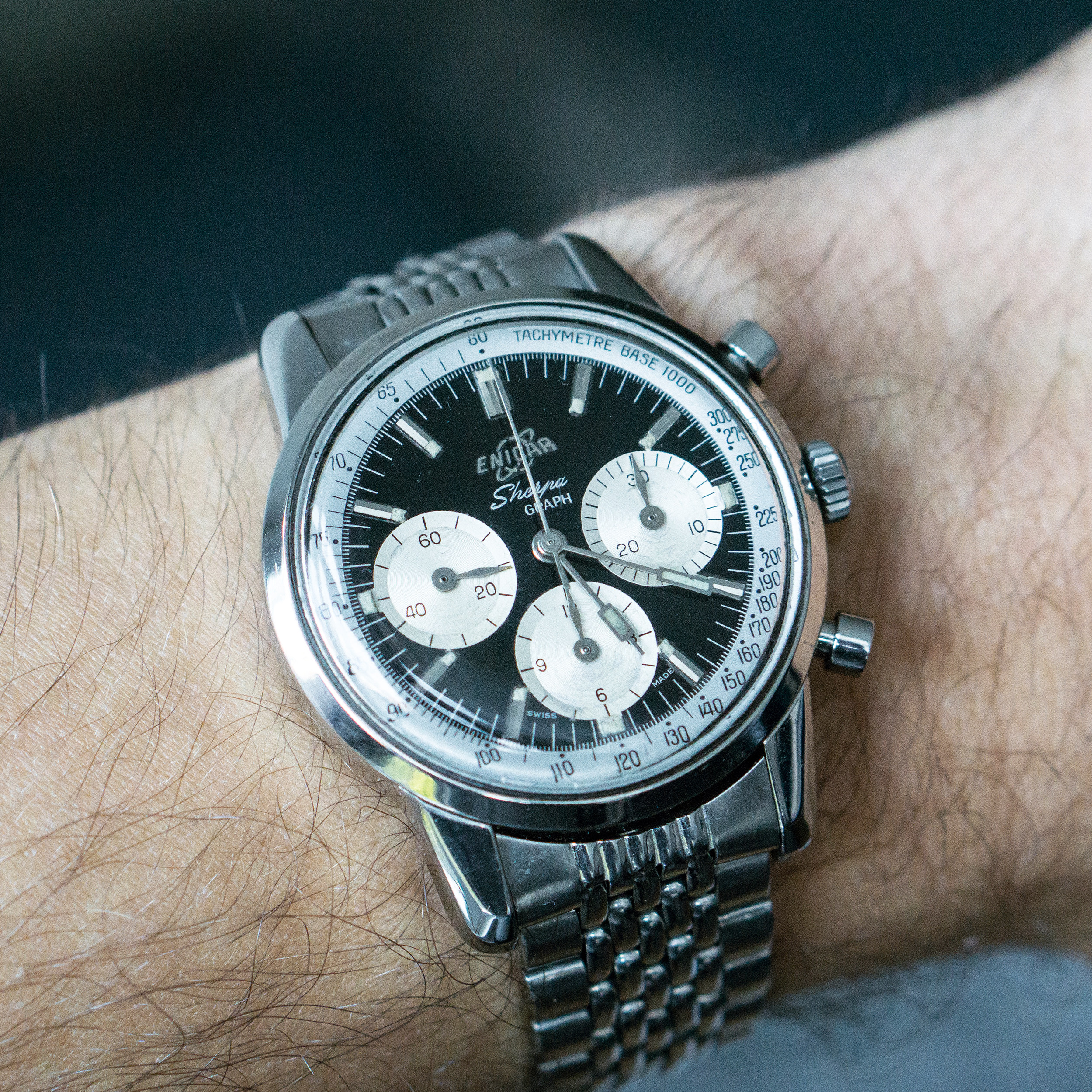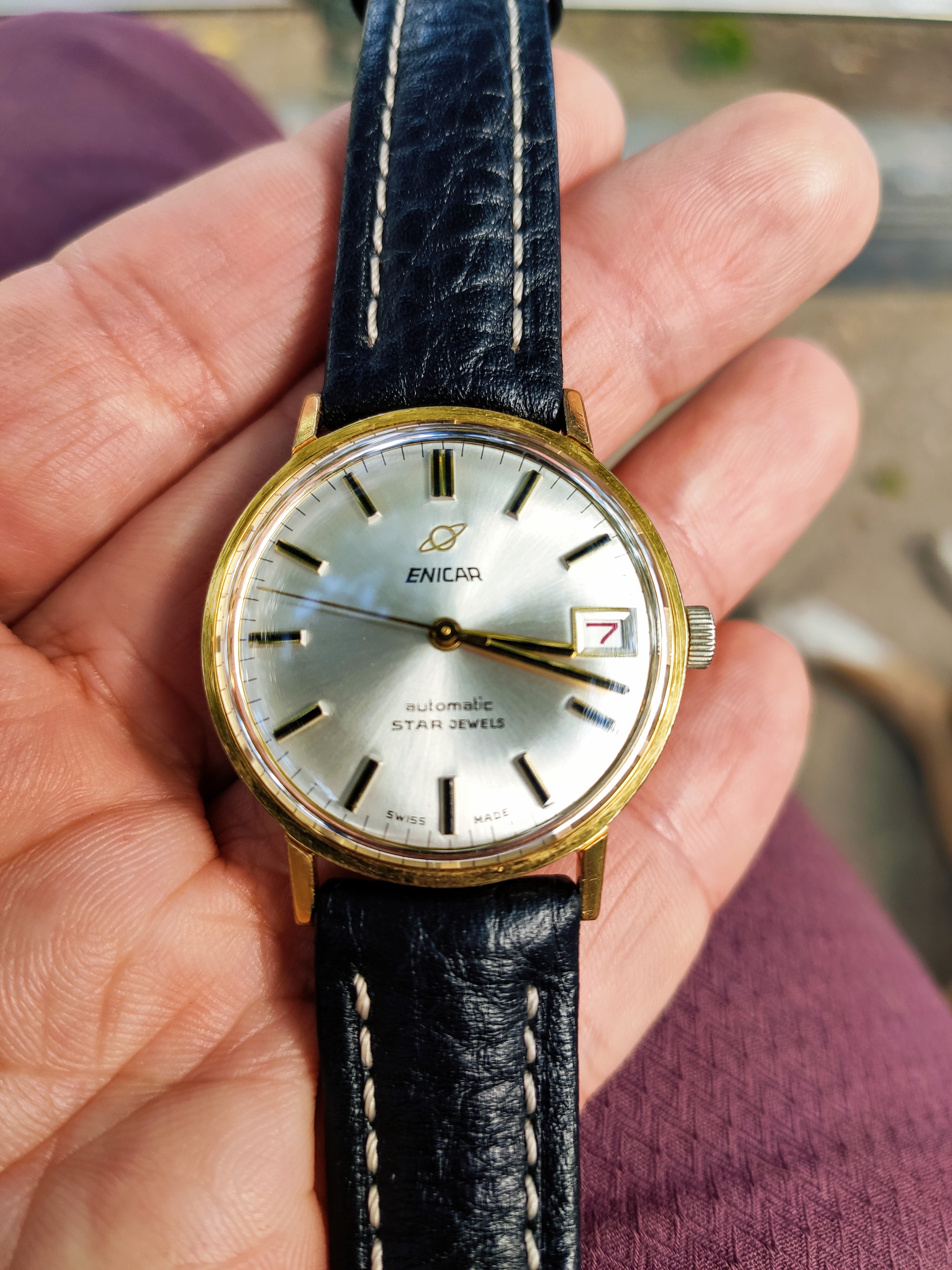 A seller in Japan I had got to know sent me this and I went into 'research overdrive' for a day - 37mm case, paddle hands, Enicar on the dial, absolutely stunning condition - what more could I ask for? It took a good while to arrive and I've since had it serviced, but it gets a lot of time on my wrist: great size and so many intricate details.