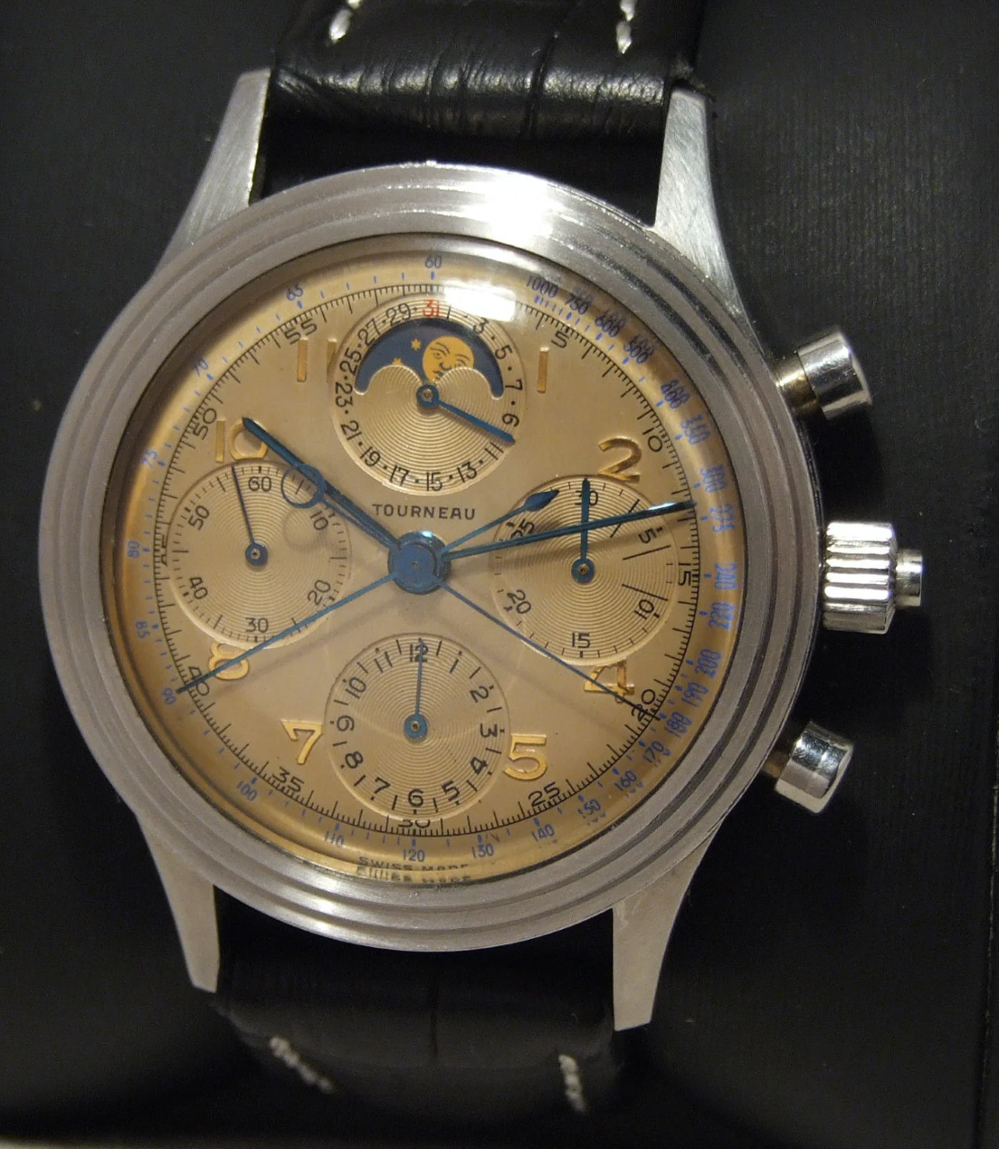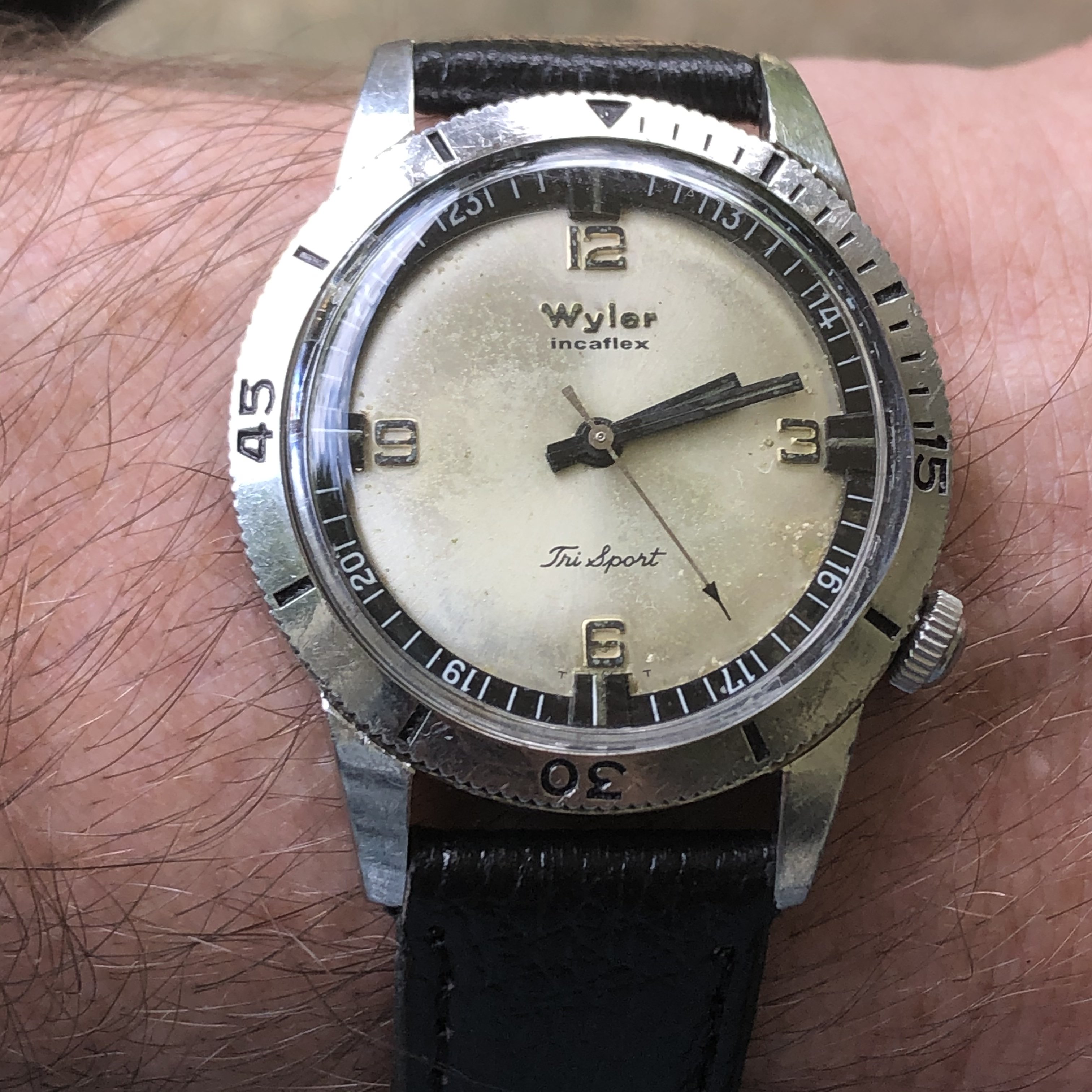 Gallet Flying Officer. Needs better sweep hand (check). Needs service, crystal, and repair of chrono functions.