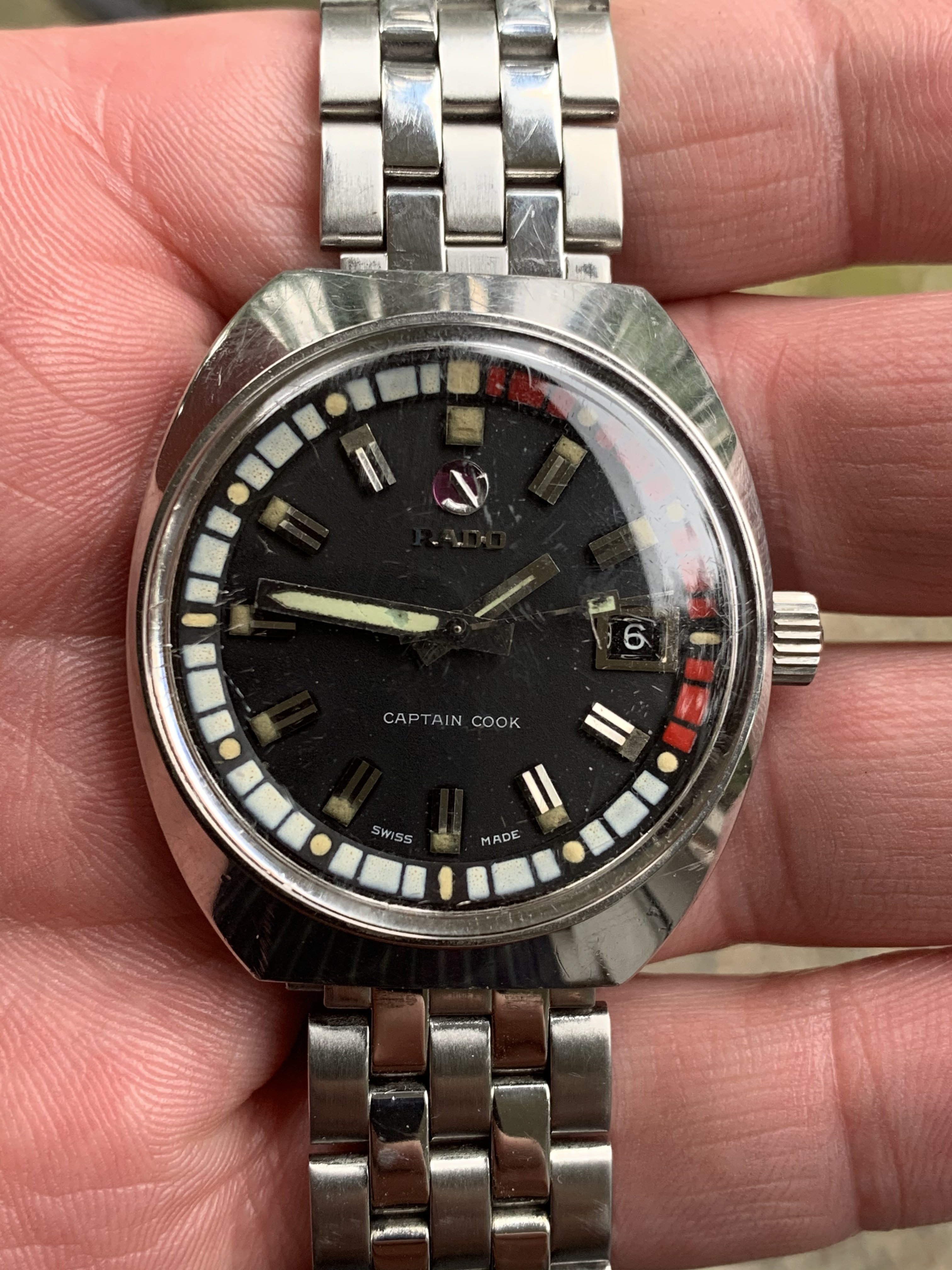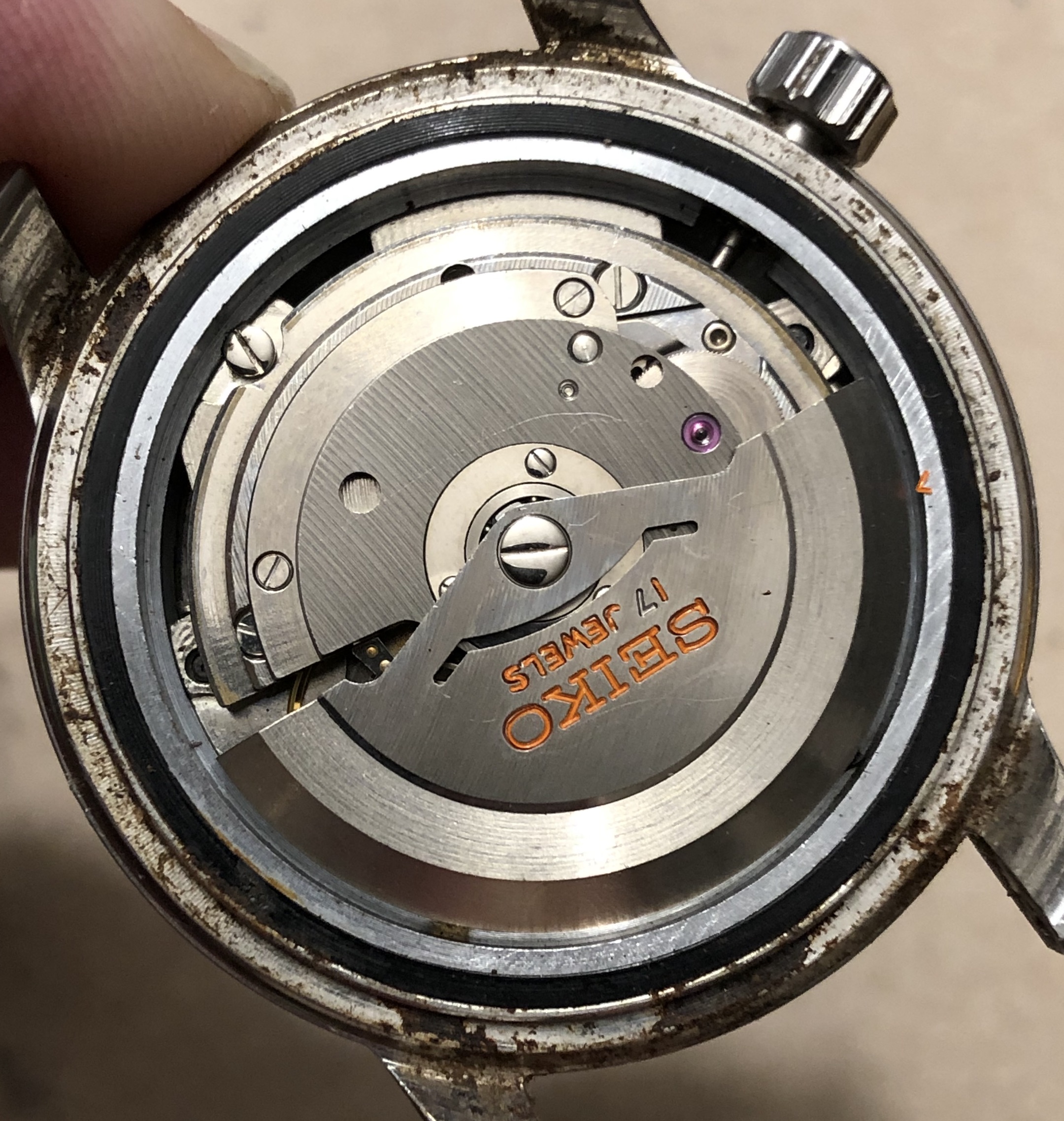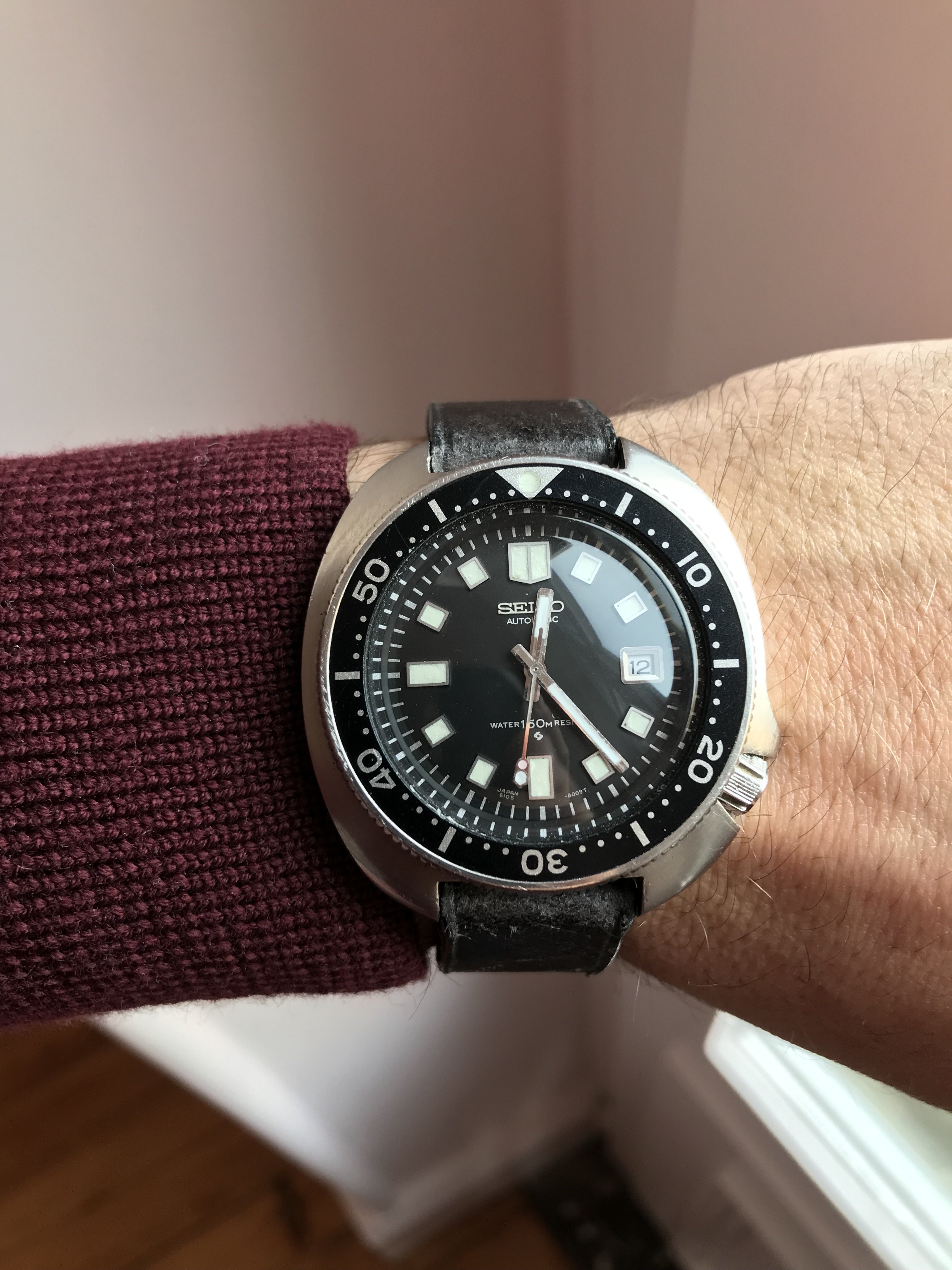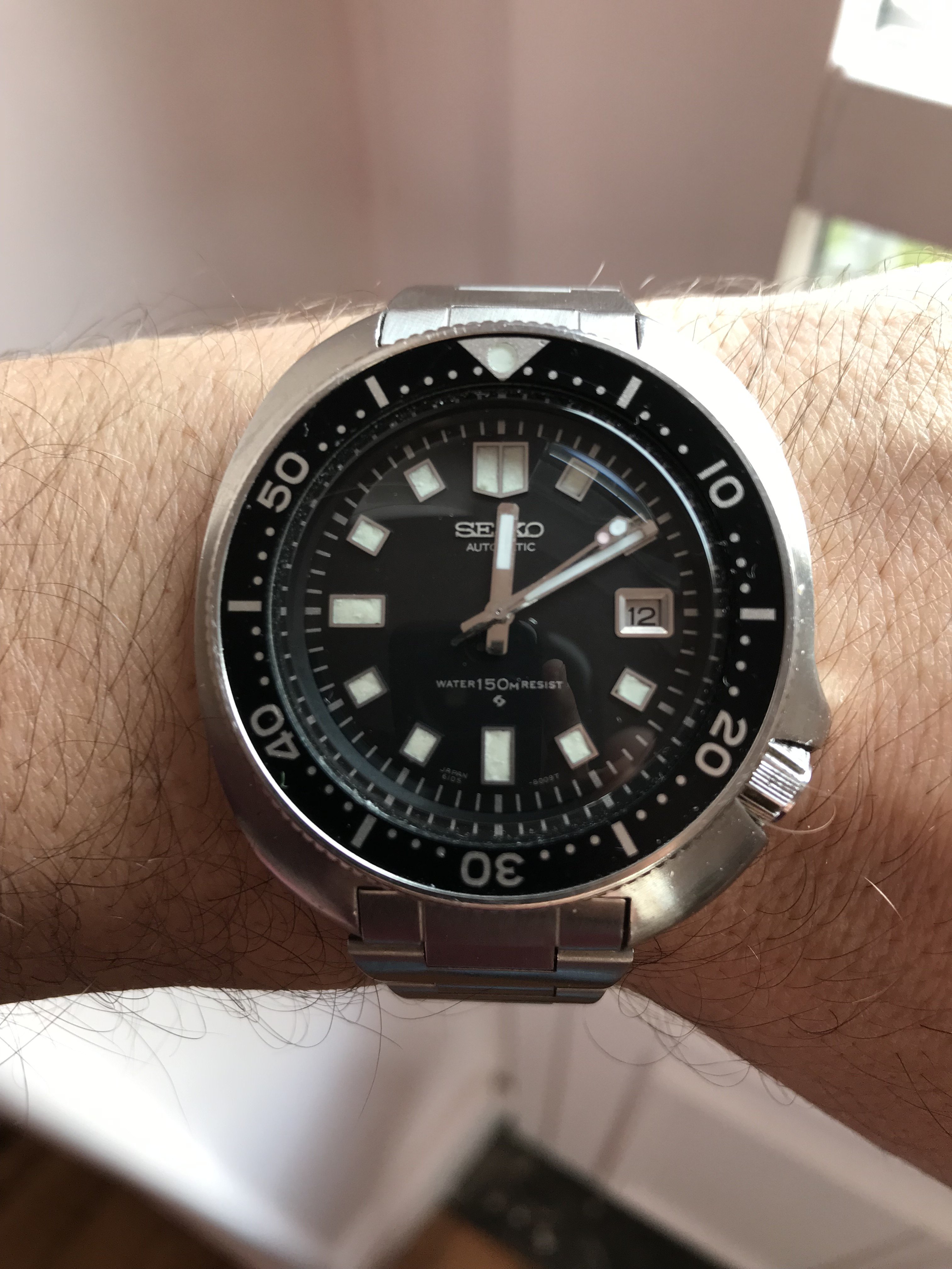 seiko 6105_8110 in a very nice shape (case and dial, movement not needing a service, coming with original bracelet) from the son of the first owner but unfortunately with badly relumed hands (as confirmed by fellow OF members) so I had them relumed too with James Hyman in the UK and got a new crystal from Mr Klein in the US. All are sitting somewhere at my watchmaker for being put back together