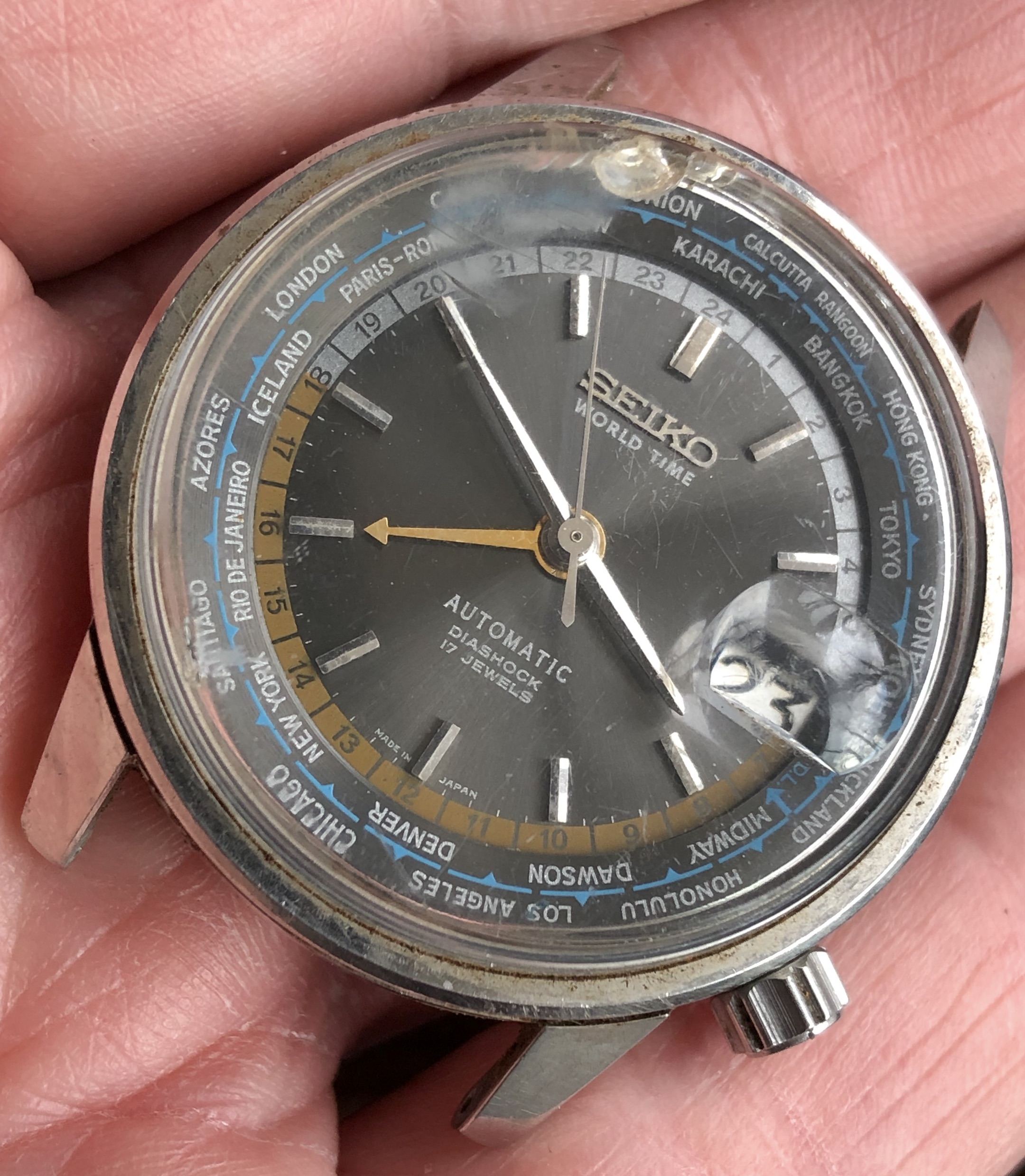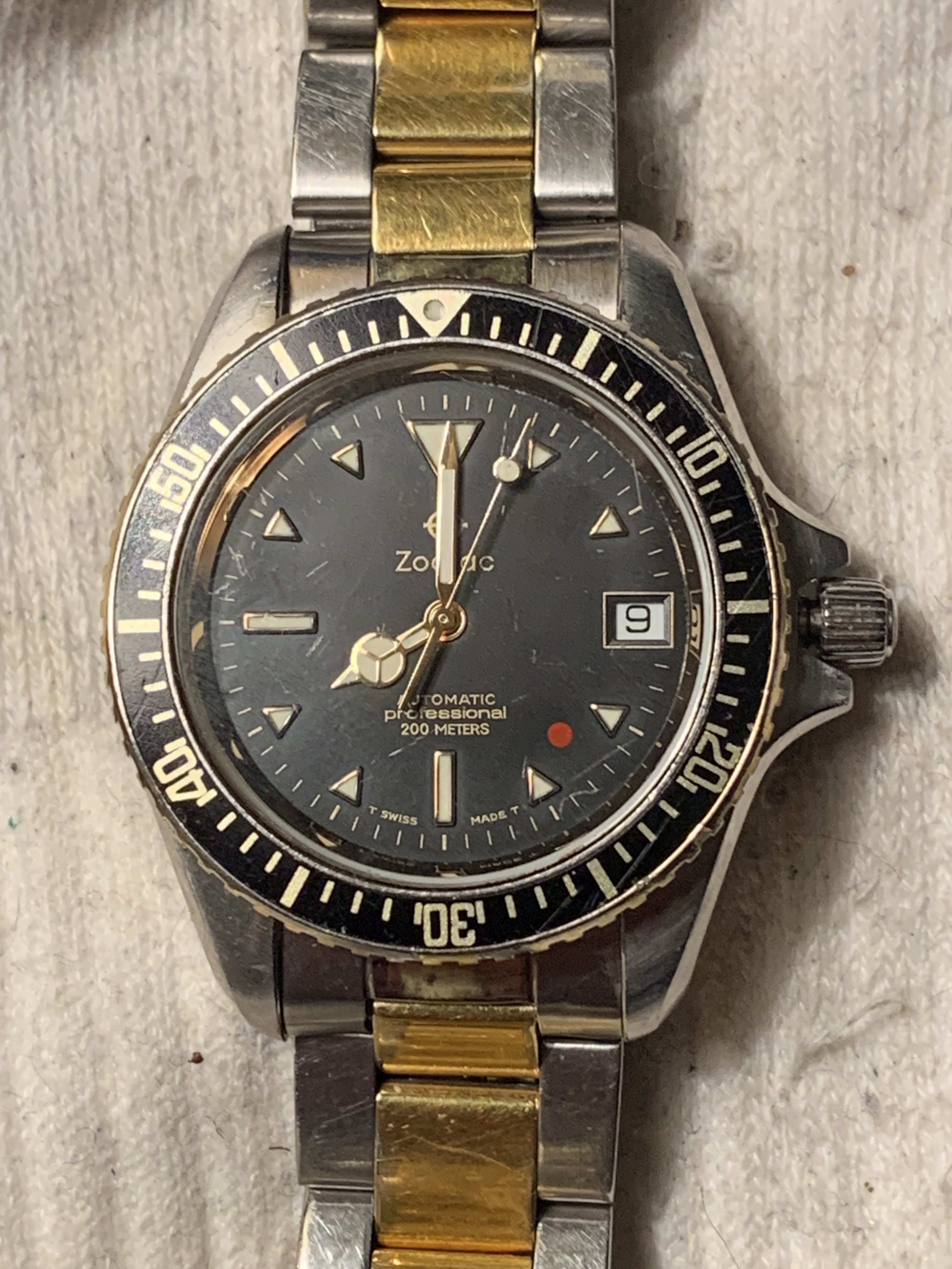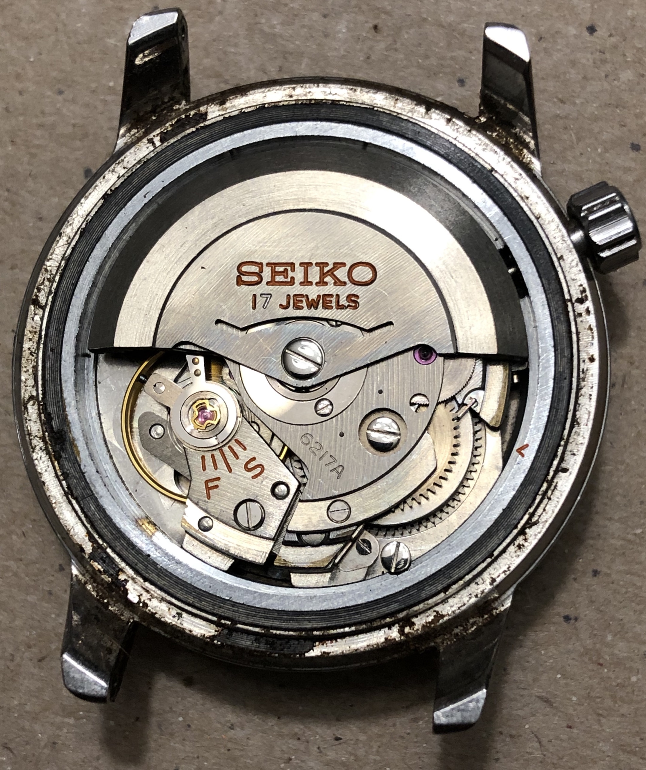 seiko 6105_8110 in a very nice shape (case and dial, movement not needing a service, coming with original bracelet) from the son of the first owner but unfortunately with badly relumed hands (as confirmed by fellow OF members) so I had them relumed too with James Hyman in the UK and got a new crystal from Mr Klein in the US. All are sitting somewhere at my watchmaker for being put back together