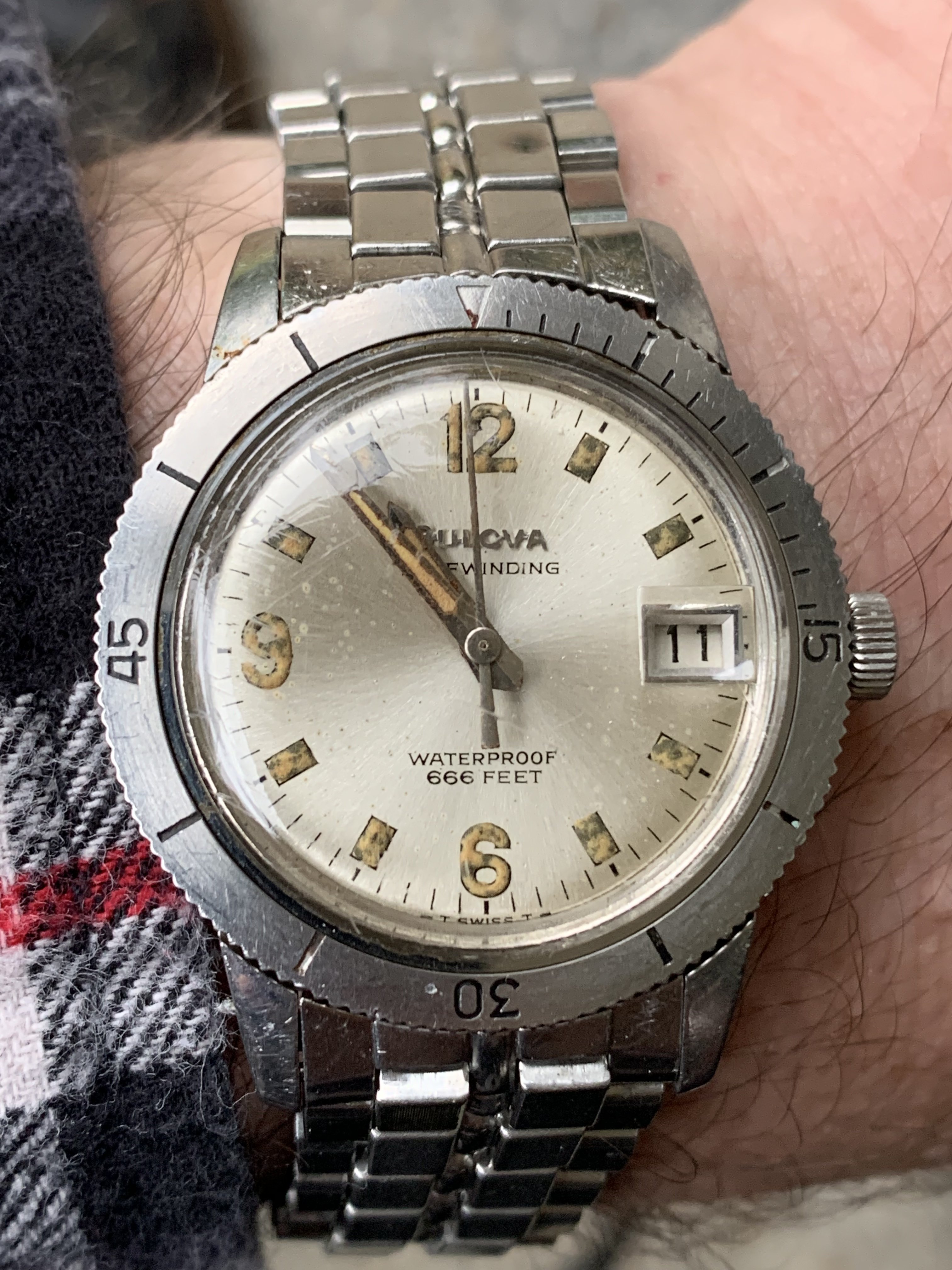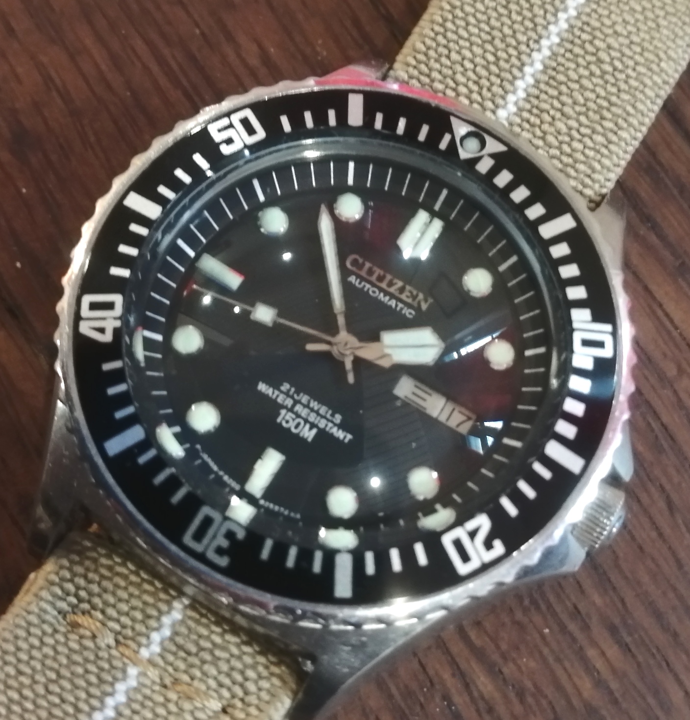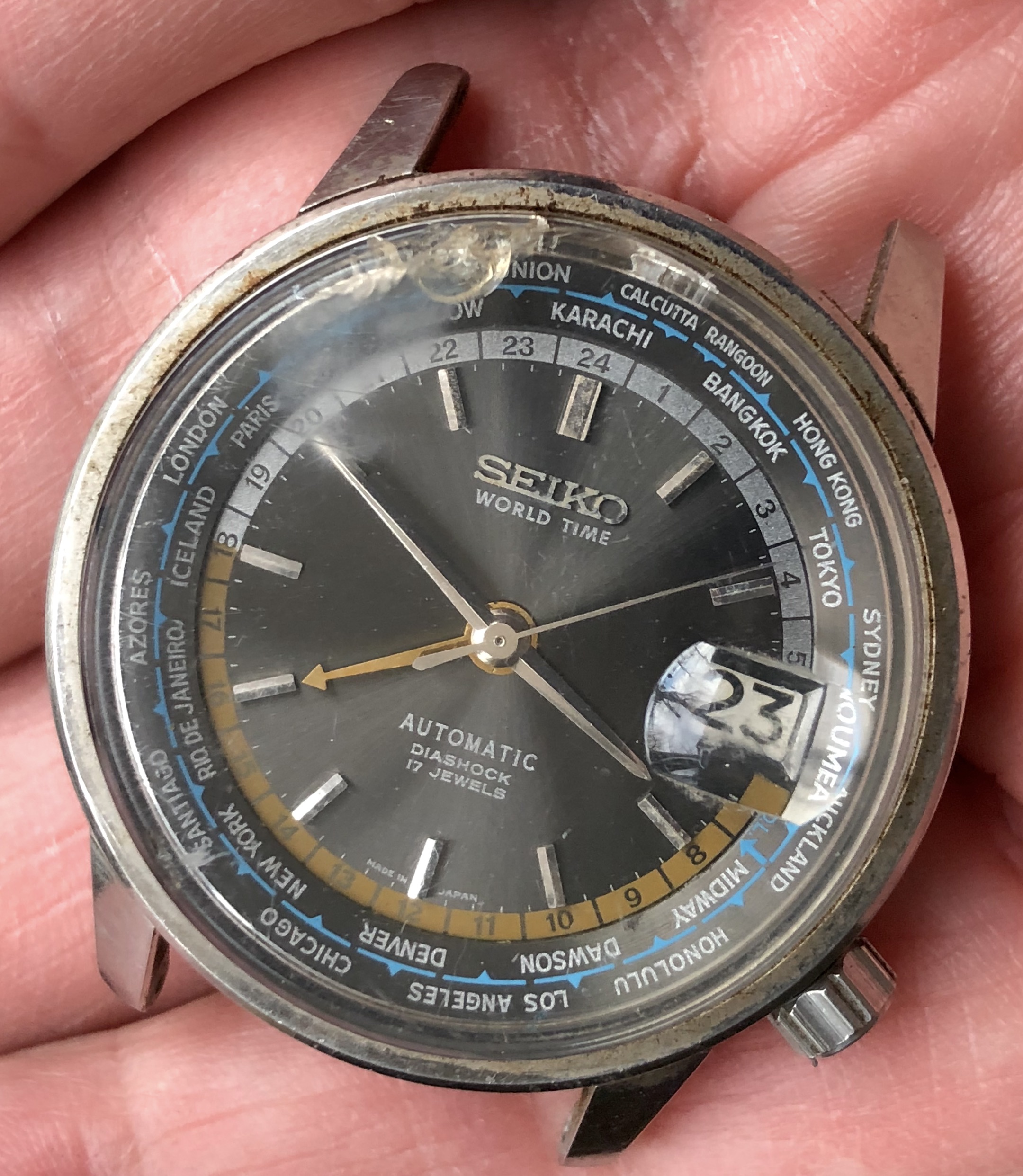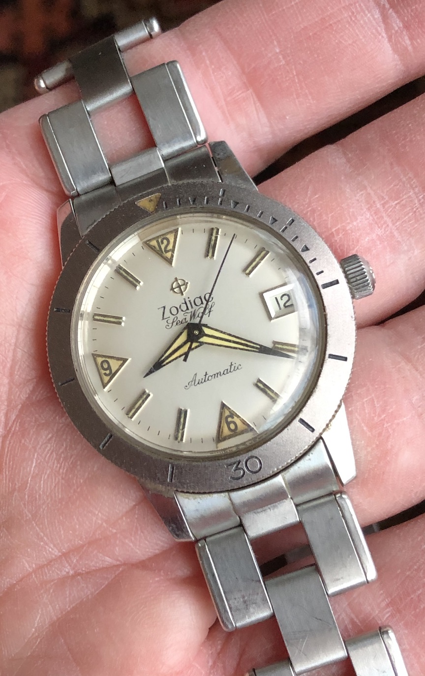 seiko 6105_8110 in a very nice shape (case and dial, movement not needing a service, coming with original bracelet) from the son of the first owner but unfortunately with badly relumed hands (as confirmed by fellow OF members) so I had them relumed too with James Hyman in the UK and got a new crystal from Mr Klein in the US. All are sitting somewhere at my watchmaker for being put back together
