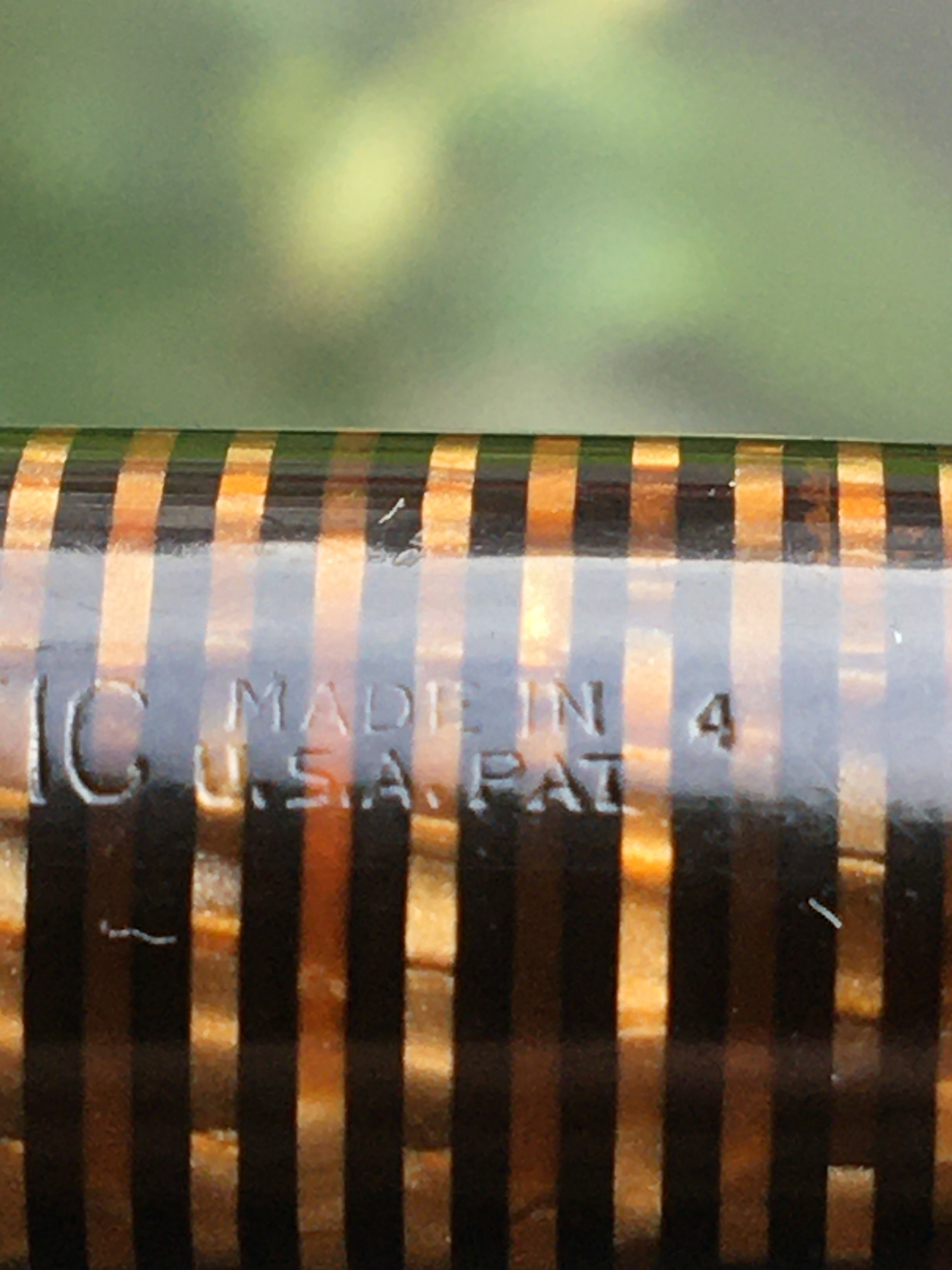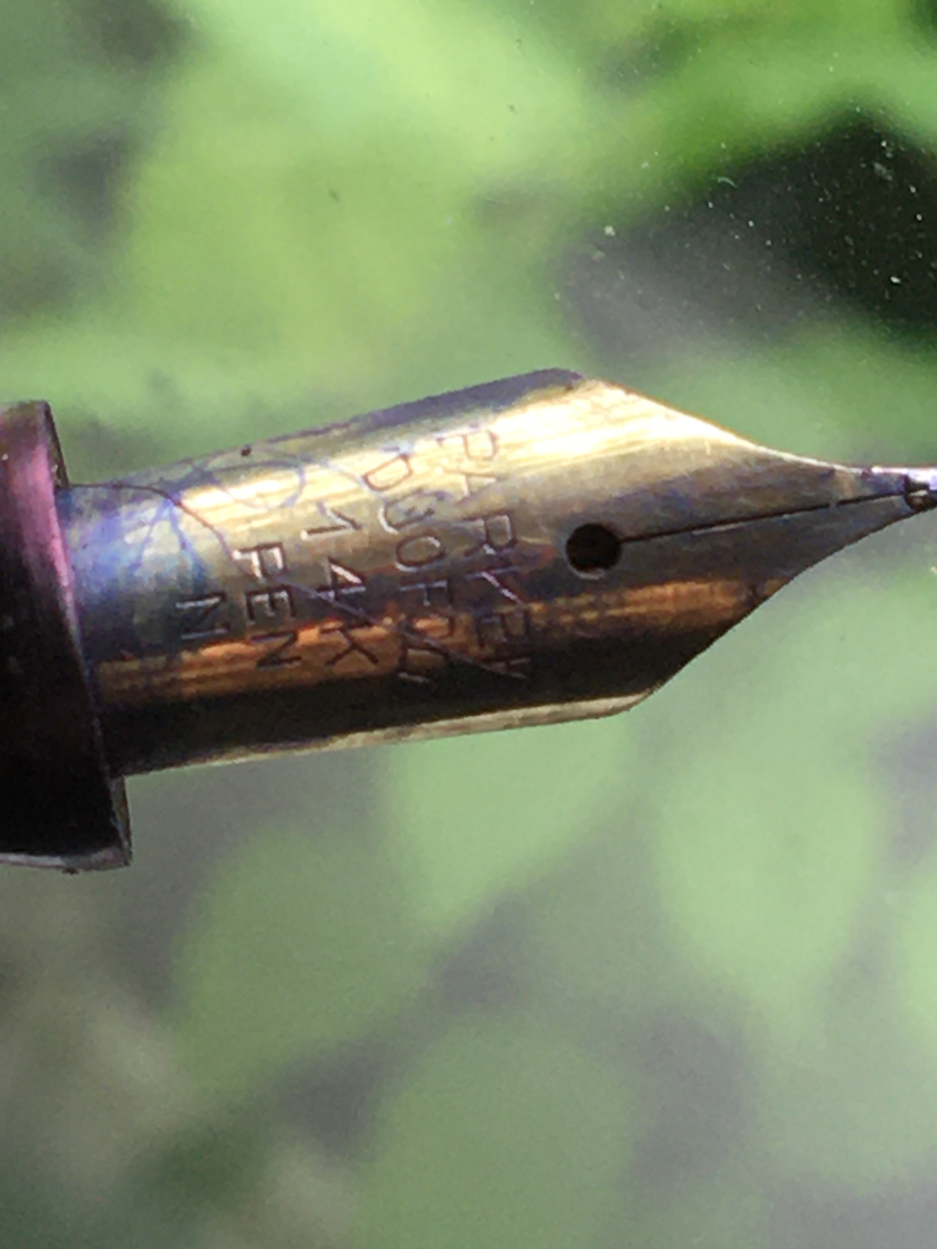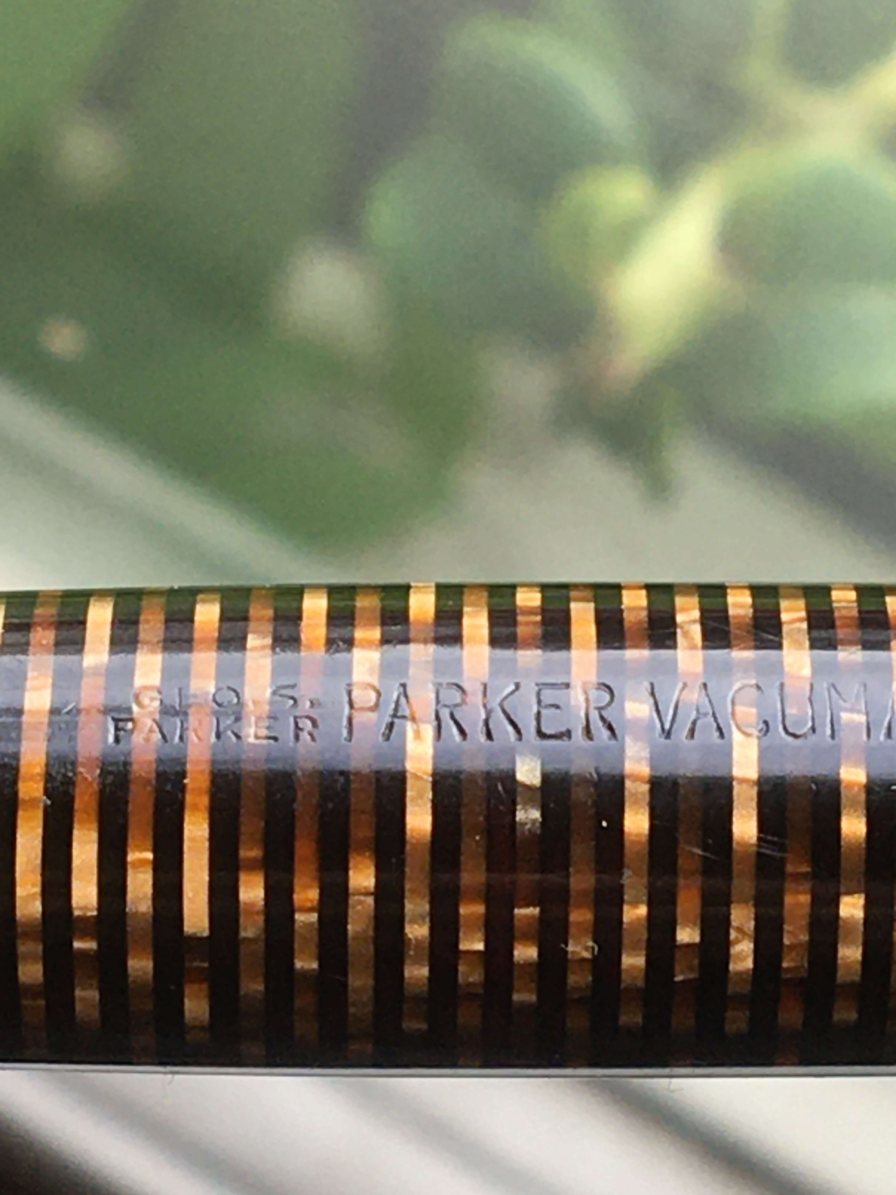 you can still get rubber diaphragms for these if you wanted to get it working. The nib is solid gold and they are lovely to write with. Here is the barrel on one of mine magnified. The 53 means it was made in 1953.