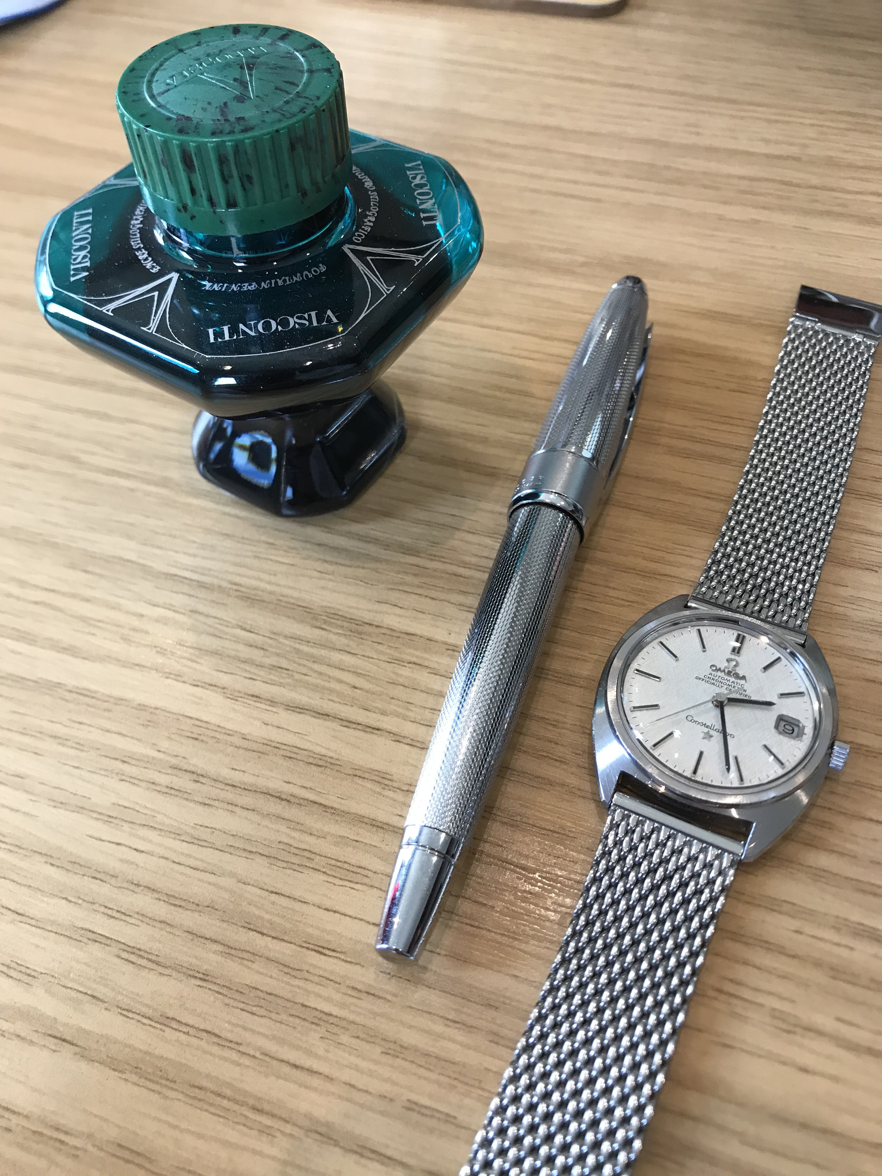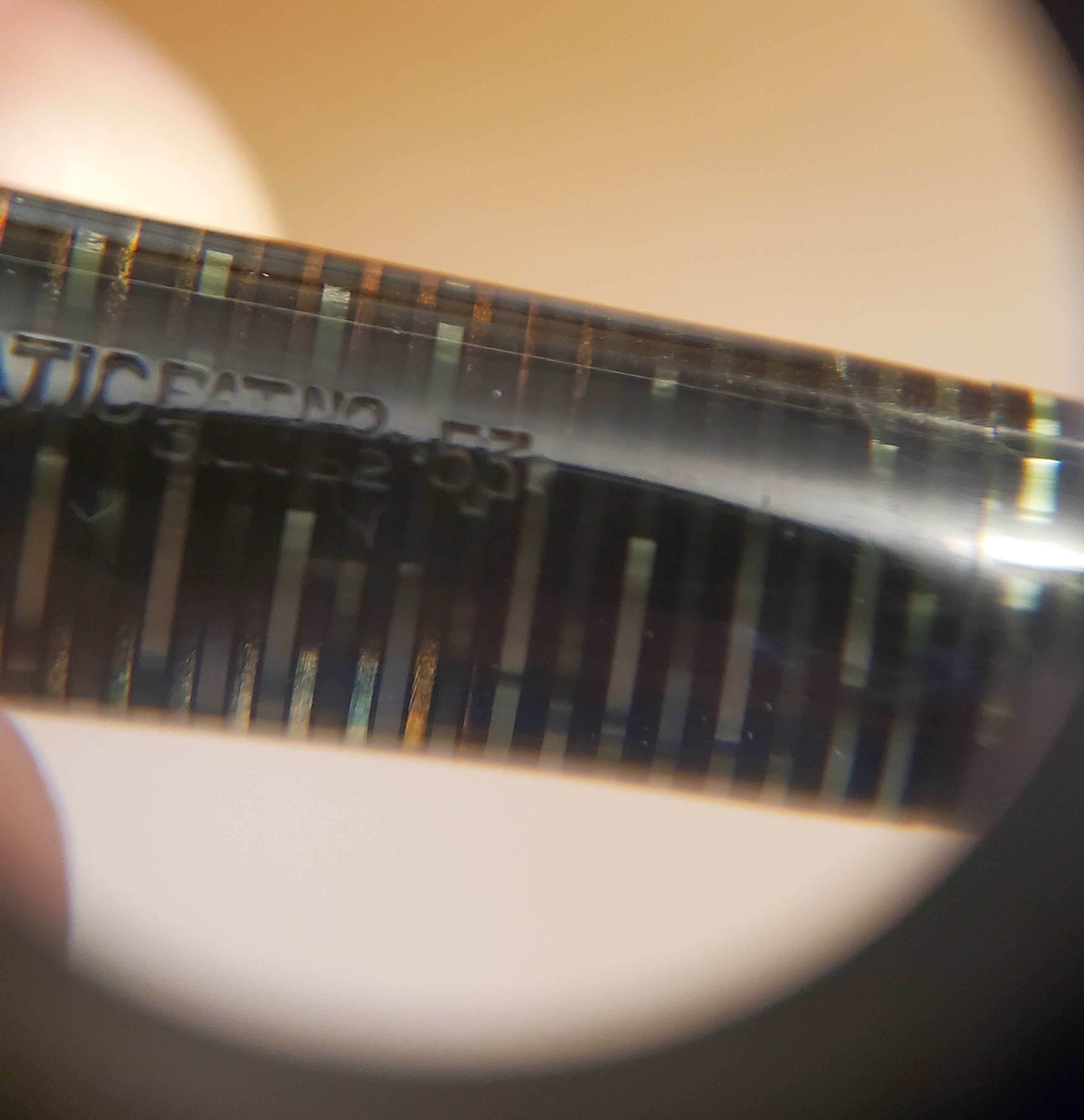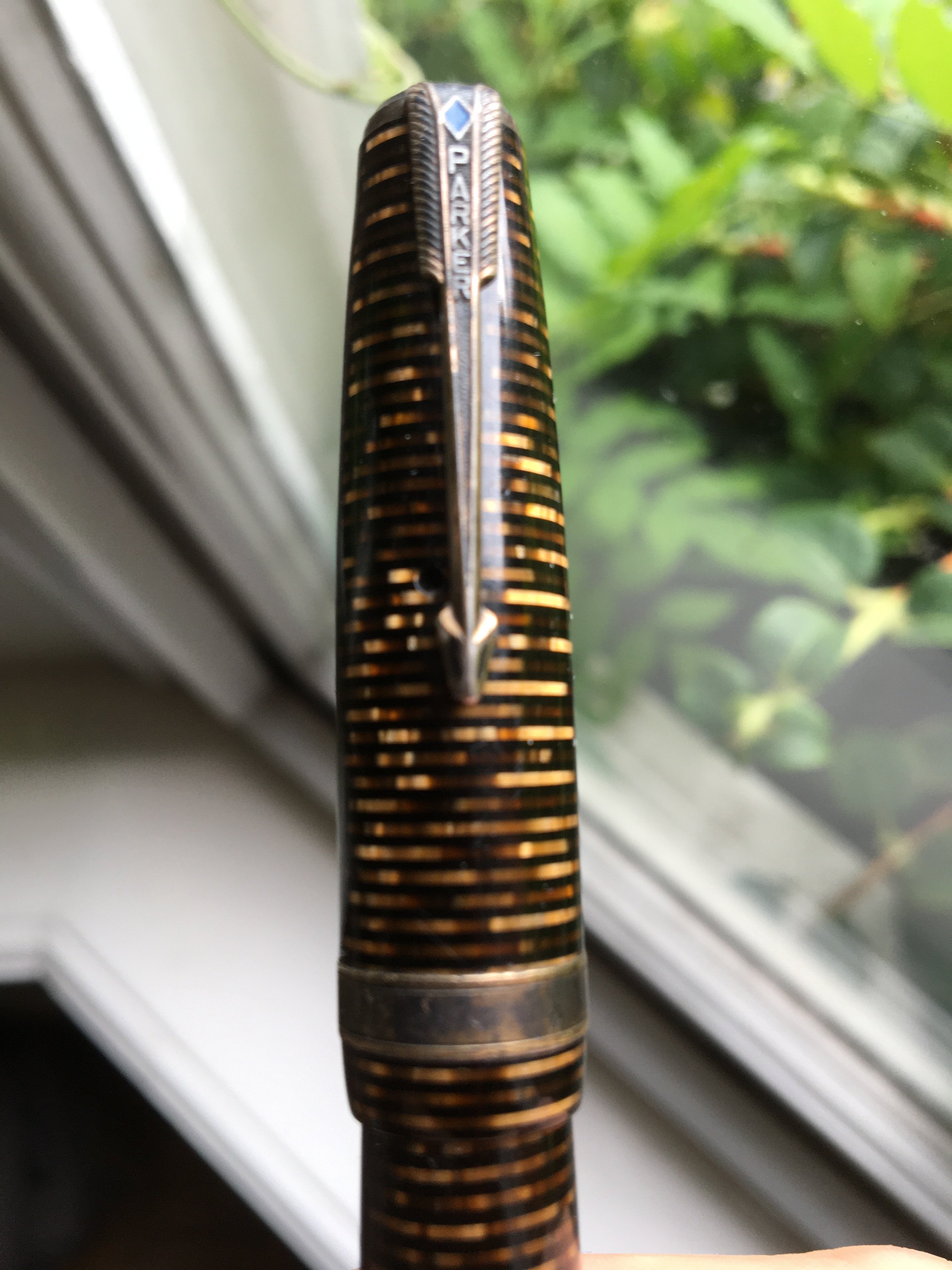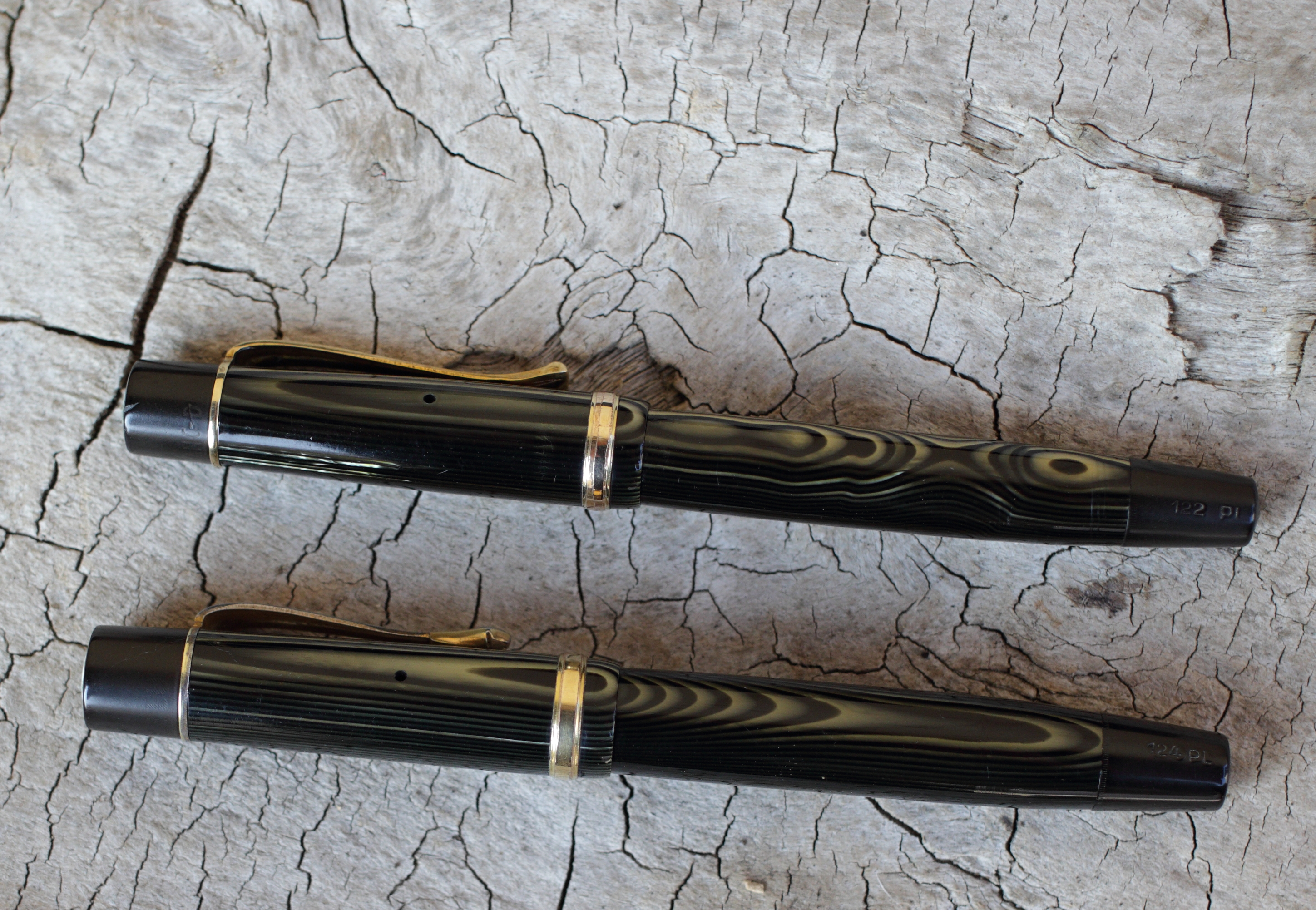 you can still get rubber diaphragms for these if you wanted to get it working. The nib is solid gold and they are lovely to write with. Here is the barrel on one of mine magnified. The 53 means it was made in 1953.