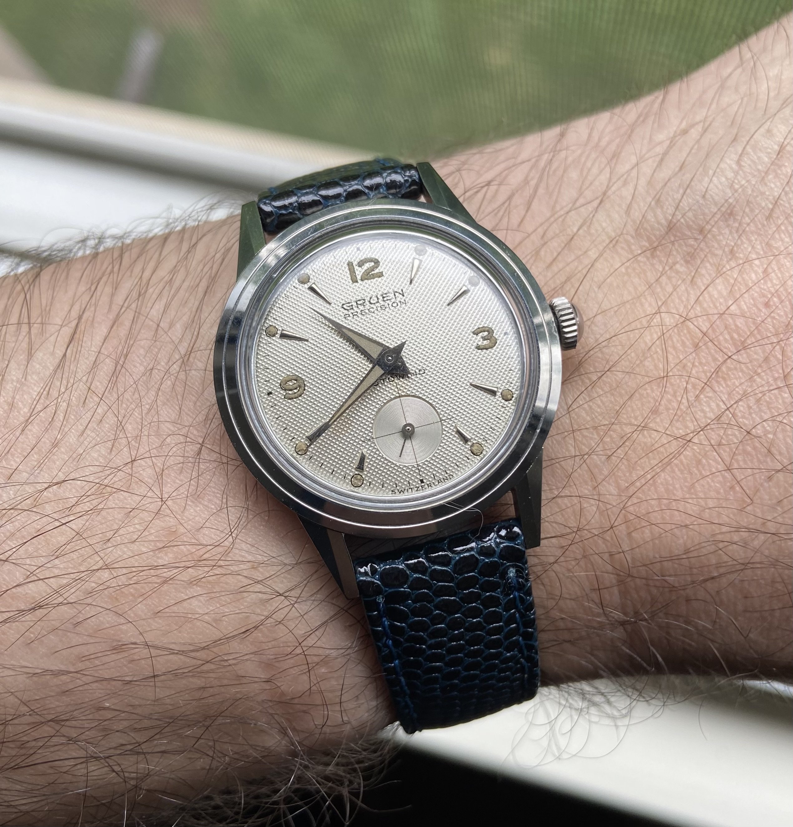 Posts 3,066 Likes 19,435 Aroxx ·Jun 15, 2024 I’m going to buck the trend and post a non-Omega watch. You did say all brands welcome! My 32mm Gruen Precision bumper waffle dial.