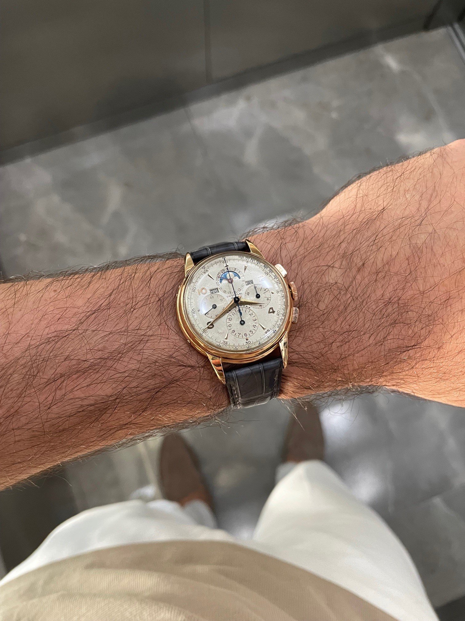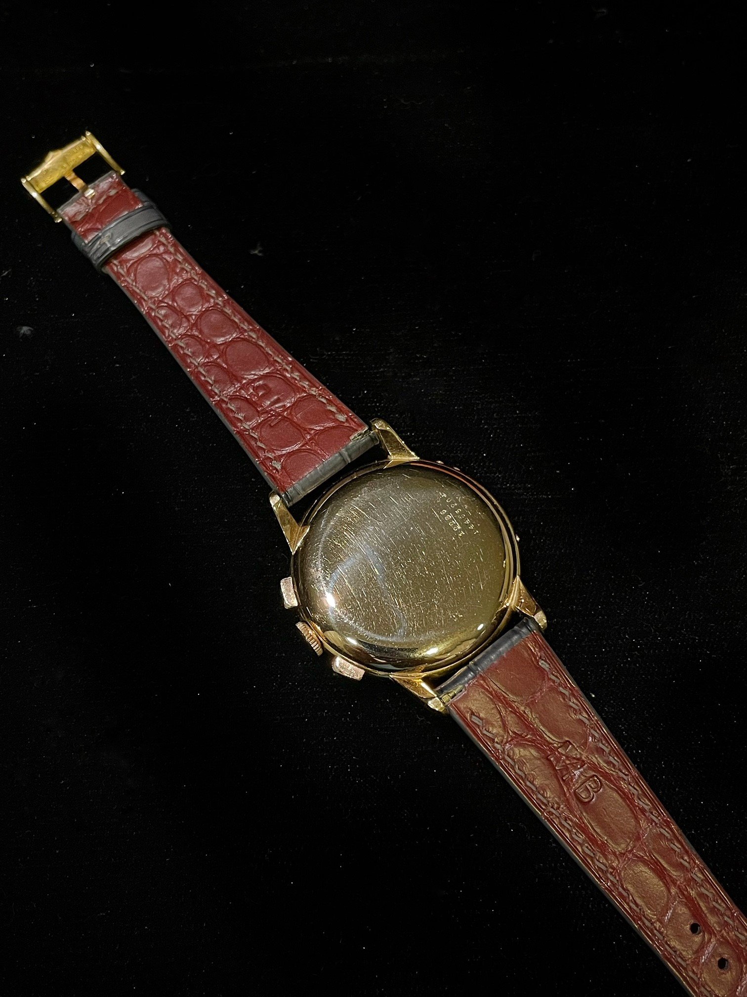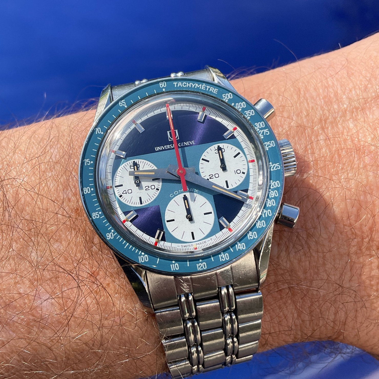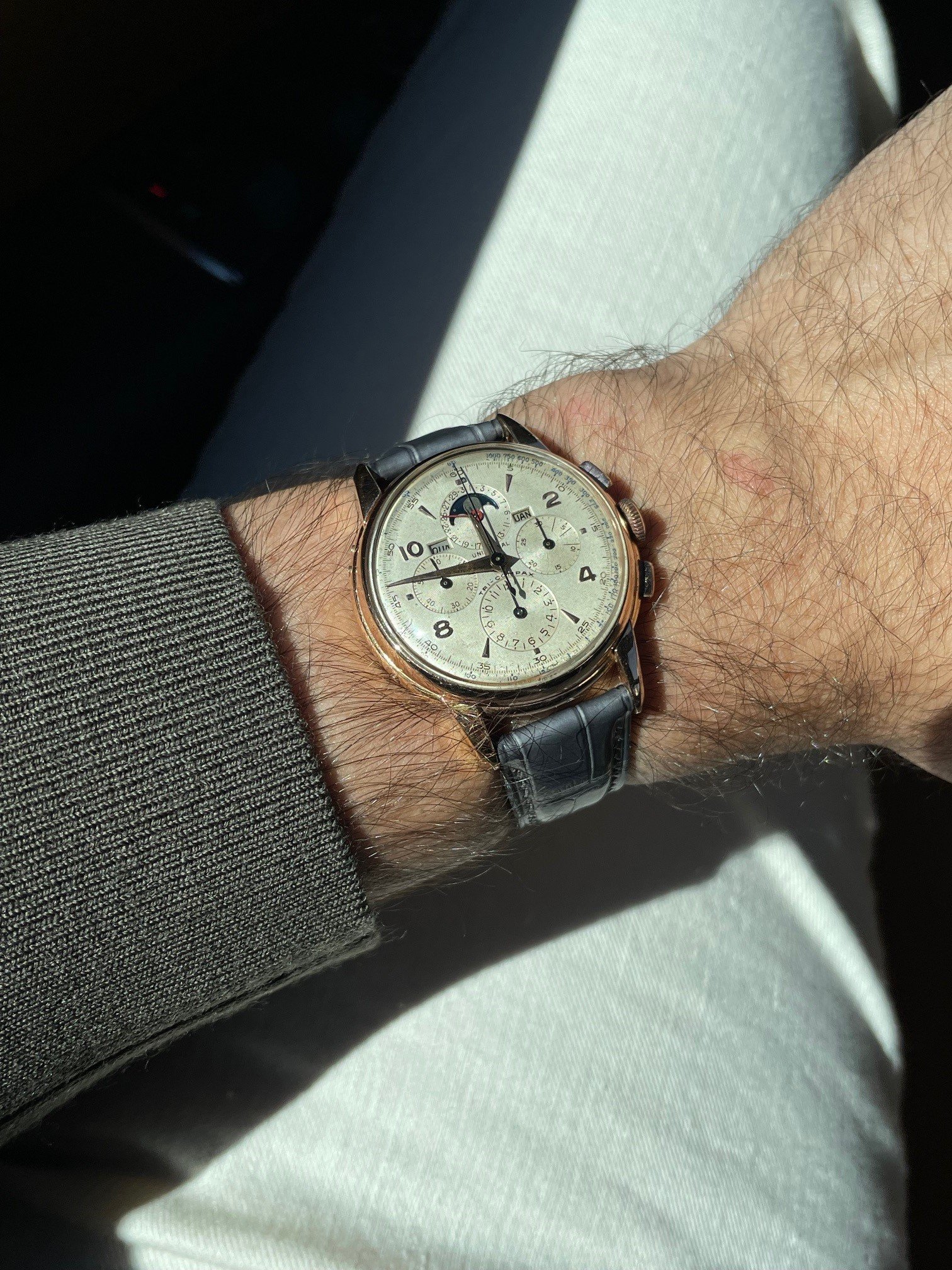So this just happened, and after last month’s post/acquisition, I swear it came out of complete left field when I got a totally unexpected message on Instagram inquiring about my potential interest in this grey slate dial “Exotic” Tri-Compax (reference 881101/03 ). “Um, YES PLEASE!!” I don’t think I’ve ever said this about any piece in my collection before - but its condition is as close to mint as any example I’ve ever seen of this reference. In fact, it’s heading straight to the spa for some TLC, since the seller/watchmaker in Idaho (!!) who reached out to me said he suspects it has never been serviced…and perhaps never even OPENED…in 50+ years. No toolmarks are evident on the pristine movement. Reference and serial numbers are clearly etched into the case back. The crystal is signed. The crown is correct, the dial and bezel are impeccable, and the case sparkles. And in the coming weeks, yes, it will be mounted onto a UG-signed Gay Freres bracelet. My new best friend in Idaho apparently was helping the nephew of its original owner who recently inherited it and wanted to monetize what he knew was a special piece. I couldn’t be more appreciative and excited that he thought of me, and found me worthy of being its next caretaker. Viva UG! 😀