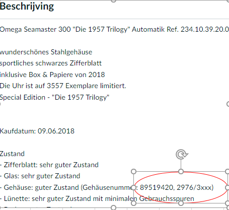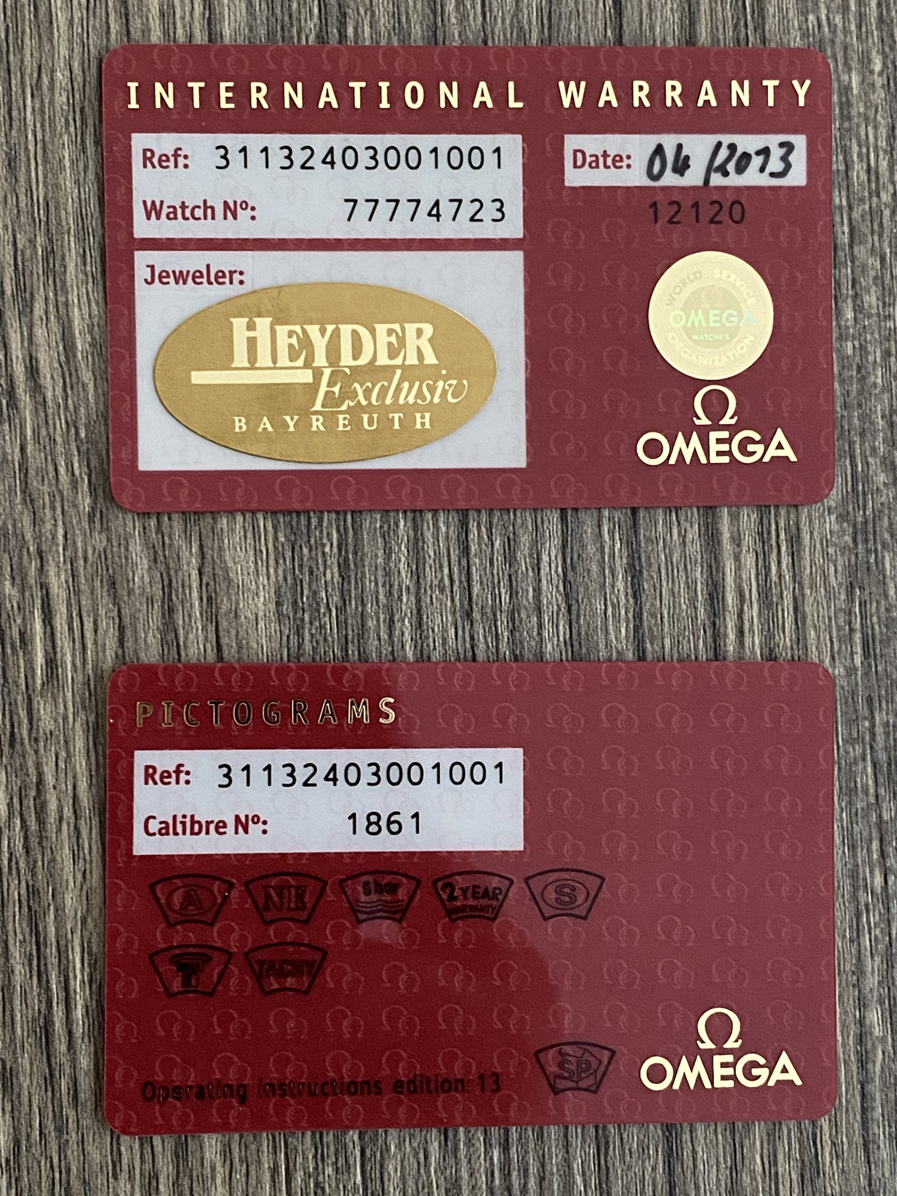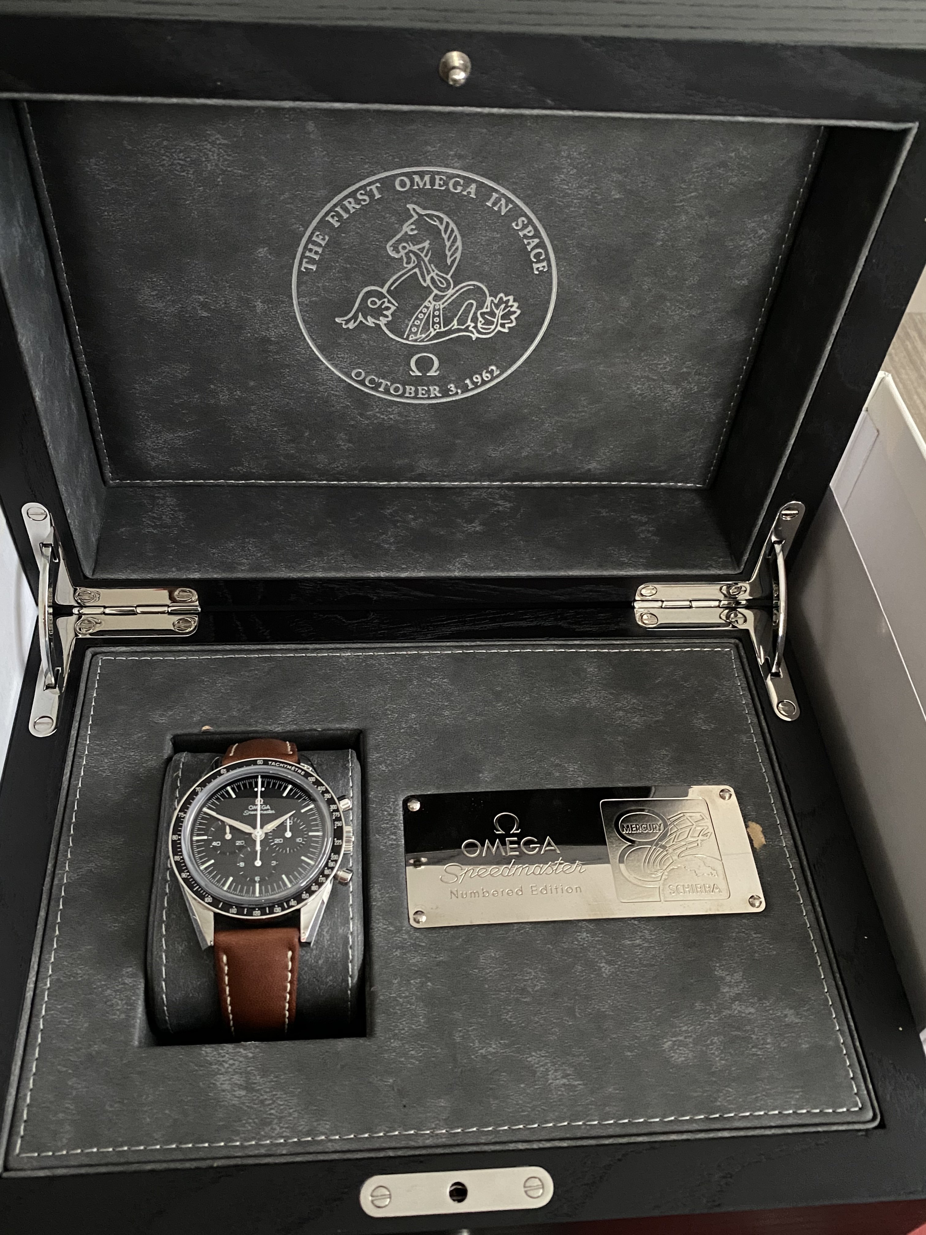 ·Selling my Omega FOIS in brand new condition and with a very low production number. I bought it new in 2013 and basically put it away so it has been stored all of its life. I did wind it from time to time just to play with it for a few minutes but never wore it outside my office. As you can see the red security dot is still on the case back, the watch has never been opened or serviced yet it still works perfectly as you would expect. It comes with box and papers. Please note the grey leatherette is starting to peel in some places, specially the watch holder, unfortunately this is very common with Omega boxes.
