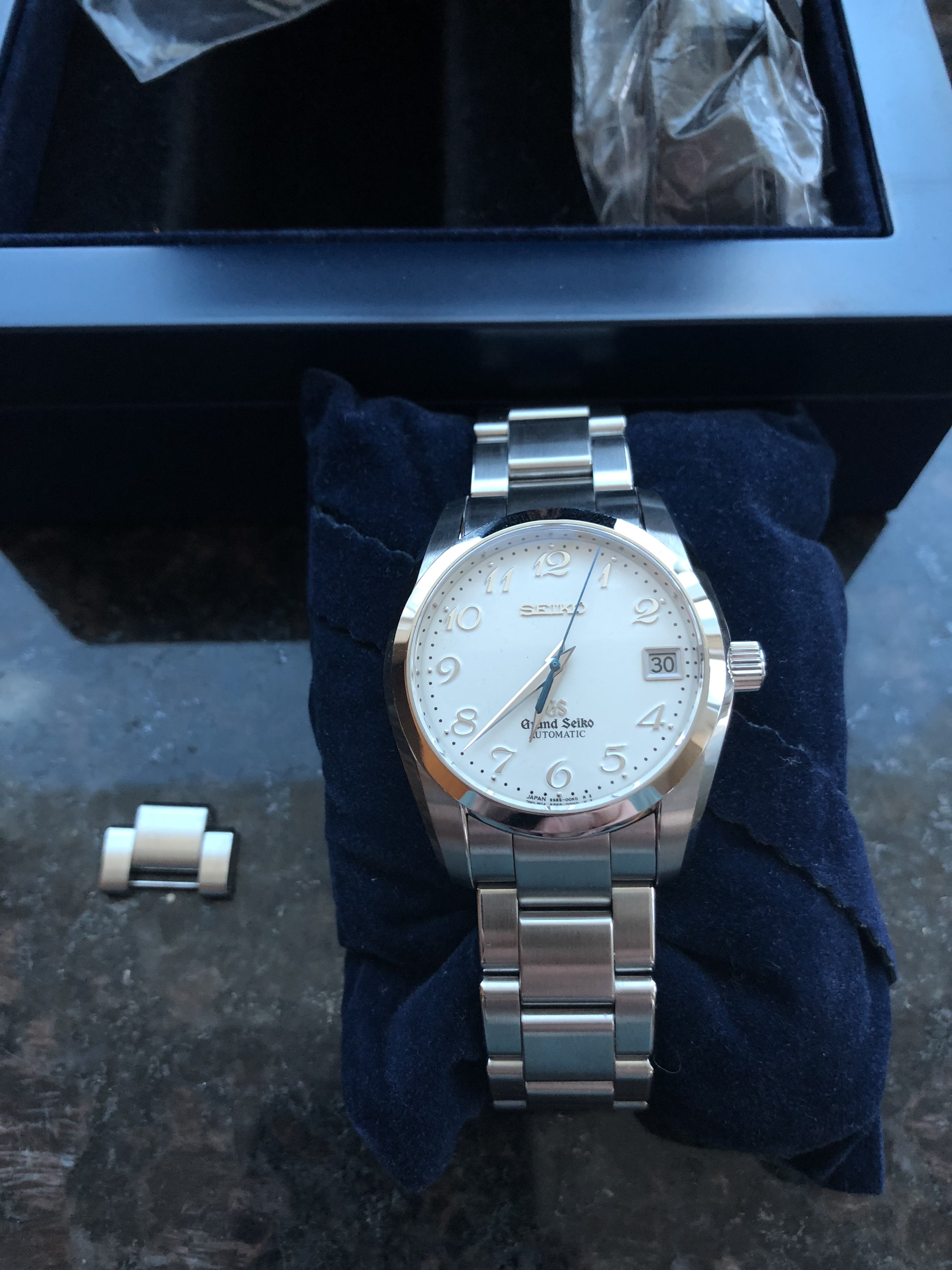 I believe this is one of the only Grand Seikos with arabic numerals, which is specially beautiful with the Zaratsu polishing.