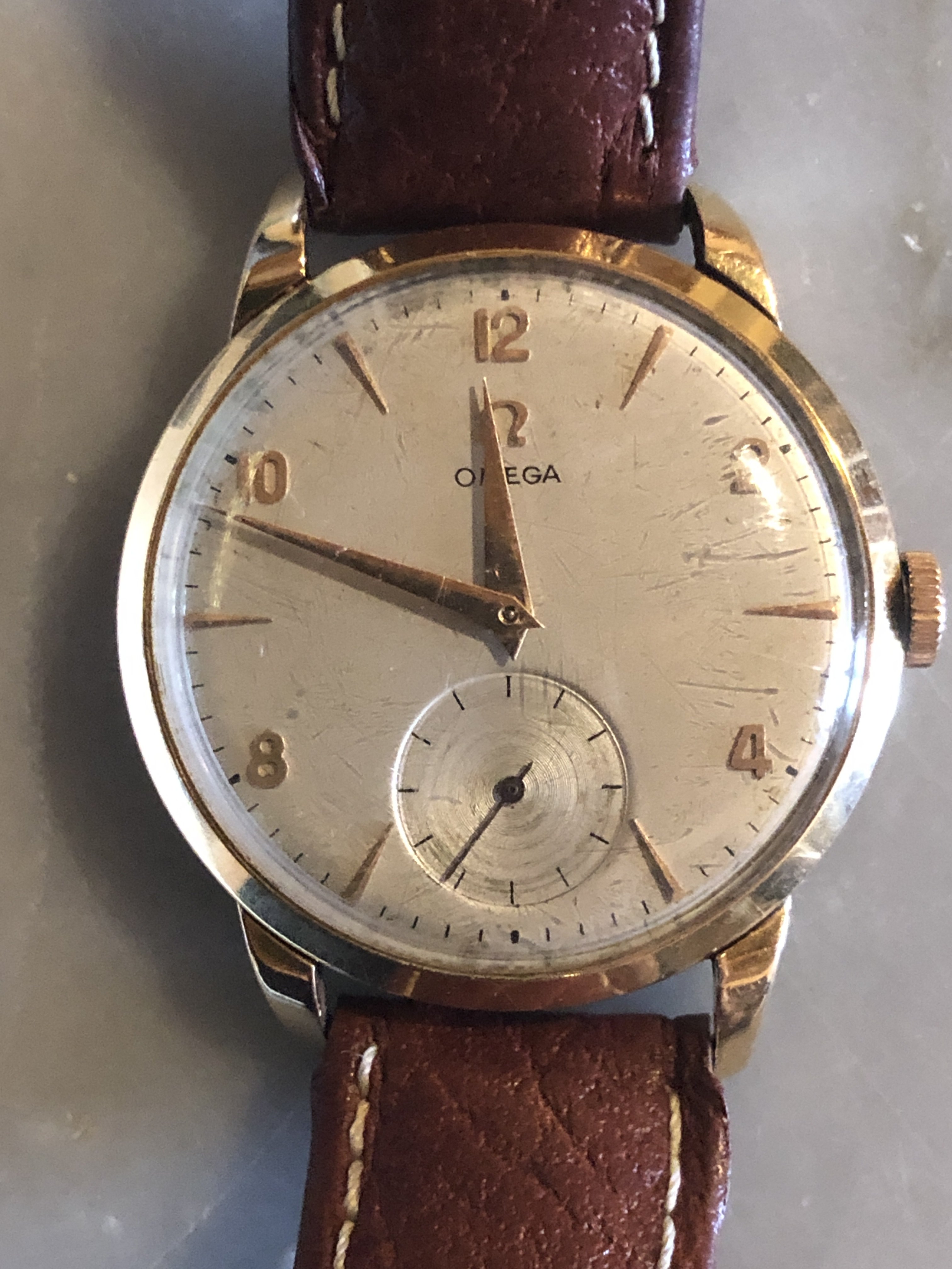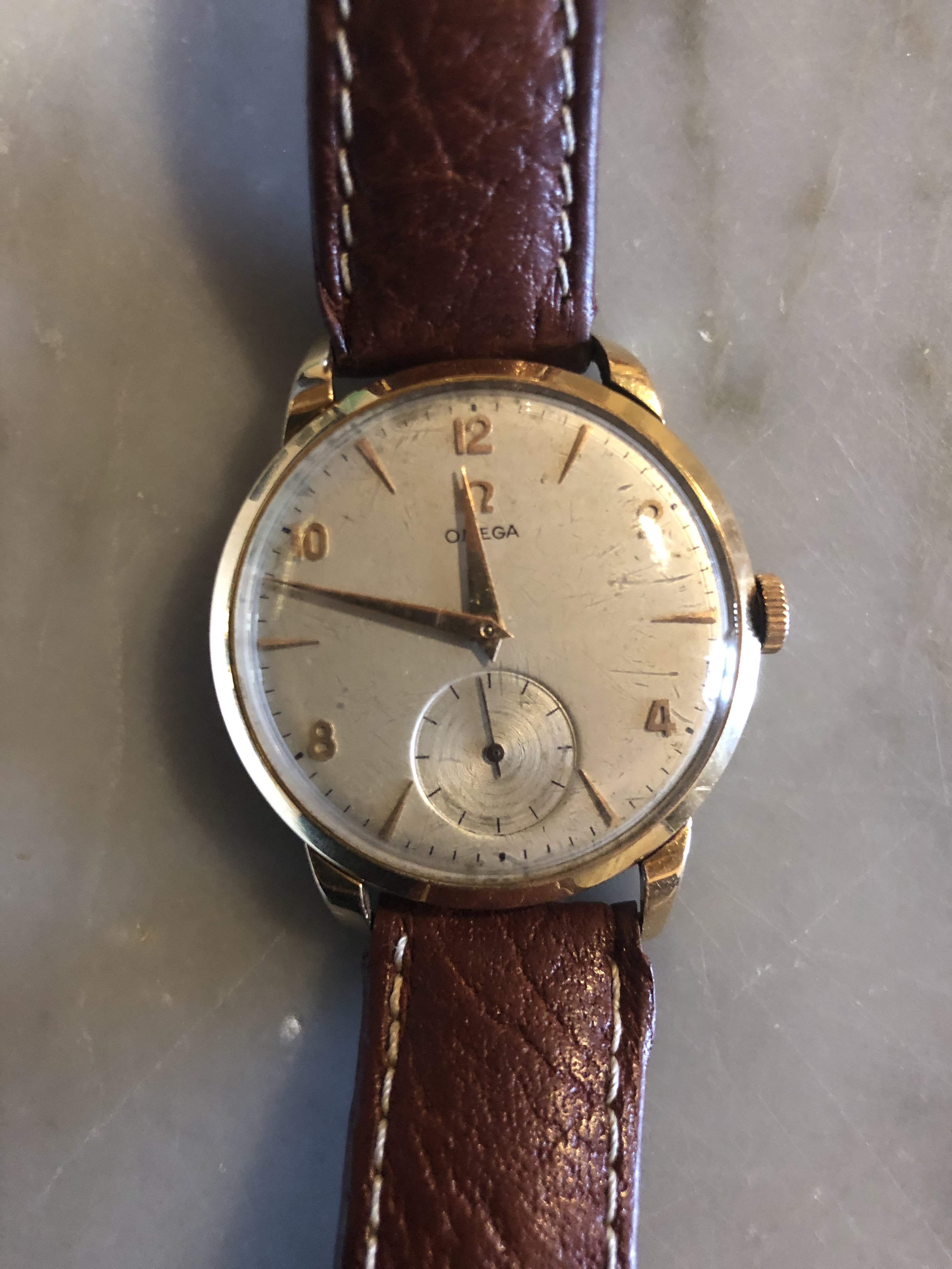·Hi all, I would like to ask to you expert your opinion on this Omega belonged to my grandpa. The receipt of the shop reports that was bought in 27/12/56 and the serial is 14578288. I tried to identify by myself the watch, without success. I would also like to know what do you think about it. There are some scratches here and there, and some sign of corrosion in the clock face that I would like to service. Any suggestion on how to proceed?