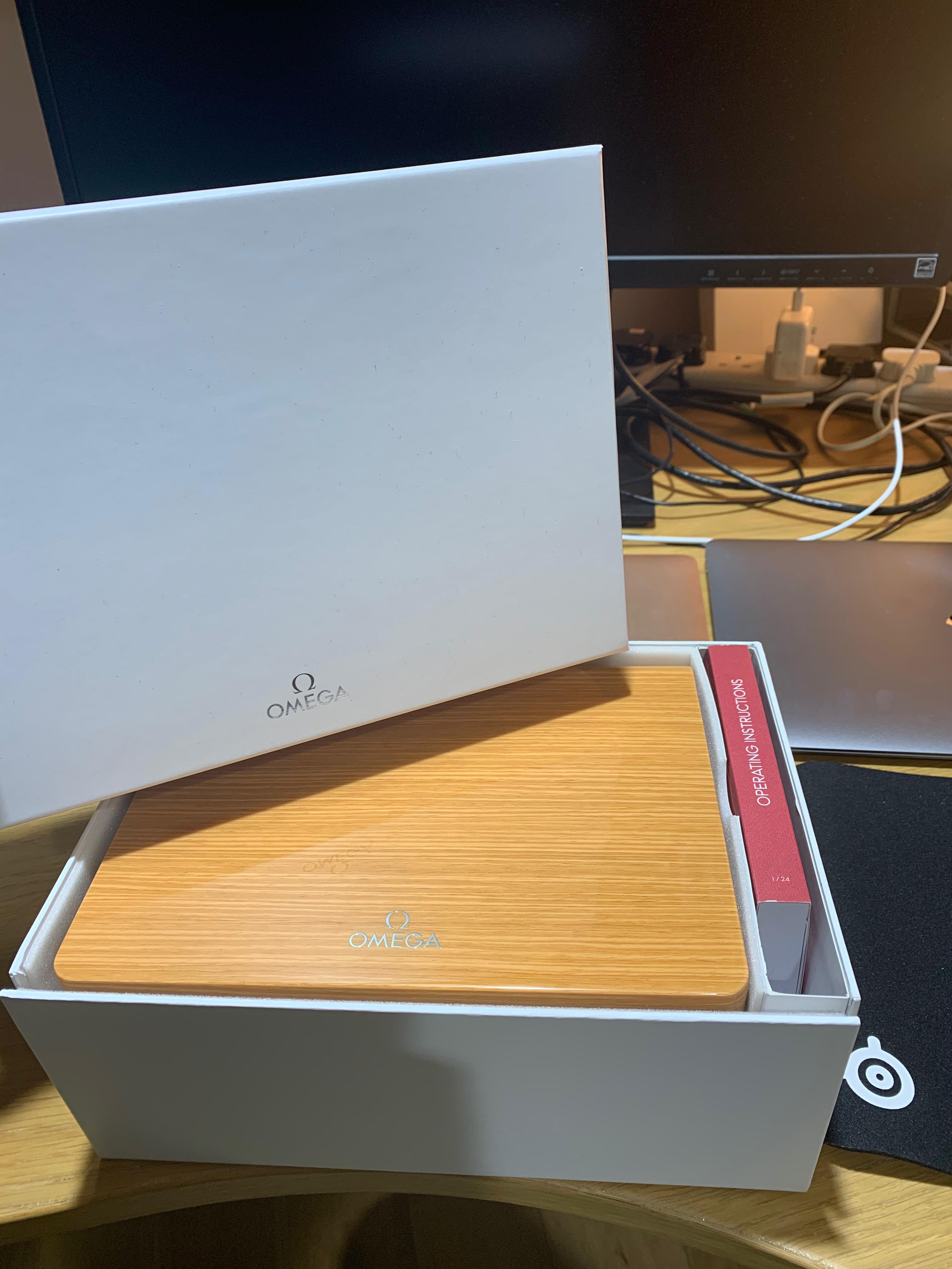 Watch comes with outer box, inner box, leather card wallet, operating instructions manual, pictogram card, warranty card, master chronometer card and swing tag with serial number.