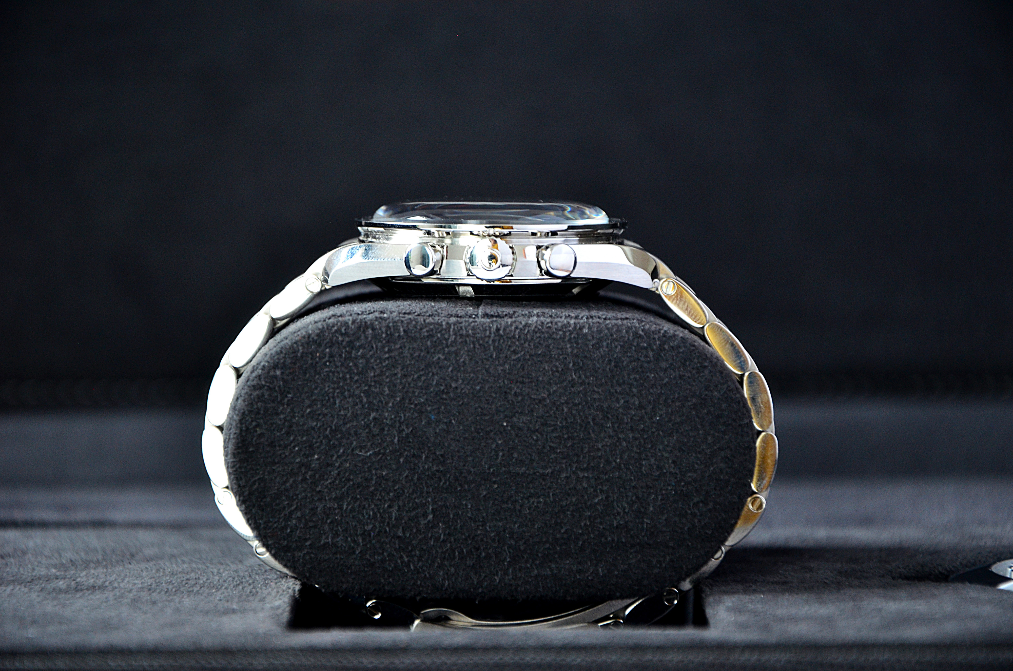CONDITION: Like New Condition w/Case Protective Plastics Intact. The watch was never worn but due to careless AD employee it has a small dent on 68 Tachy marker. I tried to show that on the pics