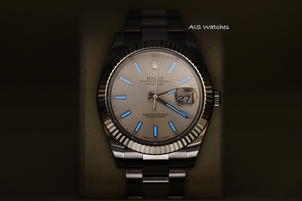 Up for sale is this Classic LNIB Rolex Datejust 41 MM 126334 Silver Stick Dial Stainless Steel with 18K WG Fluted Bezel Box & Papers. Watch is in clean condition with few stickers intact.
