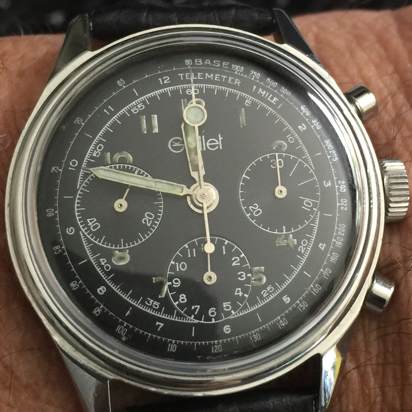 Posts 13,502 Likes 53,065 Larry S ·Jun 8, 2016·Color Commentator for the Hyperbole. Gallet Multichon with Lollipop Chrono. Valjoux.
