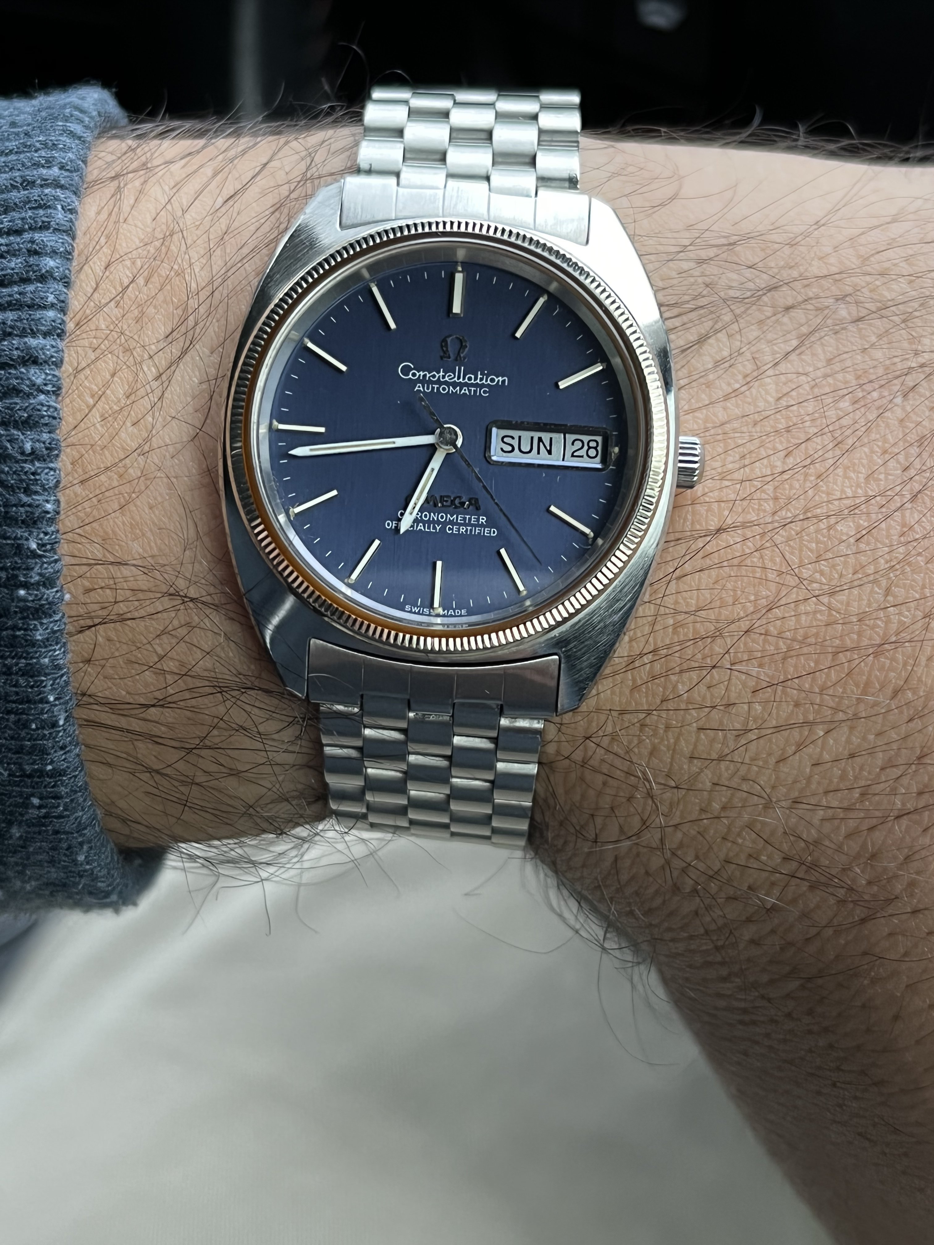 The blue is gorgeous....Not familiar with these. Is that an Omega bracelet?
