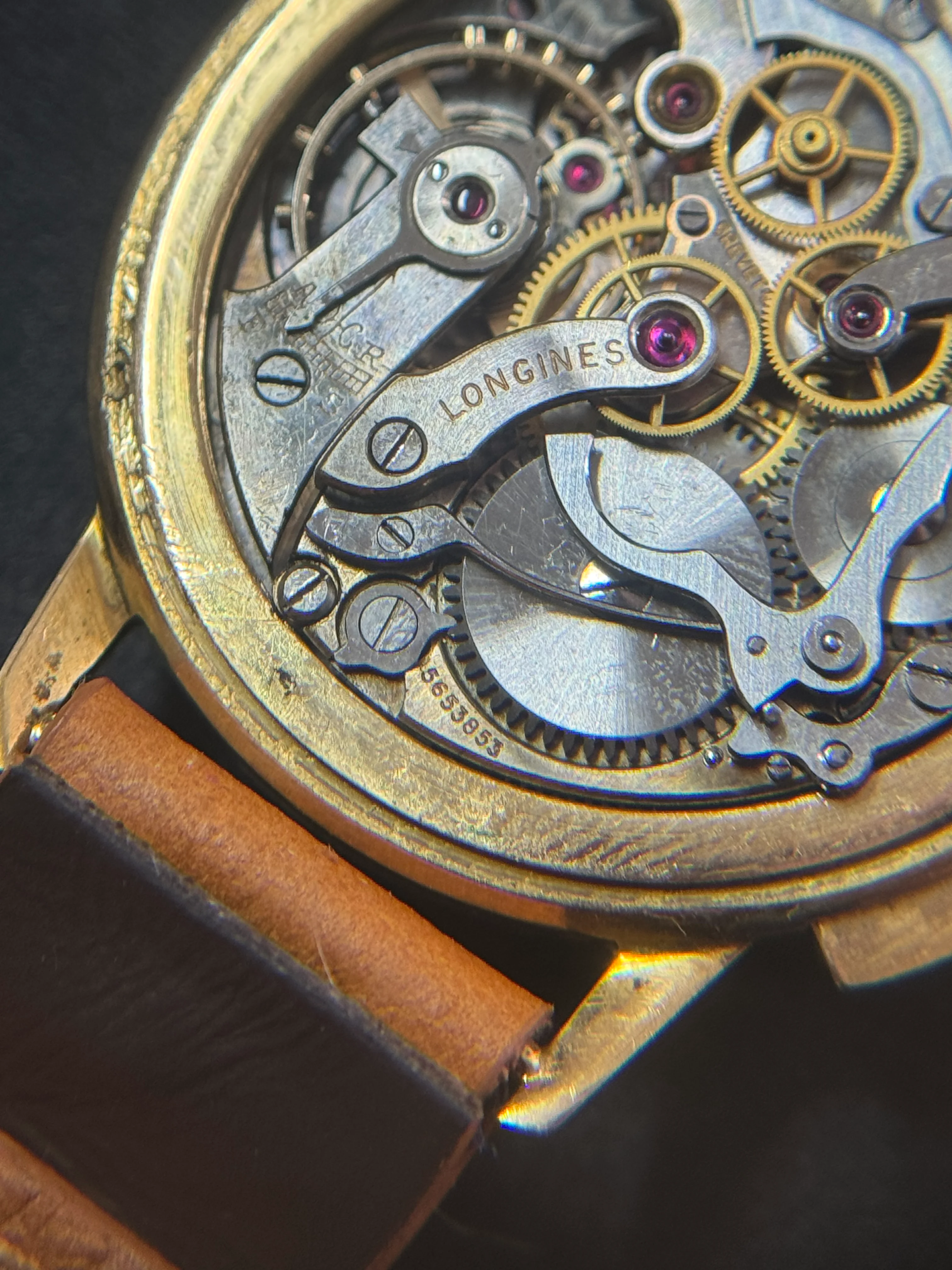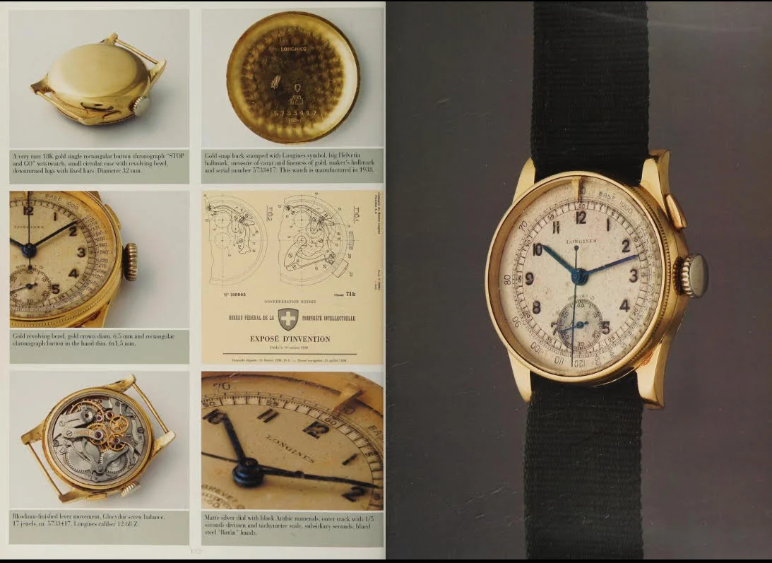 If it turns out not to be true, I’d like to find out what type of case this movement was originally delivered in. I suspect it may have been one with a rotating bezel and a pointer hand. Supporting this theory is the fact that I found a watch with the exact same dial - in worse condition - featured in a book Longines watches from John Goldberger on pages 266–267 (see screenshot below)