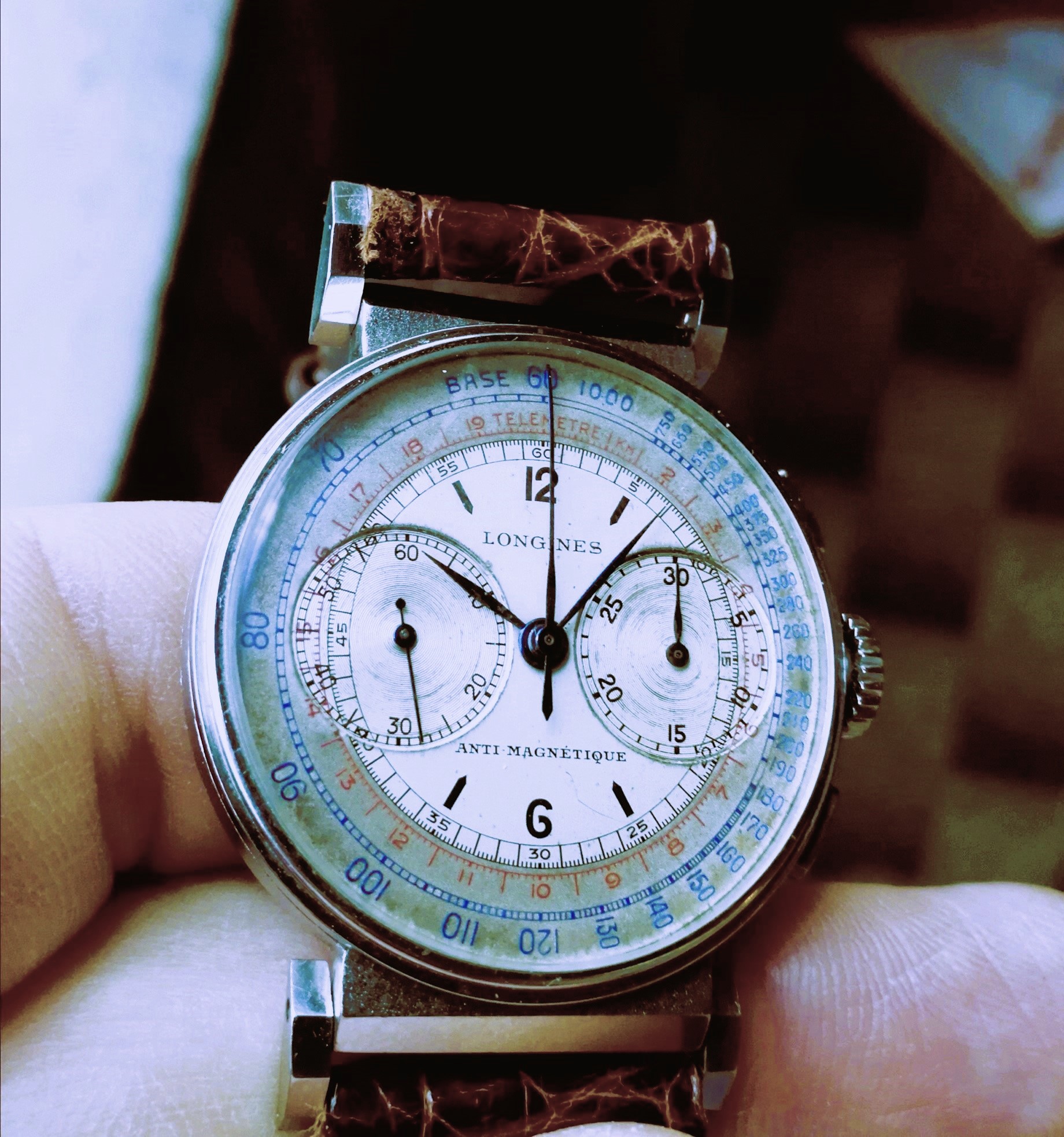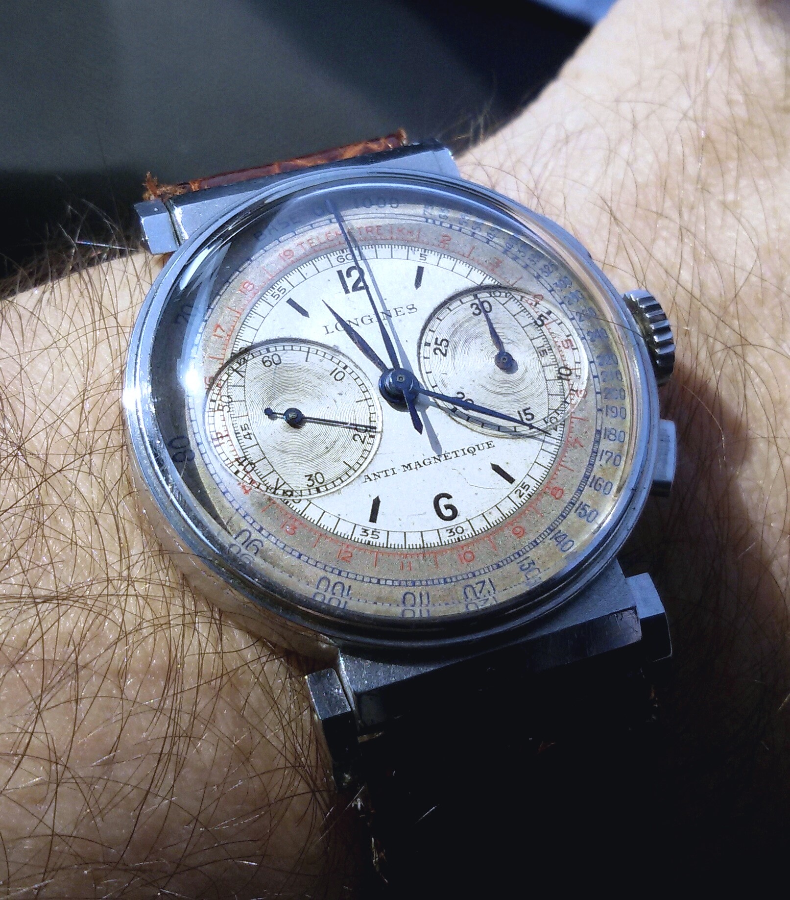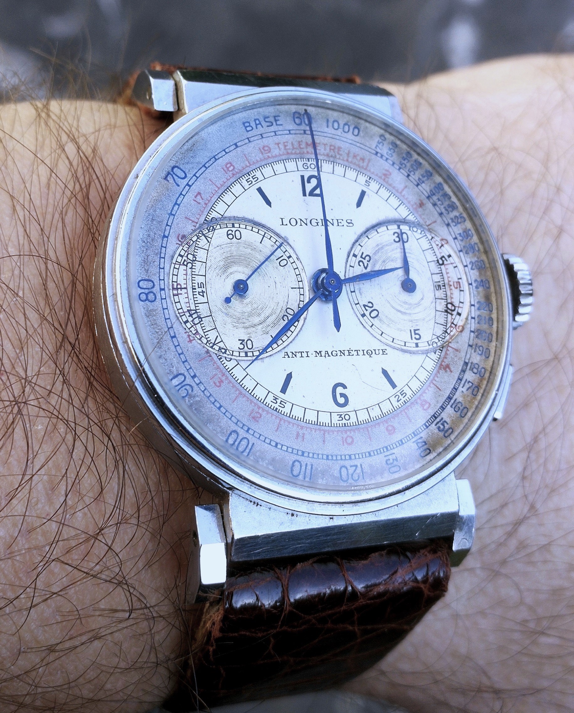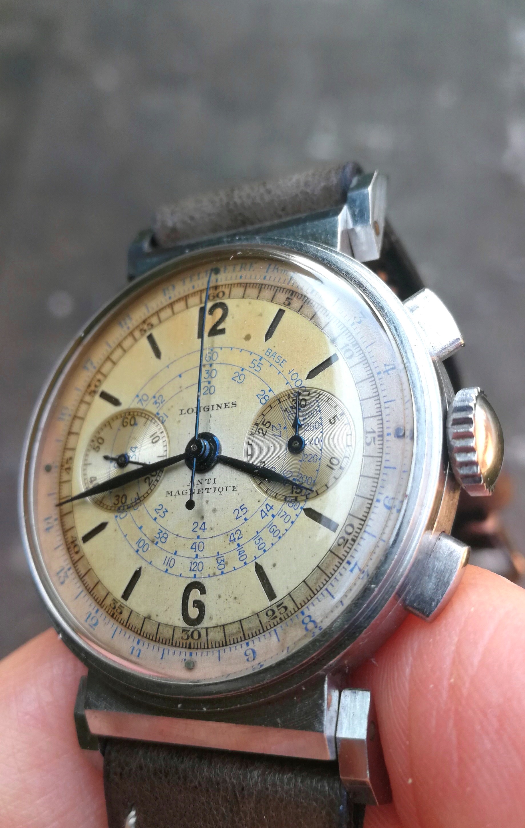 °The first one has a sandwich two tone dial ( with blue and black scales ) with very nice patina which makes it a real vintage piece : I love it !!!