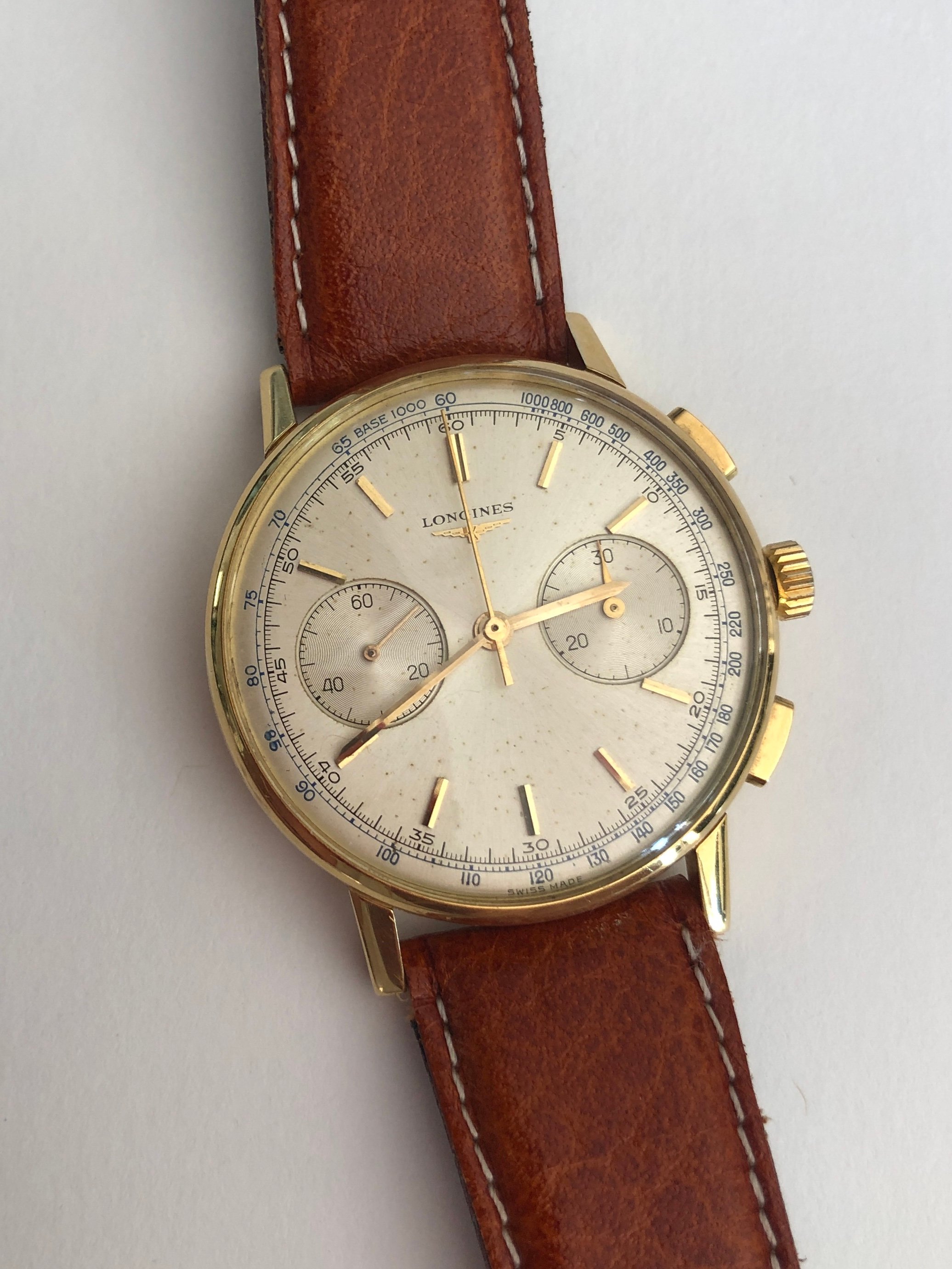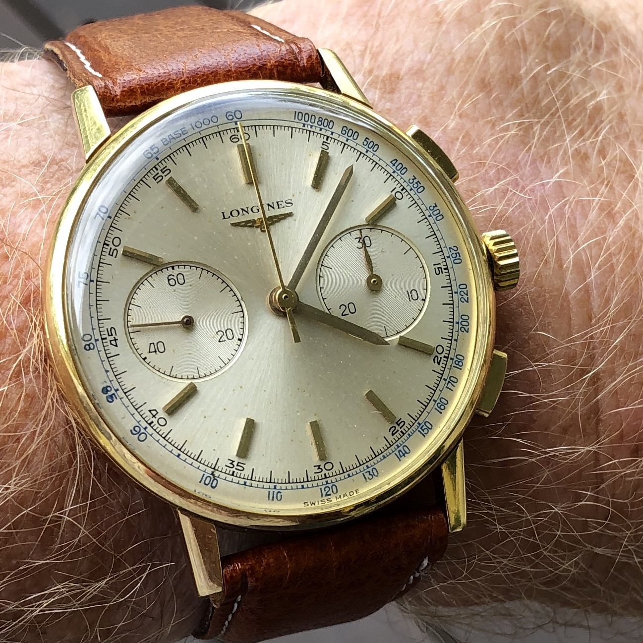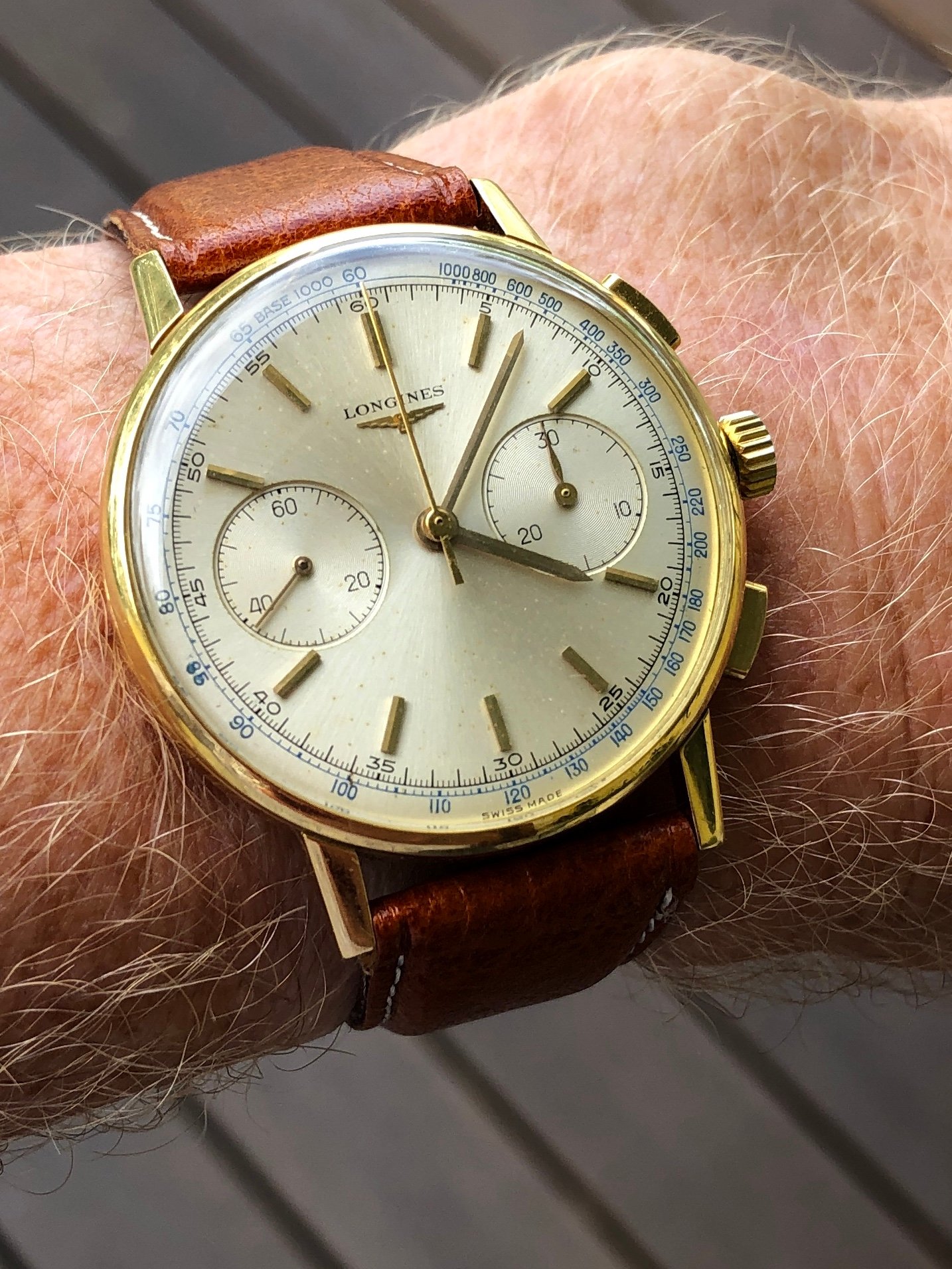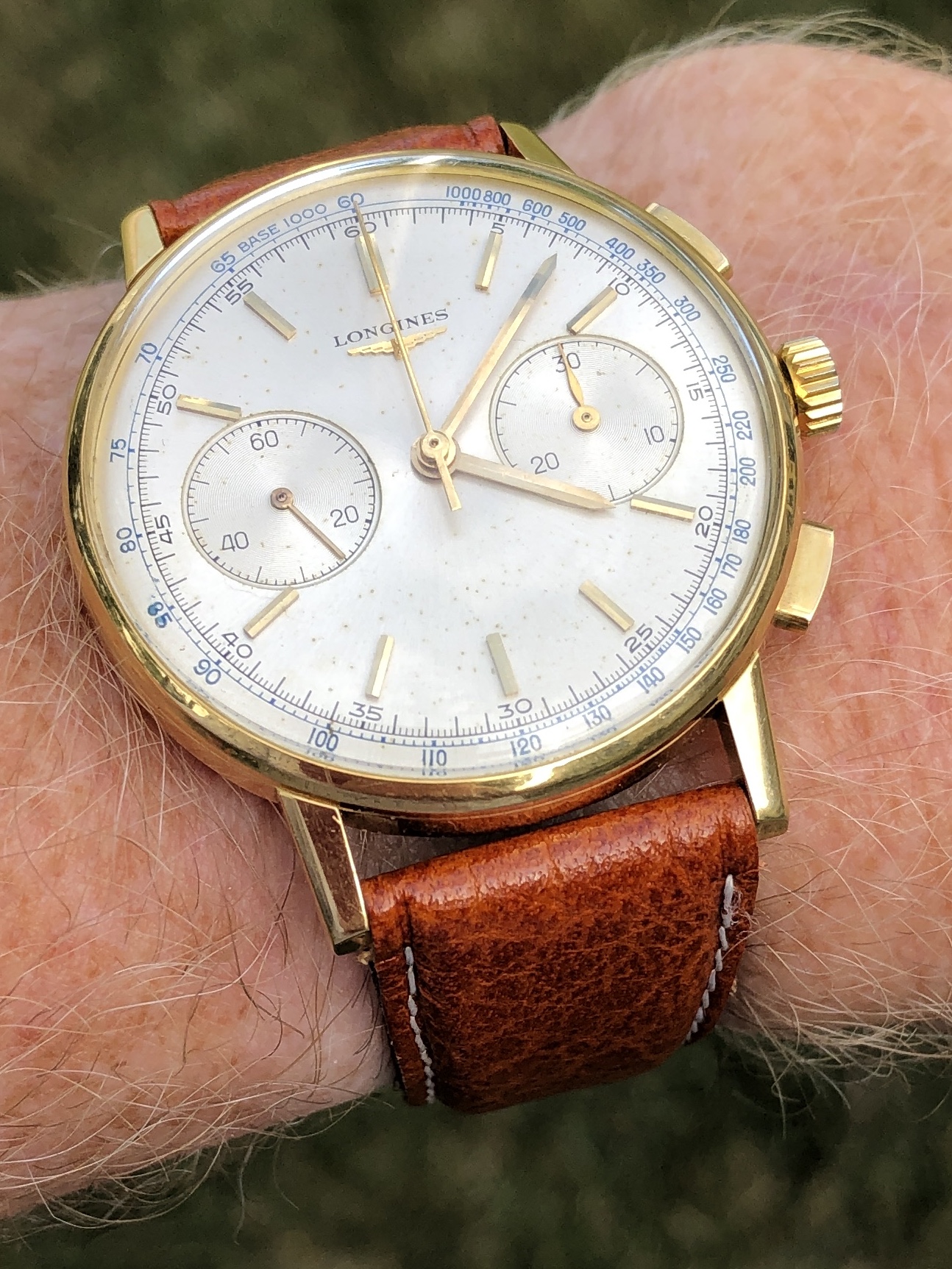 My understanding is that the watch was last serviced in 2015 by the prior owner. He also confirmed through the Longines heritage department (in the sales thread above) that the watch was delivered to the Swiss market in June of 1964. All functions continue to work correctly- the timekeeping, fly-back, start, stop and reset are all in good order.