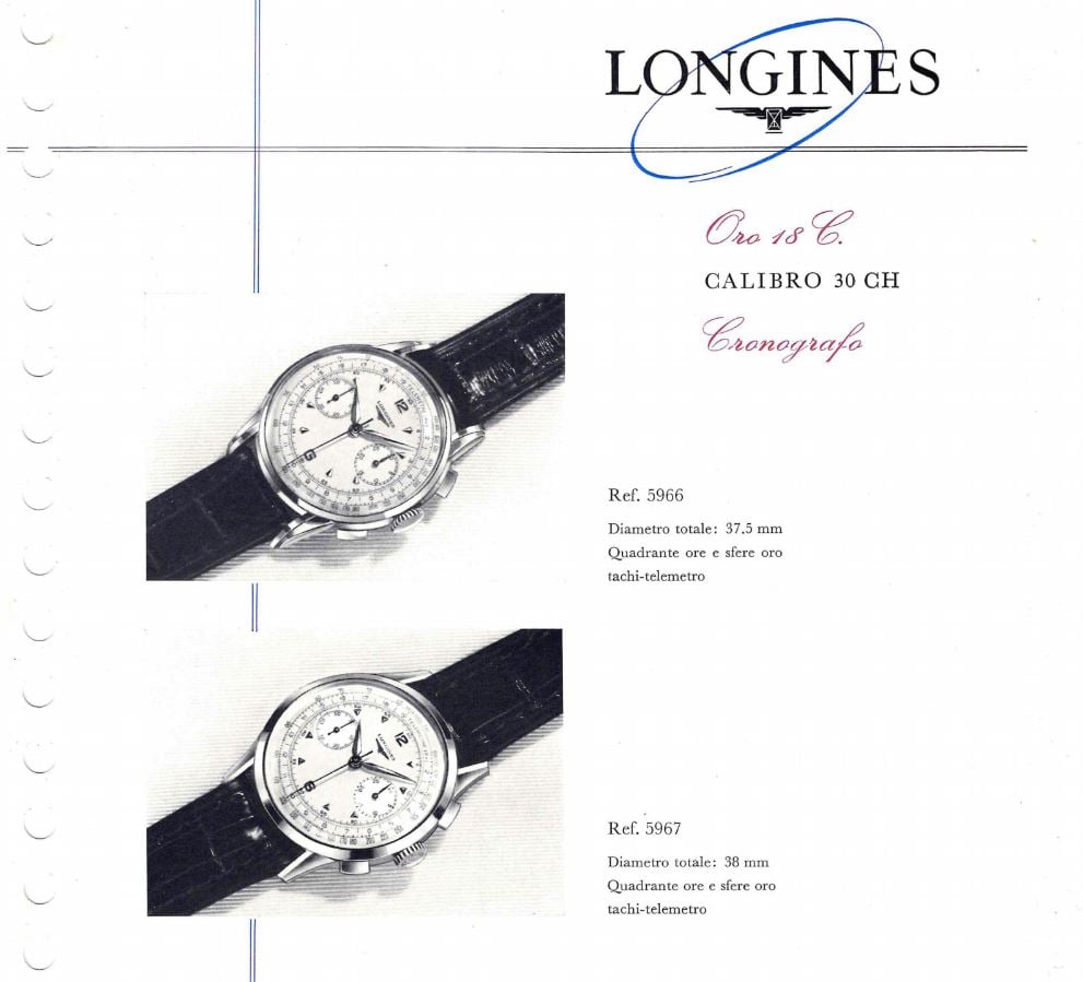 ·A recent discussion has prompted me to provide a brief overview of the Longines reference 5967. This is one of the most prevalent 30CH references. Based on examples that I have seen, production spanned almost the entire late-1940's to late-1960's run of the 30CH.