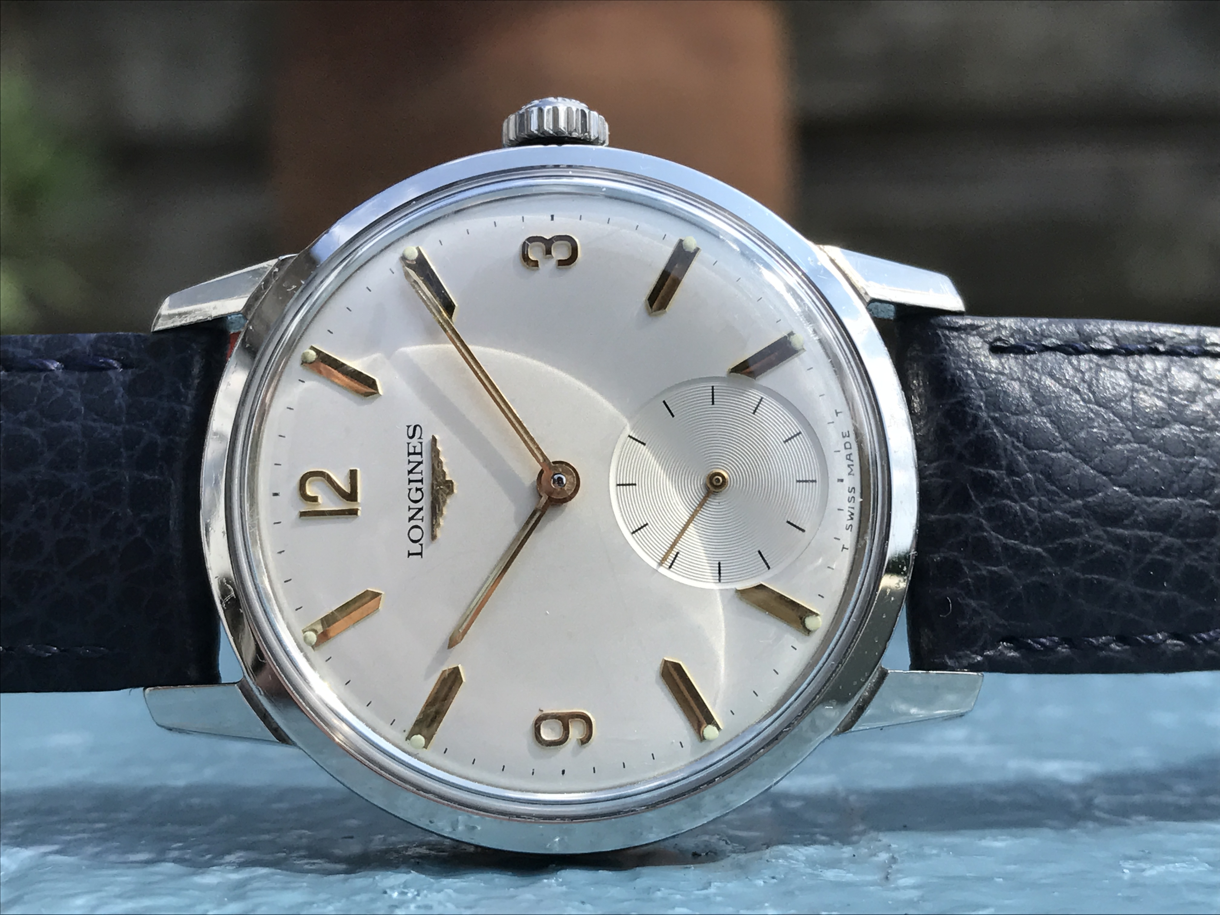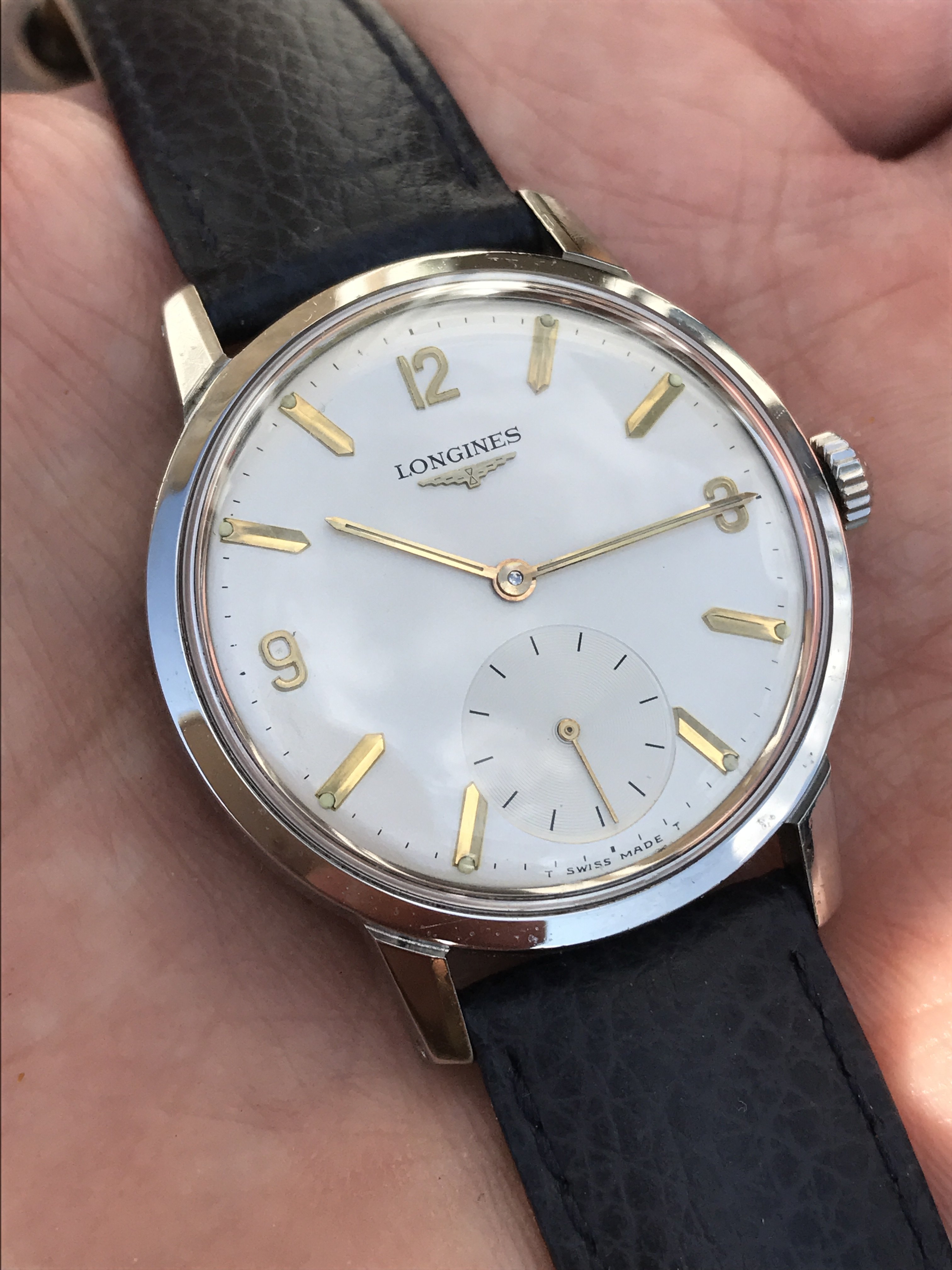 For sale a 35mm (excl the crown) Longines 30L handwinder with screw in caseback. Nice dial with large sub second and gold tone dial furniture, case is pretty ok.