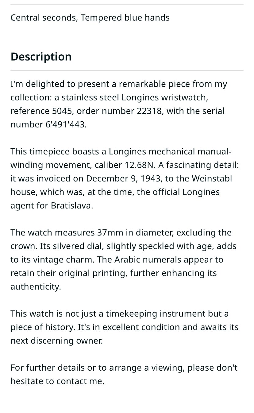 - as from about the 7.6mio serial, Longines started to put the 5045 ref on the inner caseback - before, you only had the batch number;