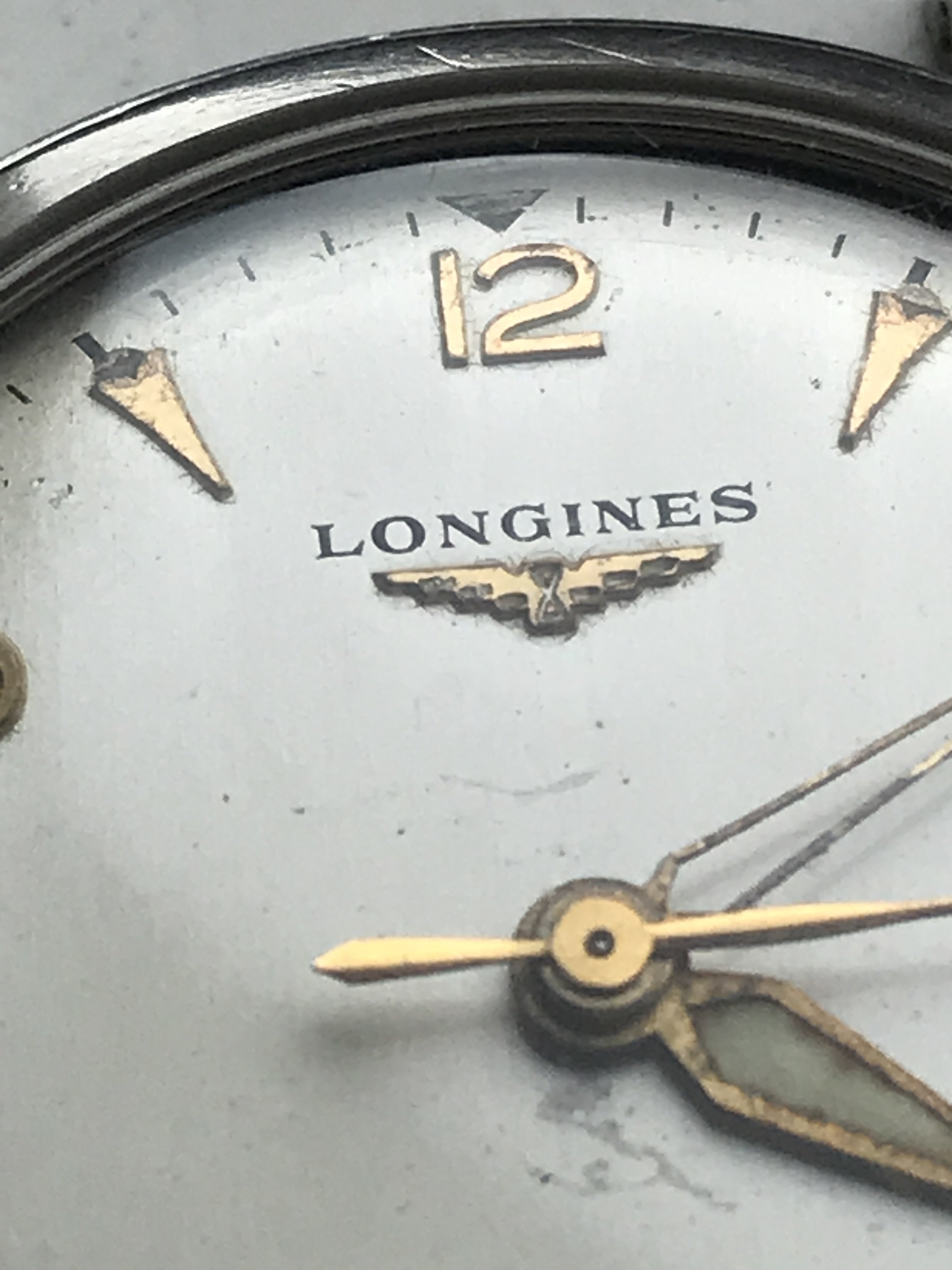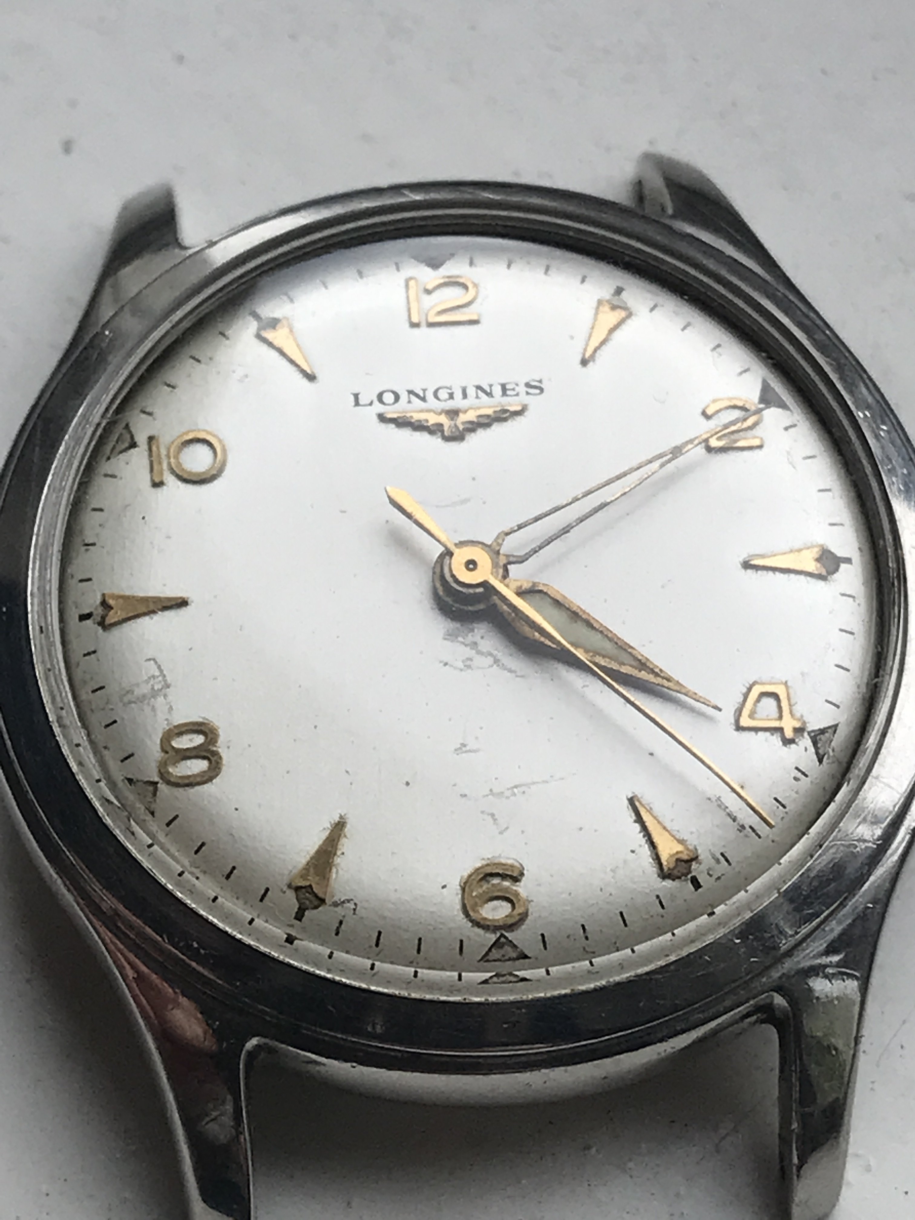 ··not the sharpest pencil in the ΩF drawerGot this one as part of a lot. Longines 6264. Dial with raised logo in poor condition. Movement 12.68. Size: 35mm (excl. crown). Case in nice condition. Consider it as in need of a service (but it does run)