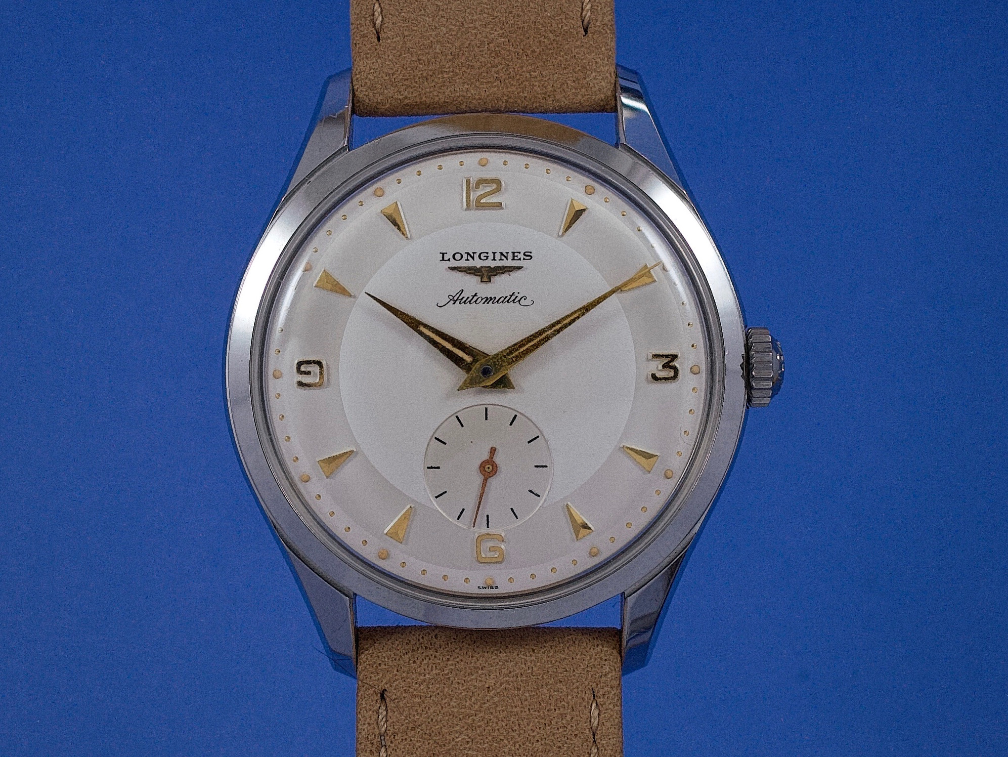 Movement: Longines automatic, cal. 22A. The movement is keeping accurate time. No known service history.