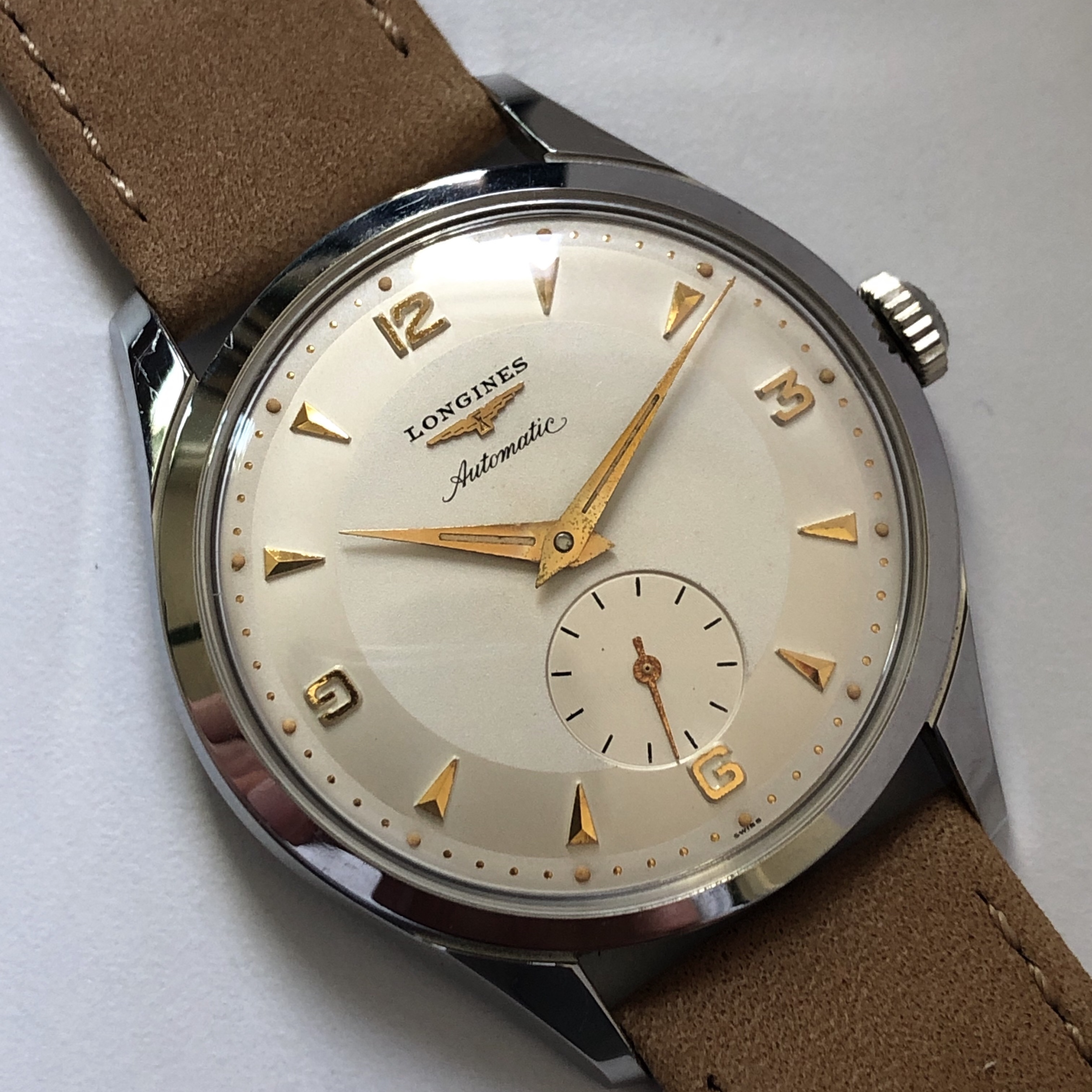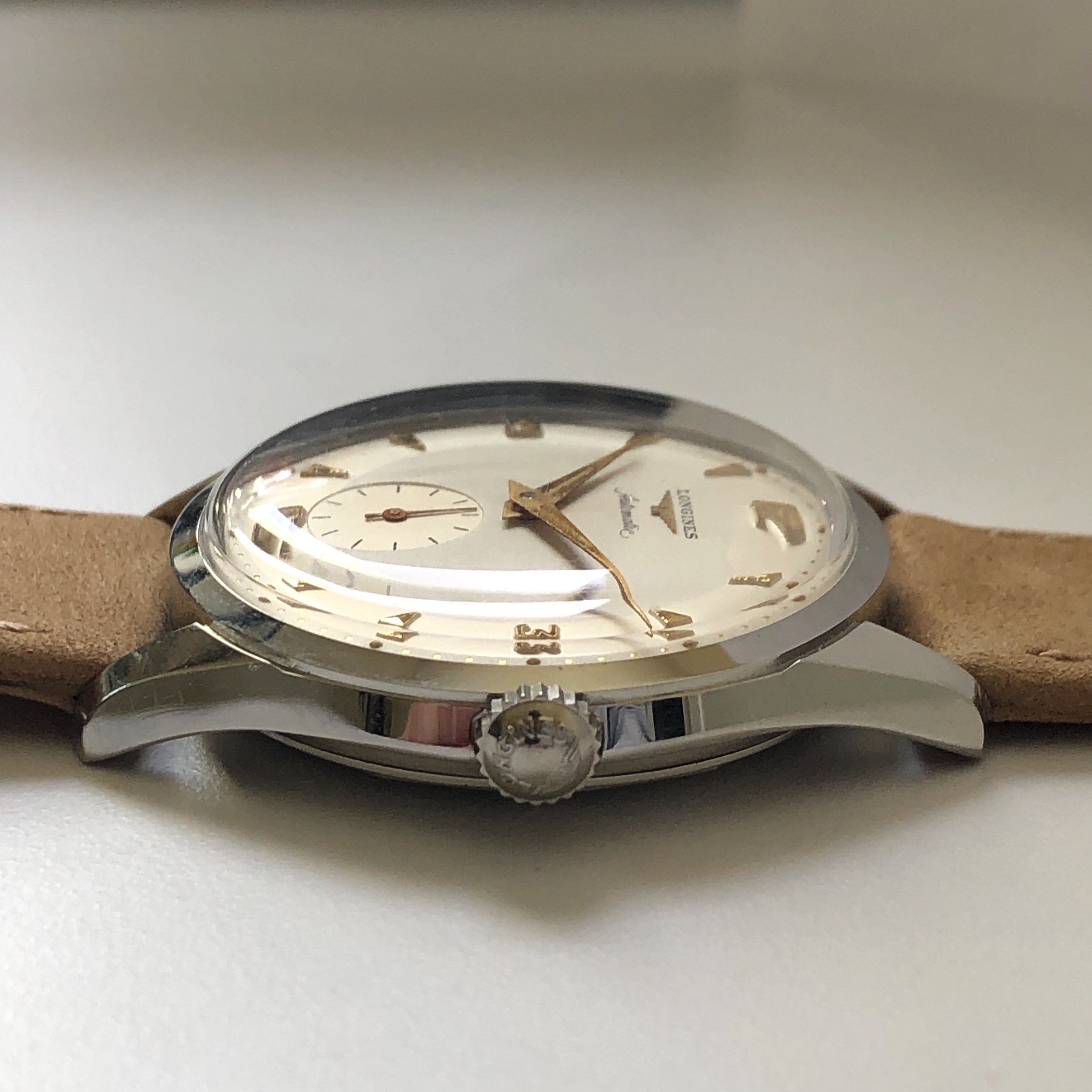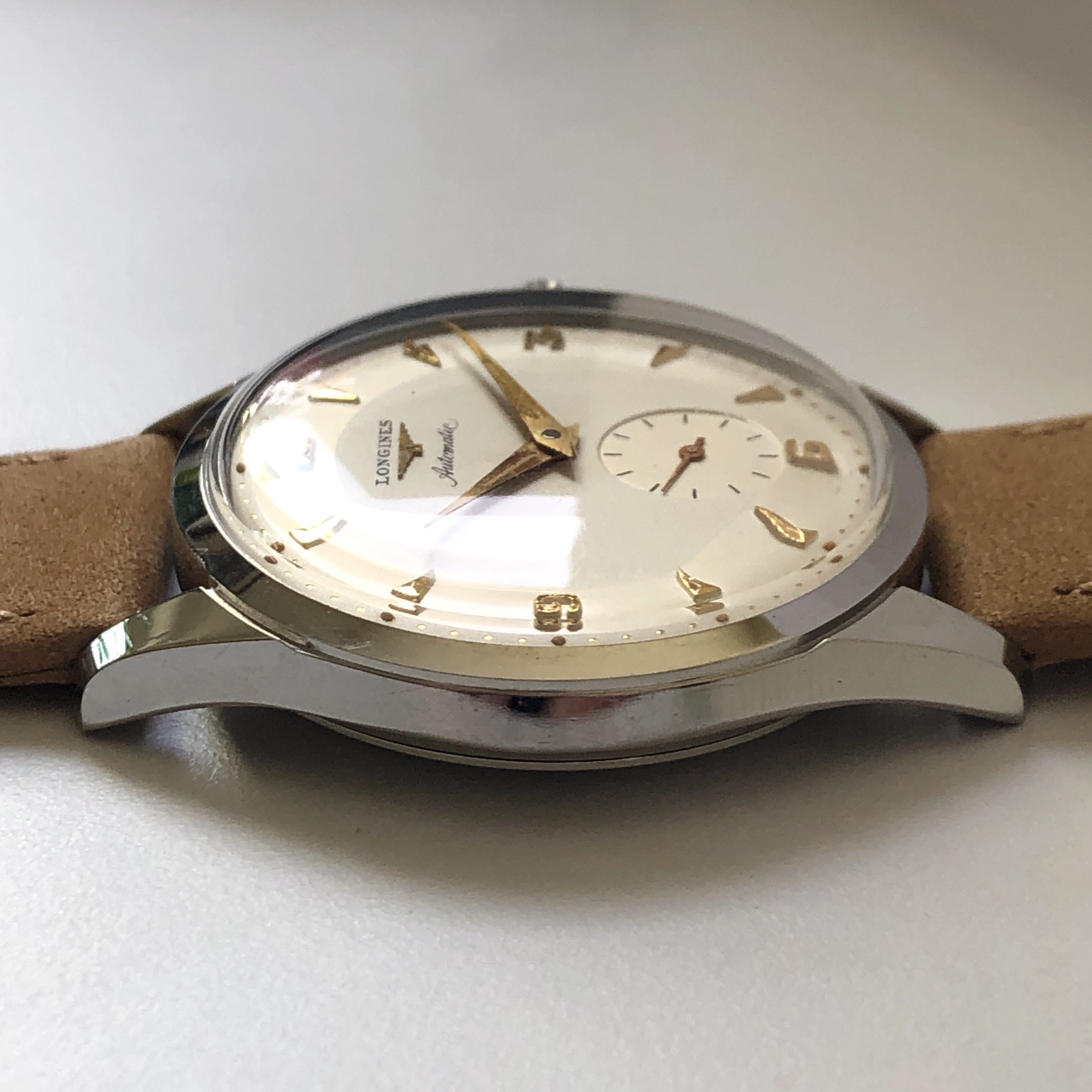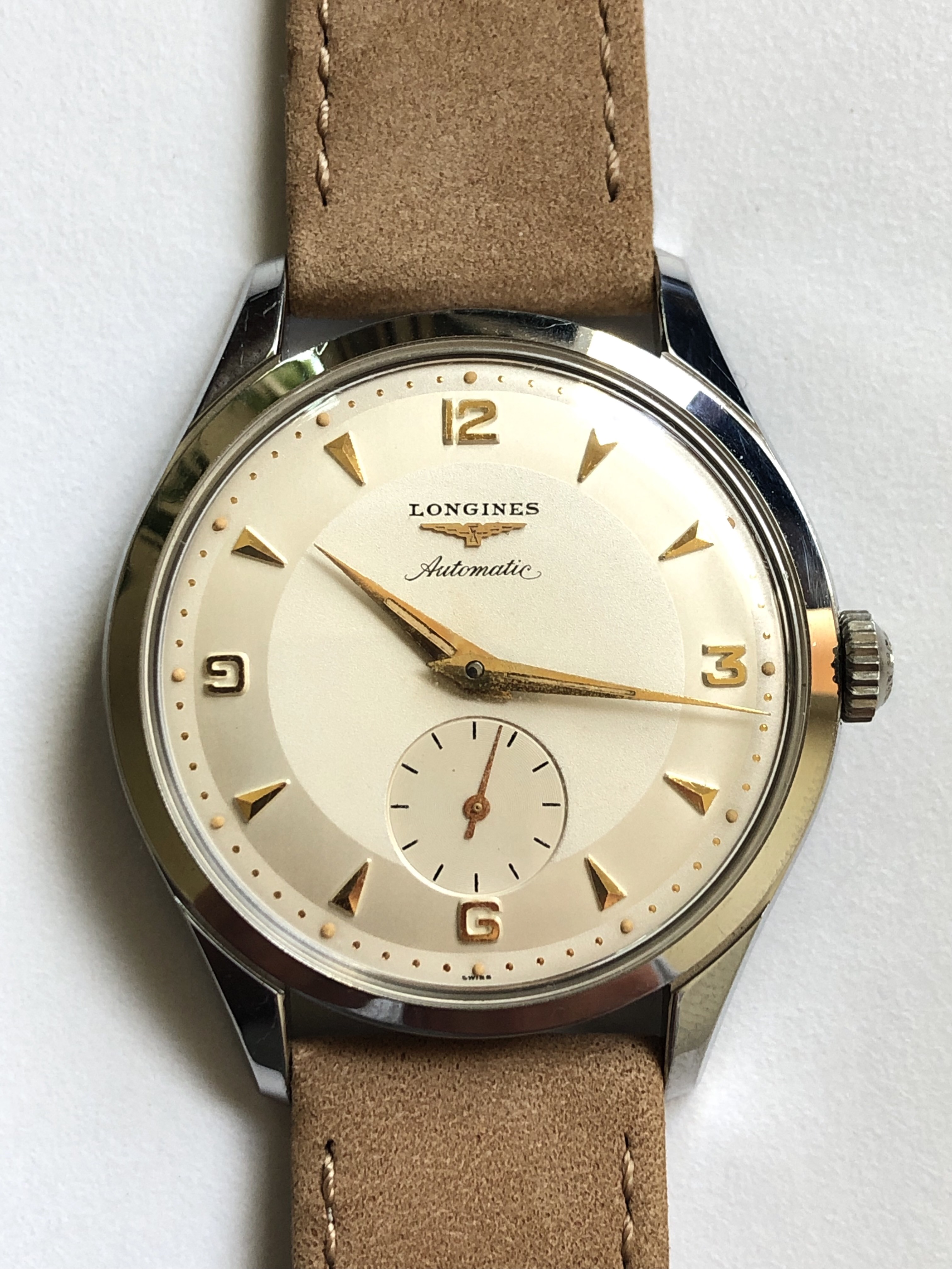 Linking here to the original posting on Arthur's site for photos that are better than mine: (https://www.shucktheoyster.com/longines-vintage-automatic-watch-6664-3/)