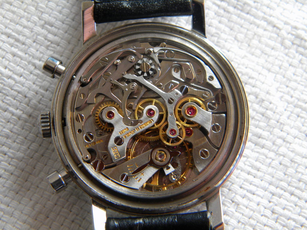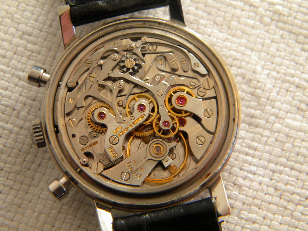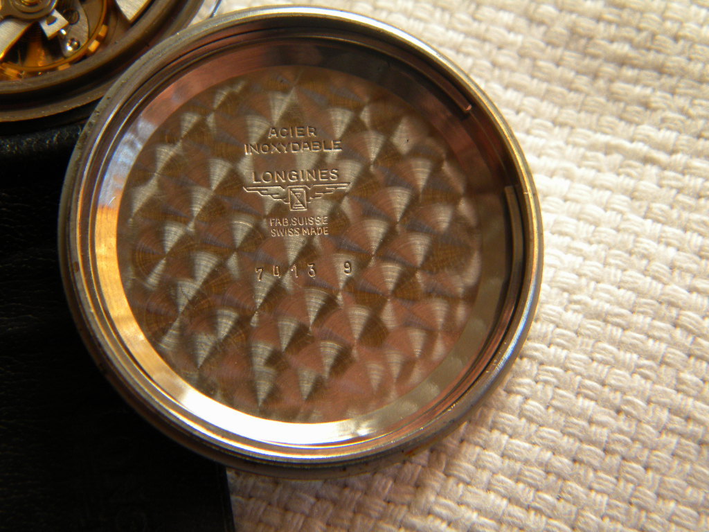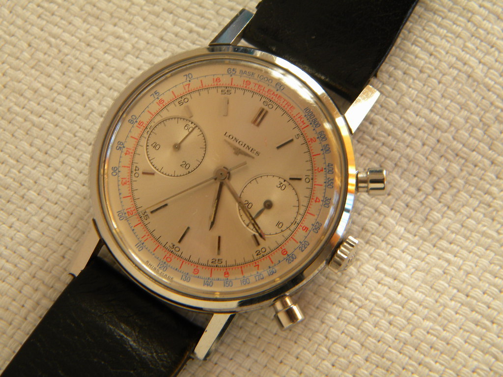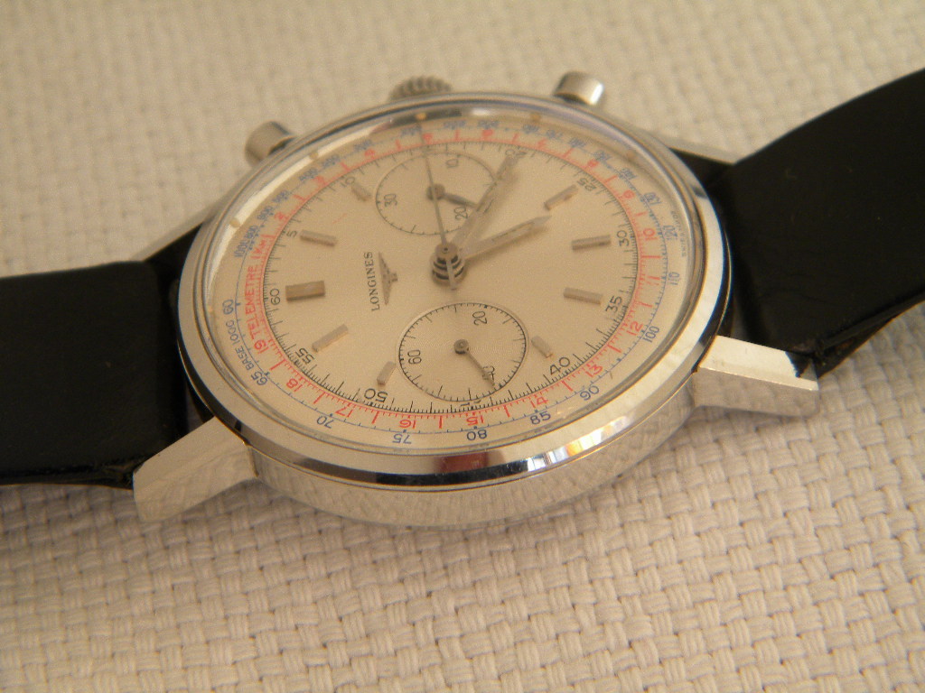 Band and buckle are Longines, also the box. First owner, all matches and was never replaced. Plexi, crown, hands, dial, pushers, mechanical parts and accesories.