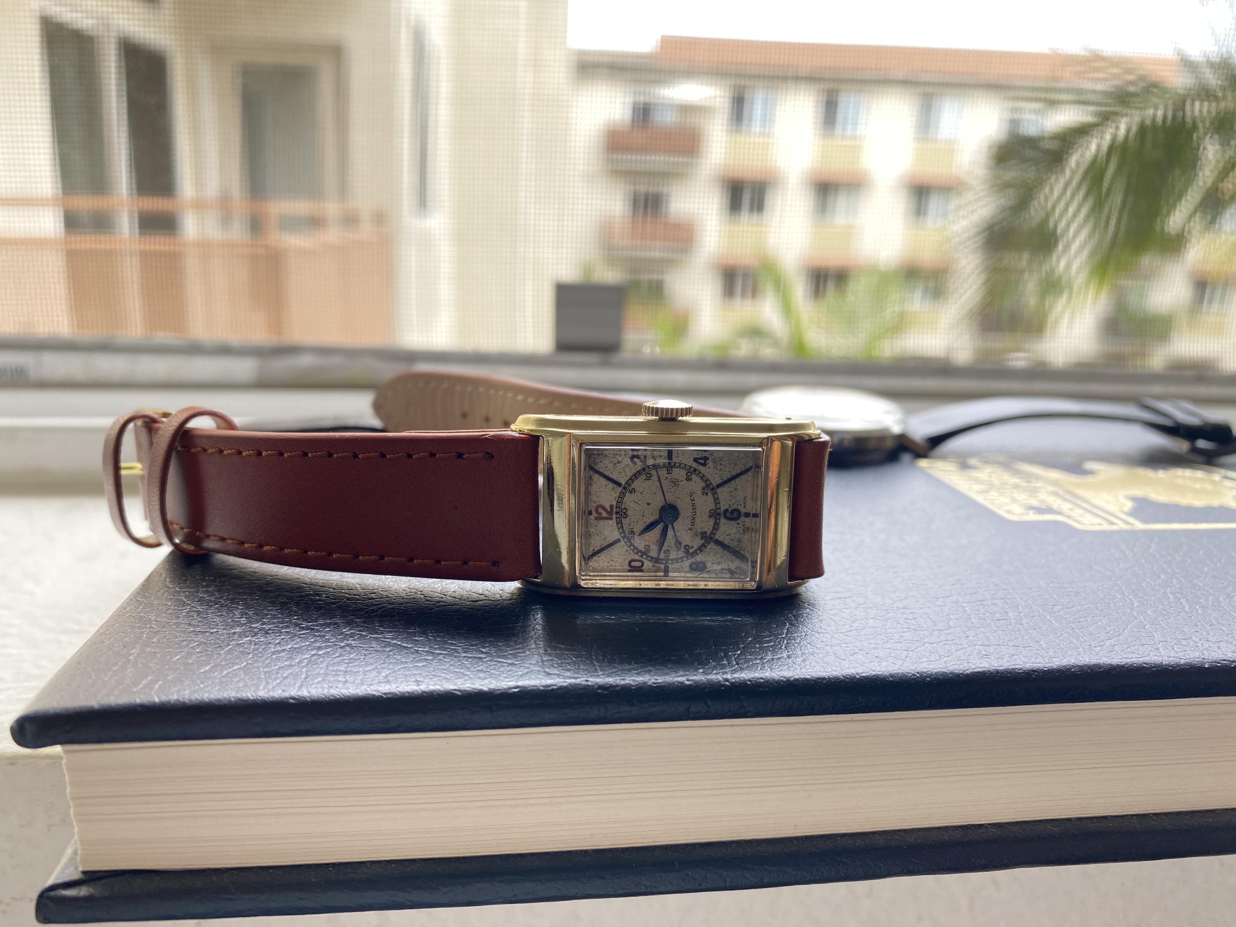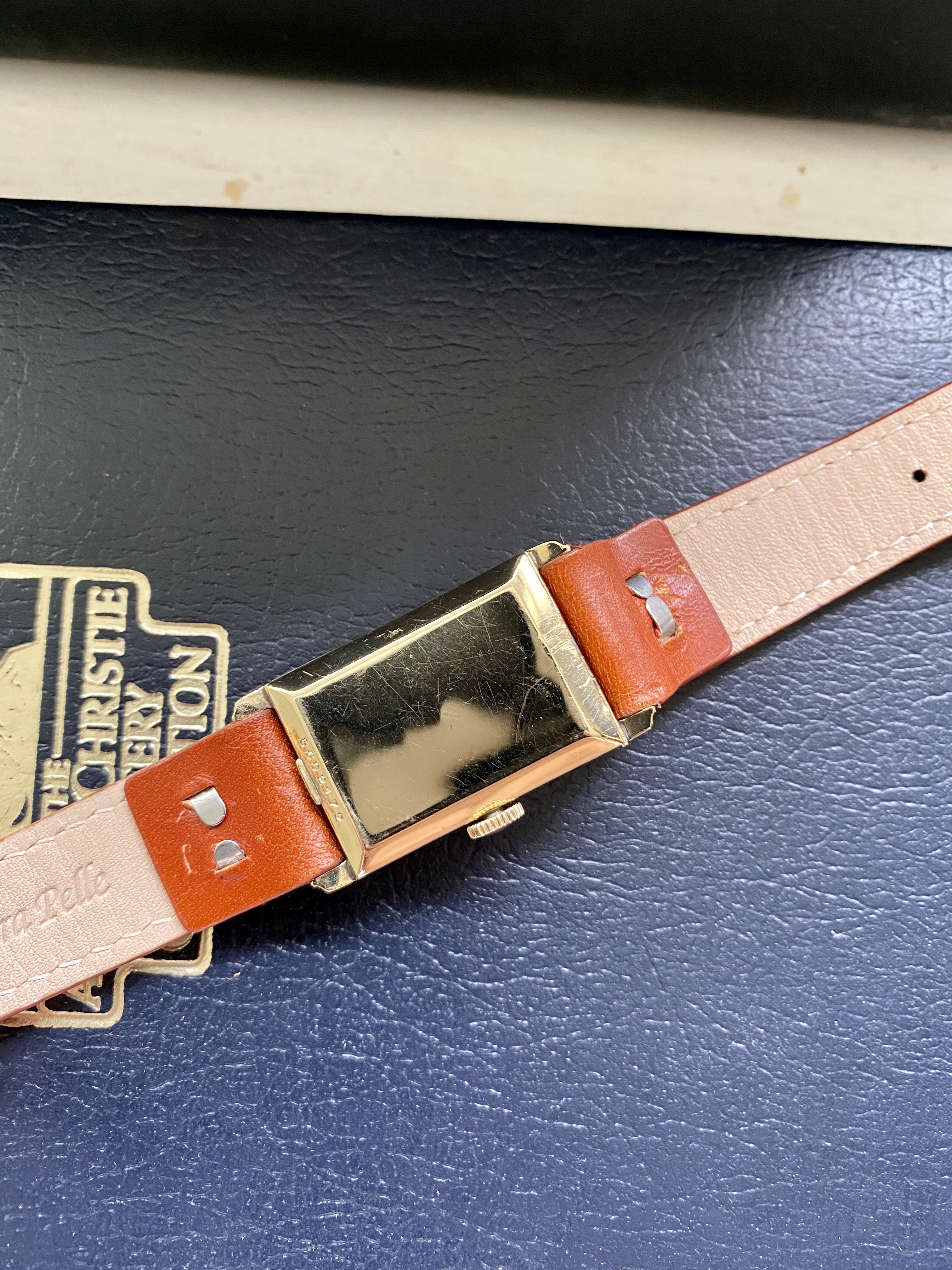 Case: The case is 22 x 37mm including the lugs. It is 9kt and stamped as such. The model number is 3640. In the last service, the case has been very lightly polished including matte on the faceted service on the sided. Kelly indicated that this was how it was originally and restored it as such.