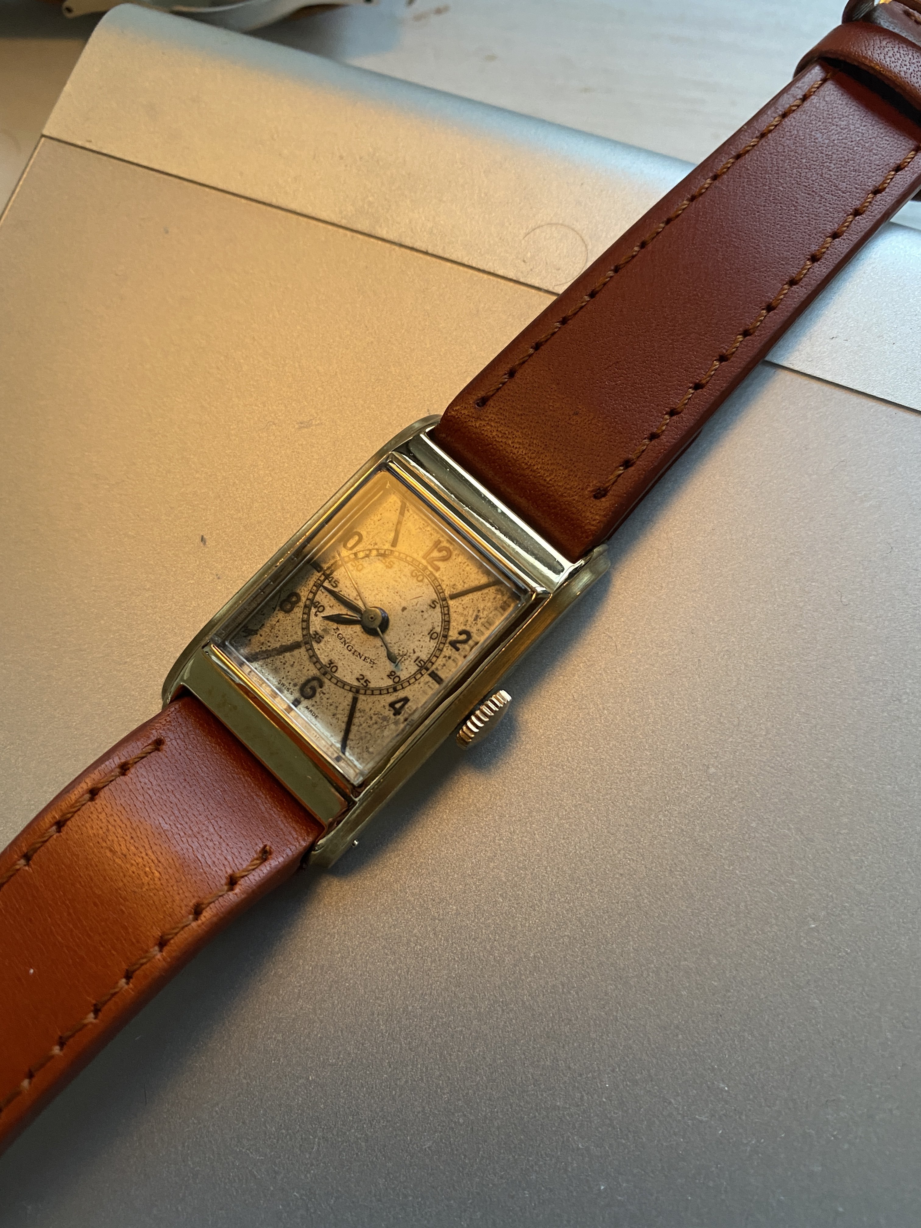 ·I have for sale a Longines tank in 9kt gold with a 25.17 movement.