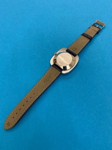 The strap is a brand new navy blue leather one with stainless steel buckle, 20 mm.