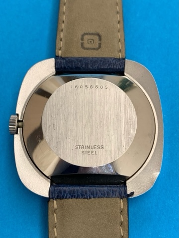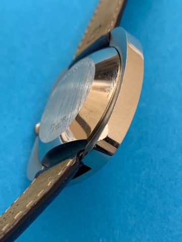 The cushion outer case is made of chrome plated stainless steel, has size of 41mm across and 12mm thickness. The case is unpolished - has original sharp edges, no deep scratches or dings on case’s face, just one ding on the back between 7 and 8 o’clock.