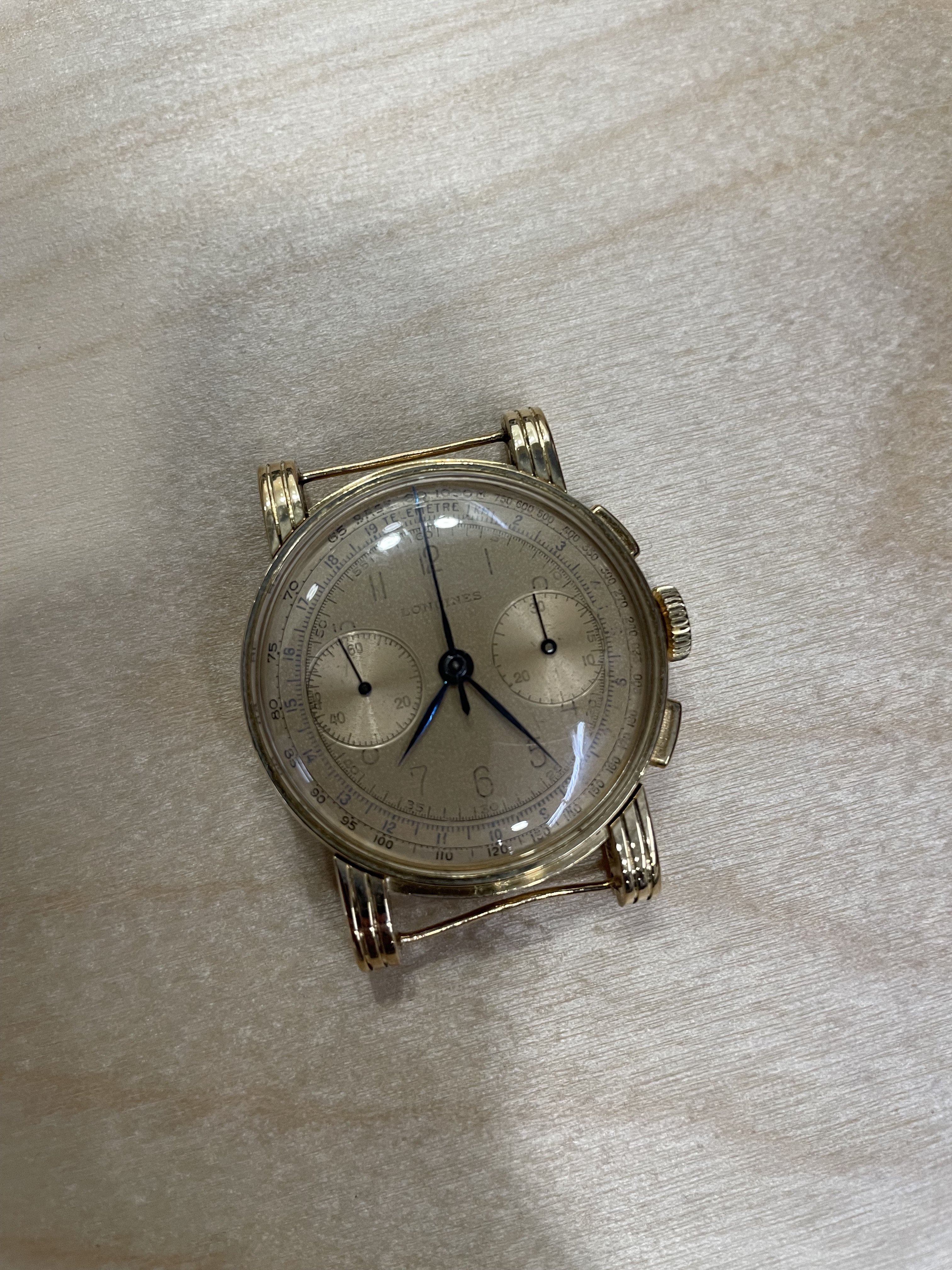 The movement should be a caliber 13ZN. I have seen a similar case before, but I do not know the reference number. However, most collectors would refer to this watch by its caliber (13ZN). Determining the exact year of original invoice would require contacting Longines' Heritage Department, however the watch was likely produced in the early to mid-1940s . Notably, the dial looks original (not refinished), which is important for the value.