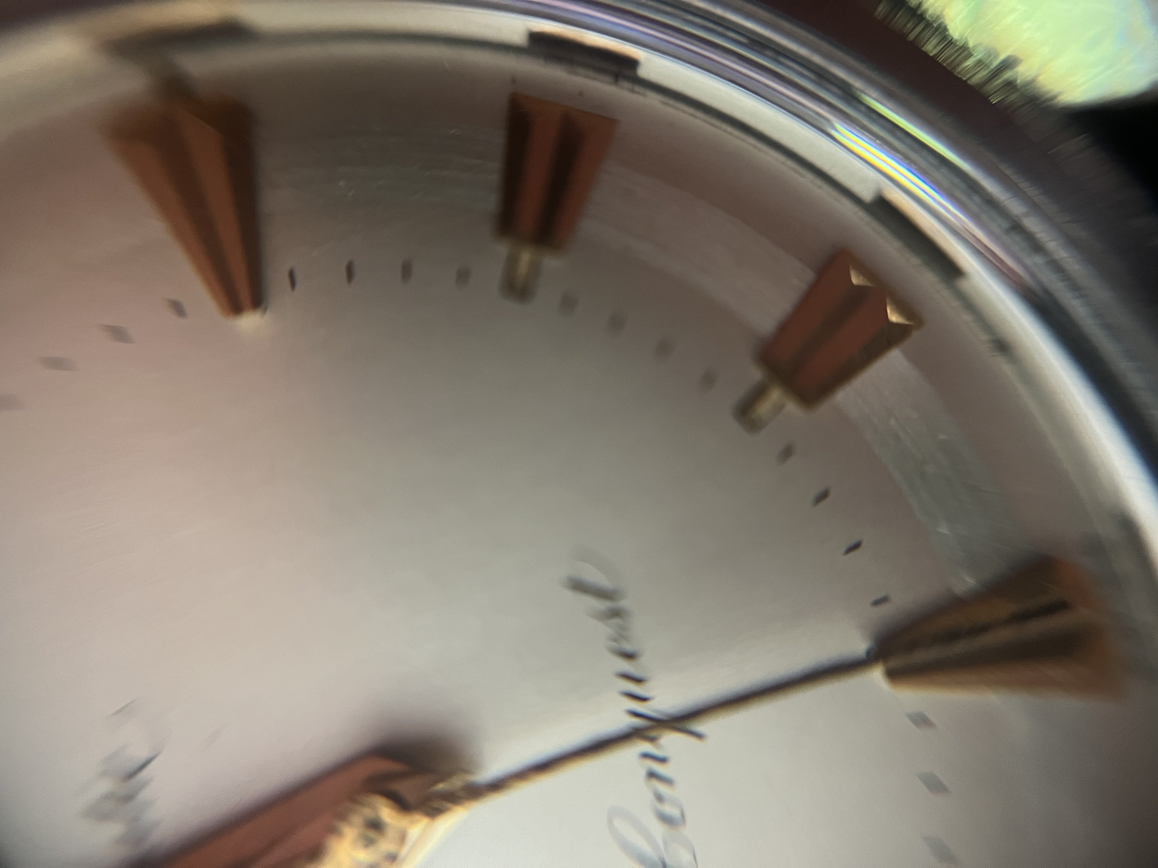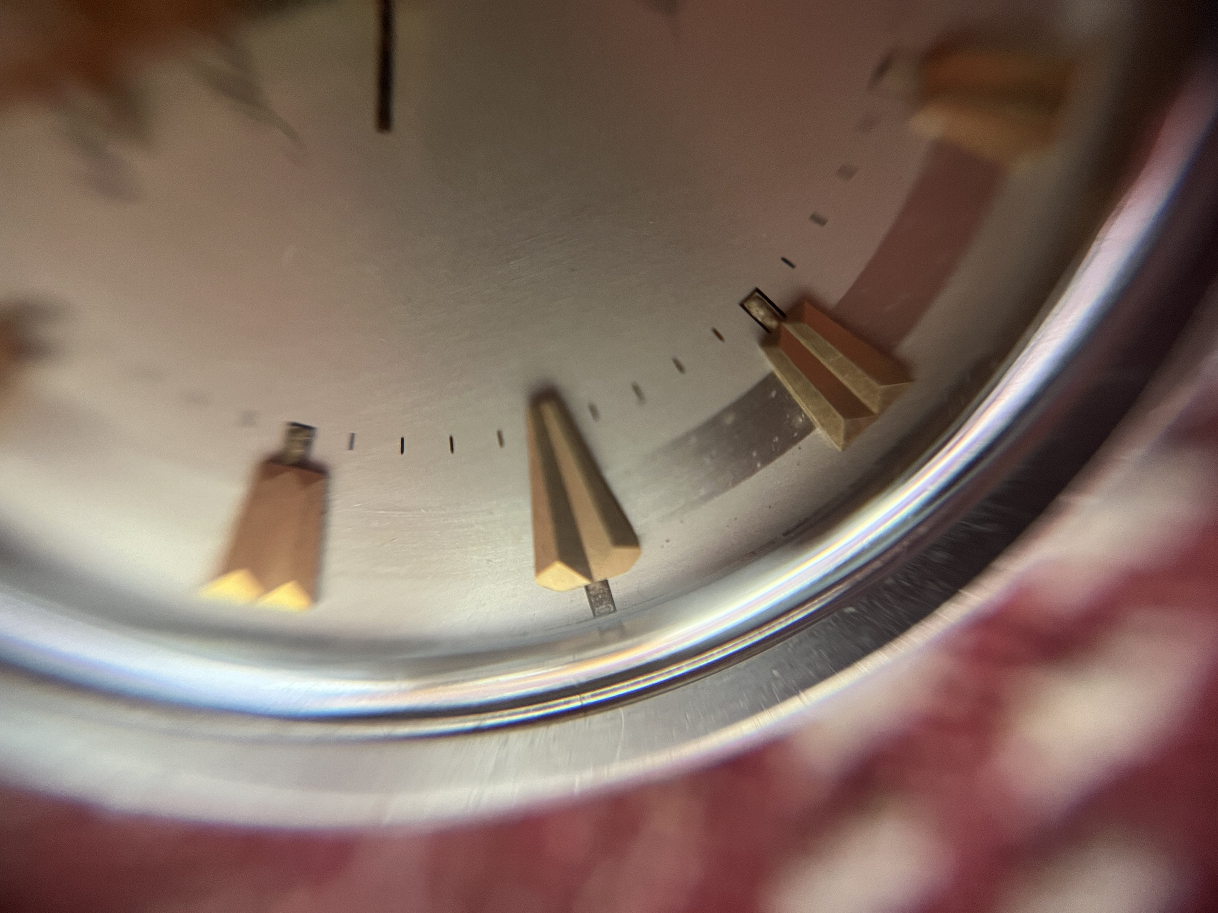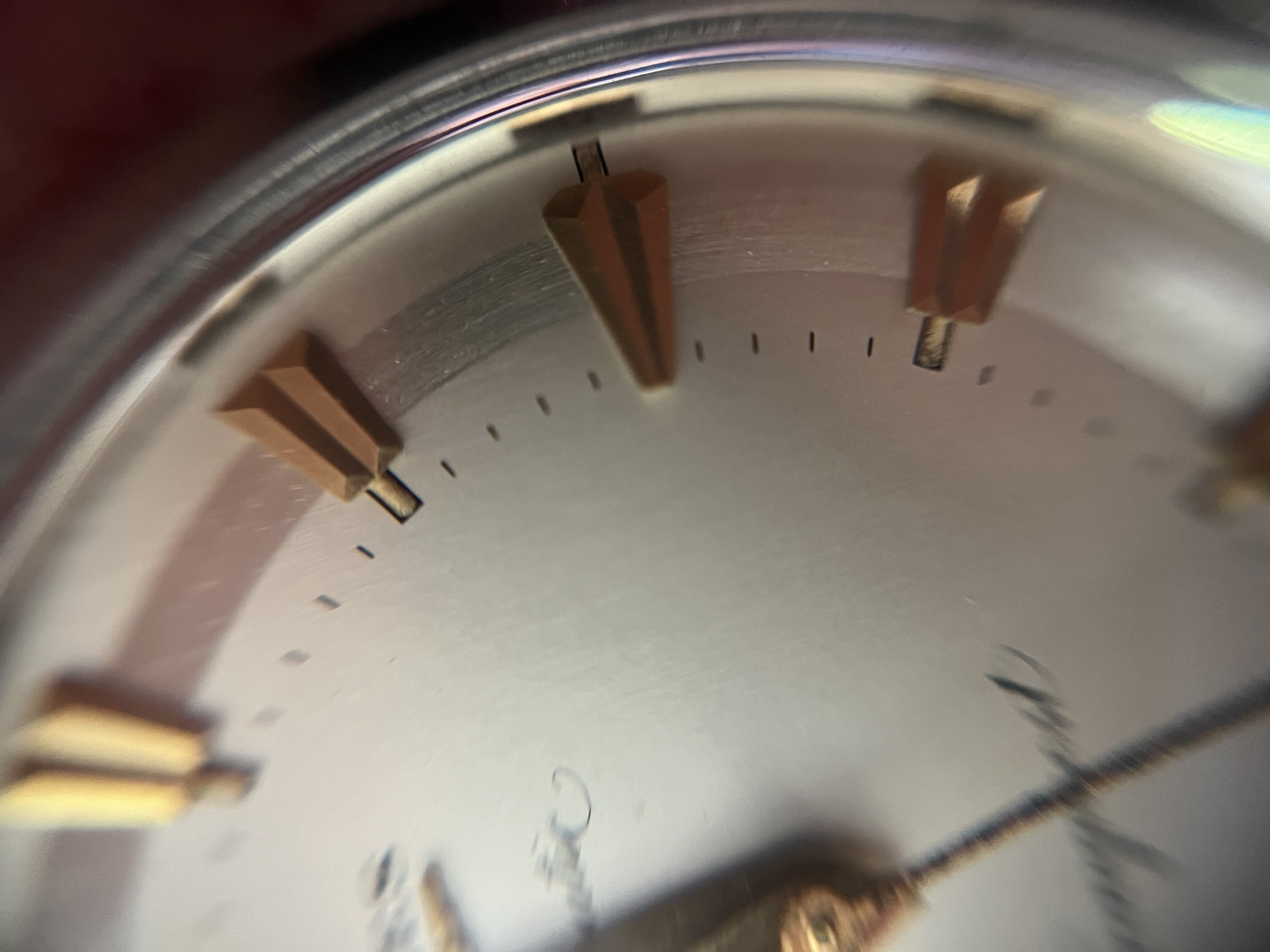 DIAL: Is in an excellent and original condition. The brushed reflective ring that surrounds the dial gives a remarkable expression on the dial. The hour markers are in rose gold