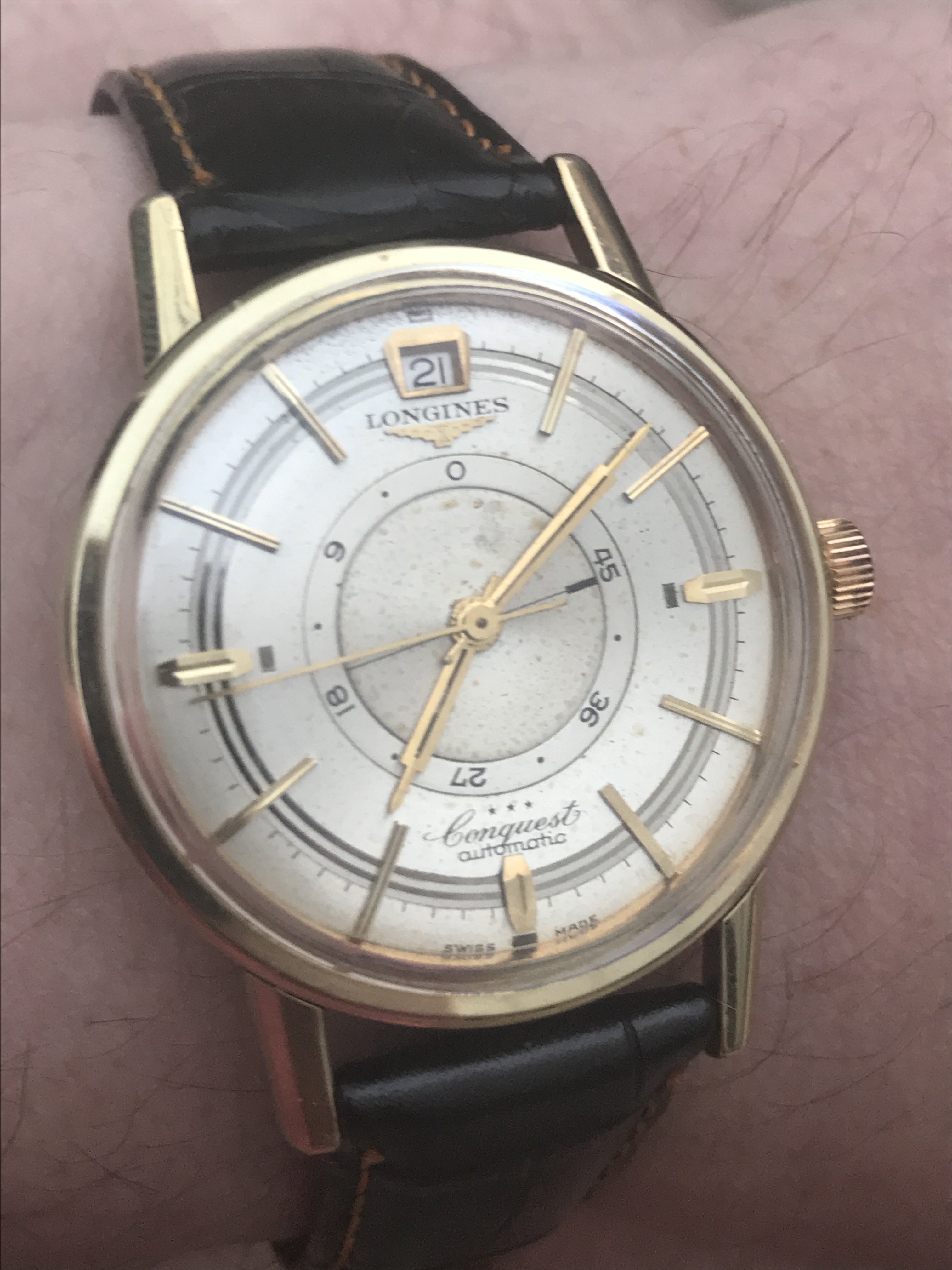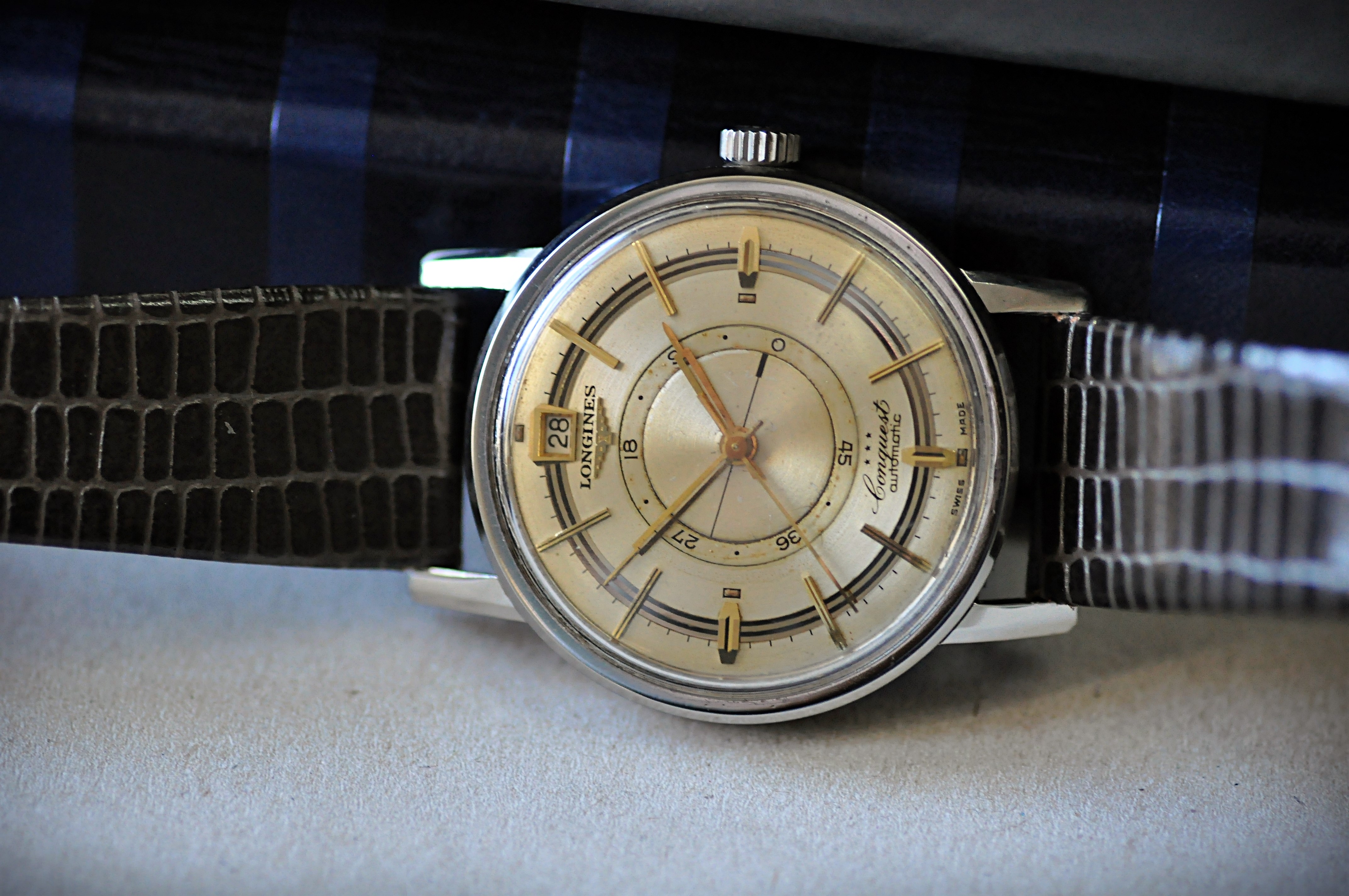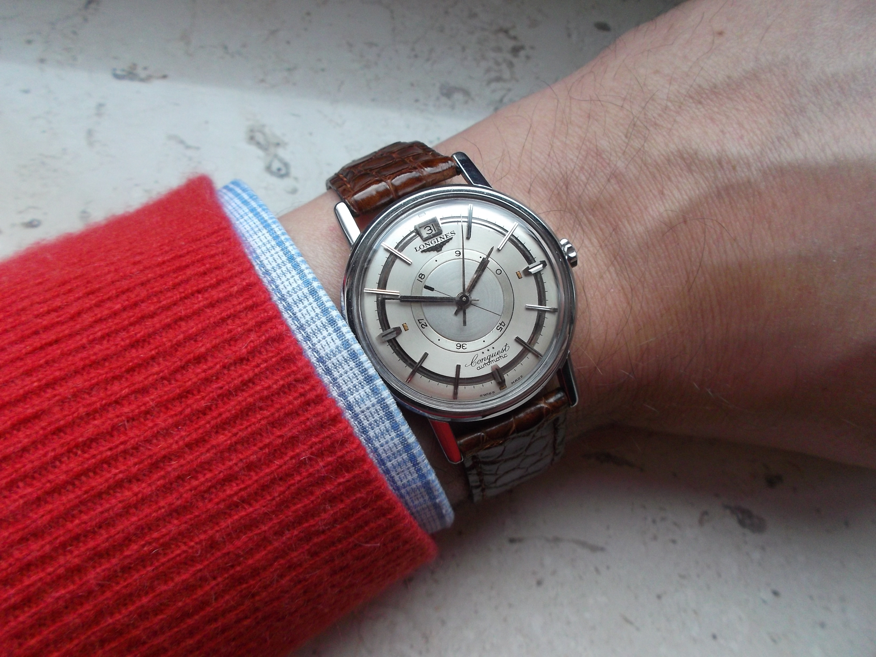 ·So, if I'm nitpicking the lugs are a little over polished, there is some light spotting on the dial, and the crown is totally wrong. But I'll be damned if that railroad track dial isn't one of the best I've ever seen. It's totally gorgeous, and I'm smitten.
