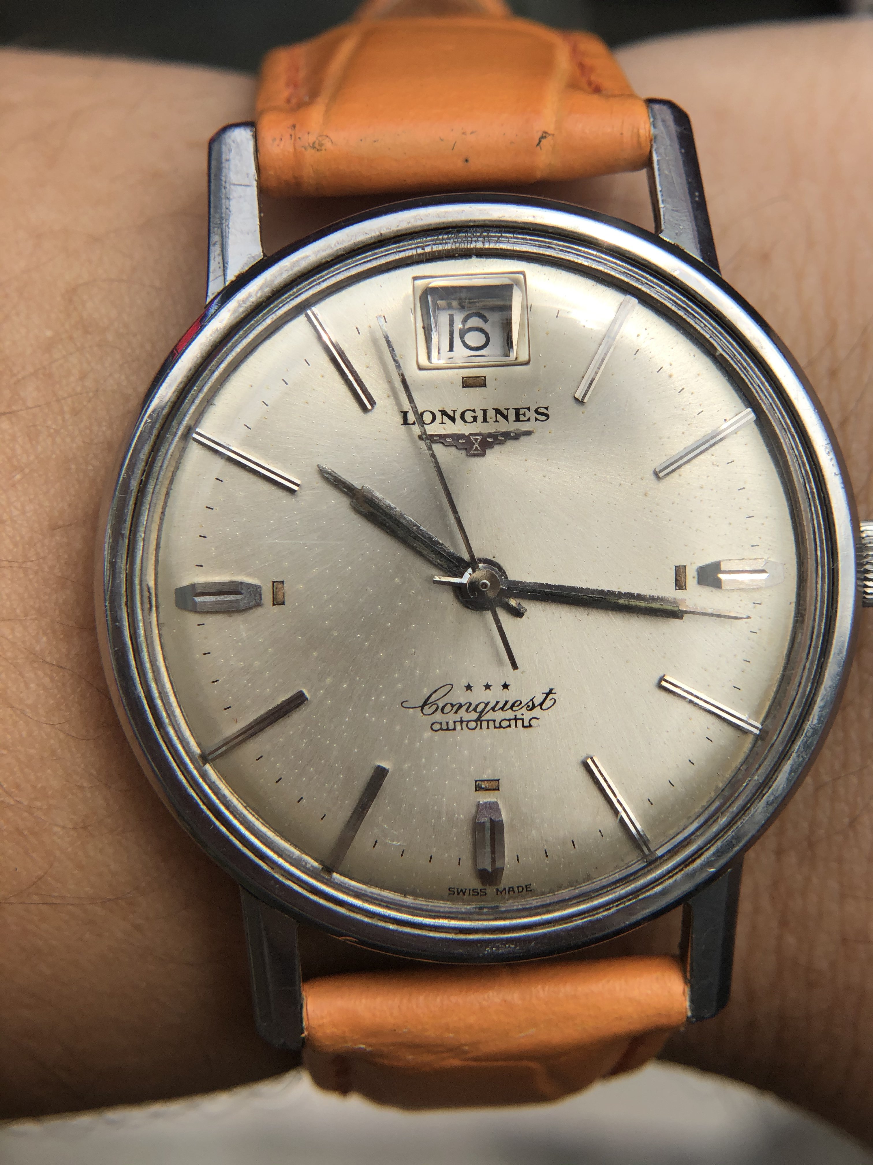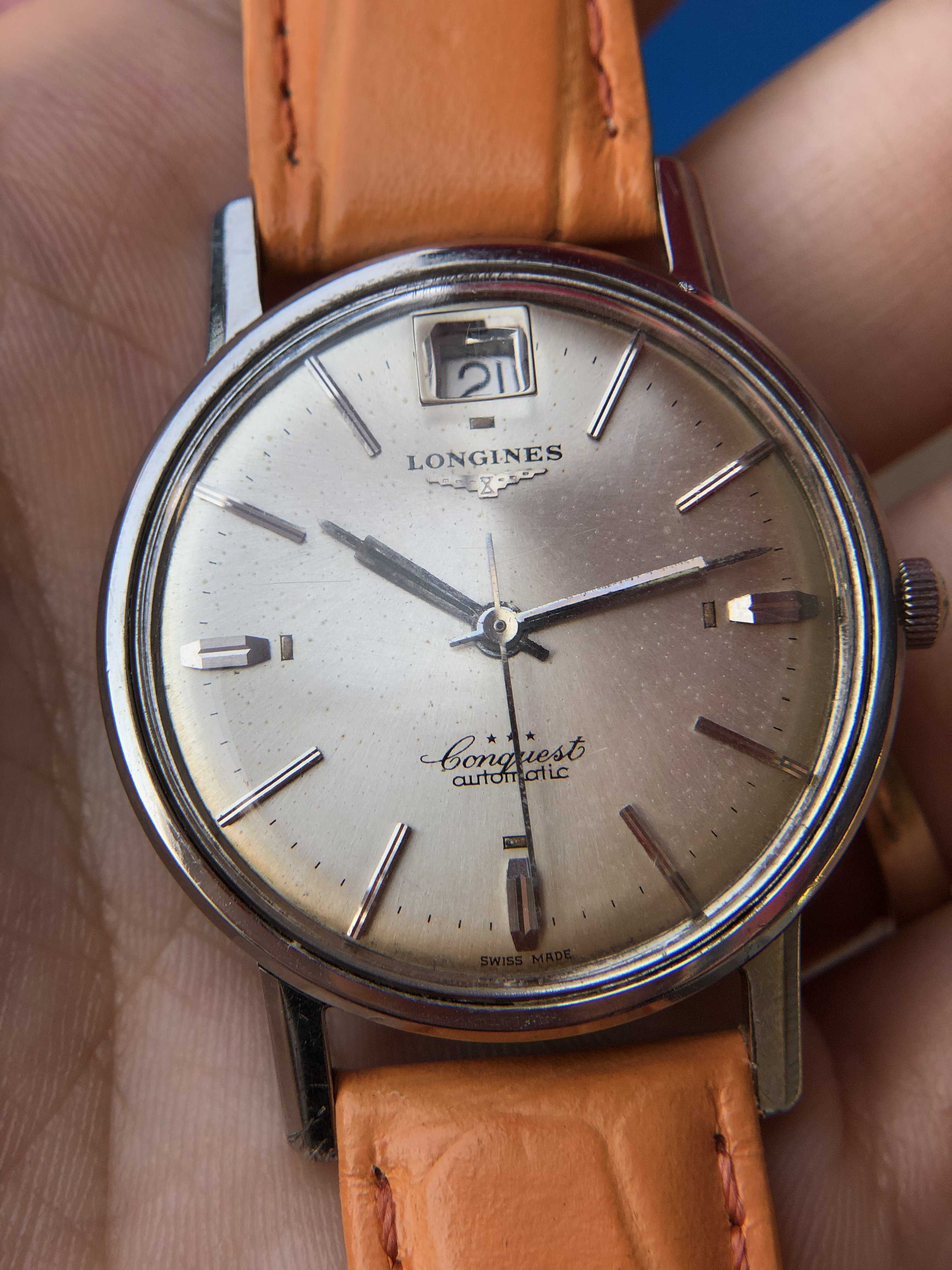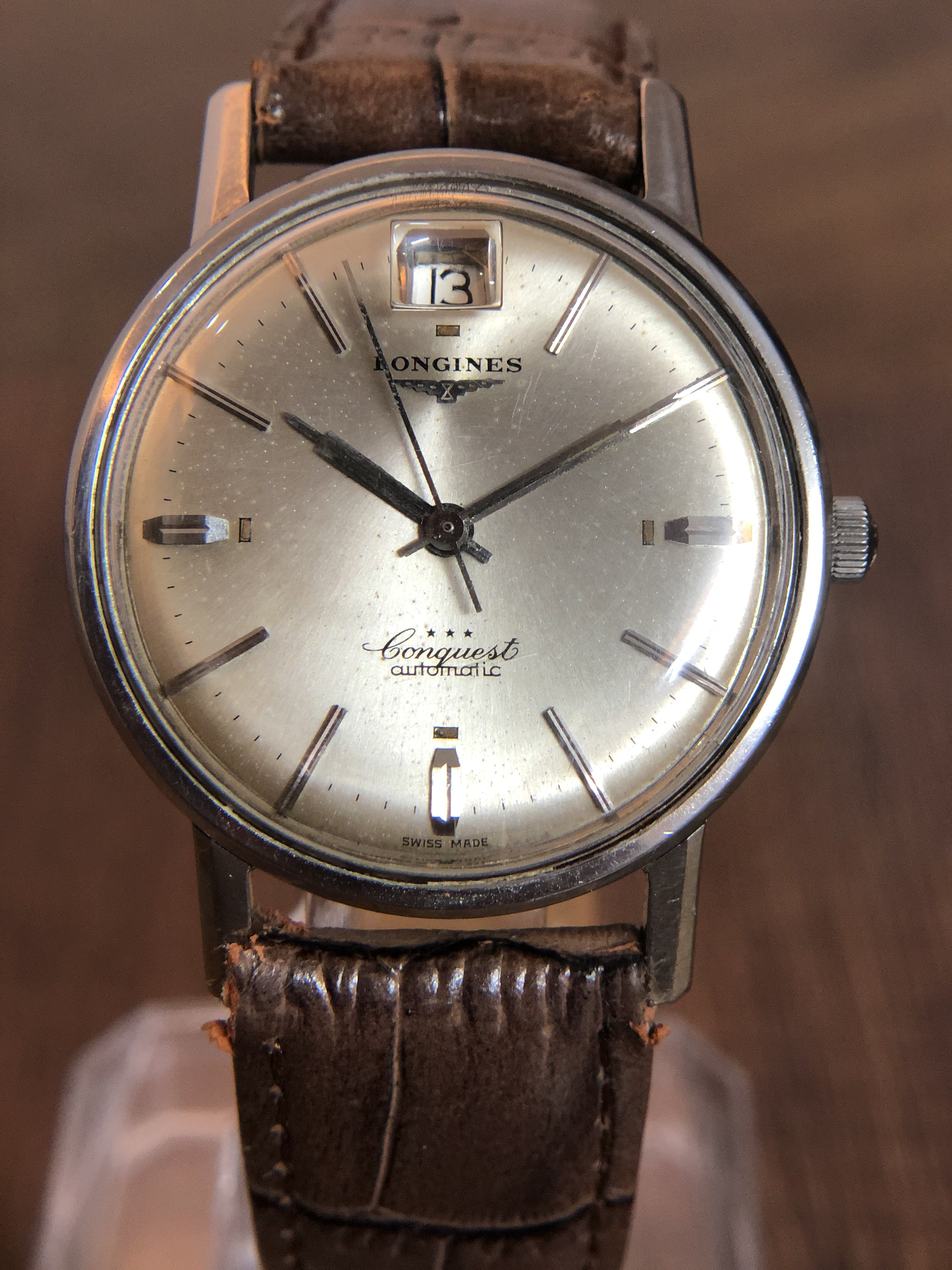 Up for sale today is a Vintage Longines Conquest with quite an usually date at 12.