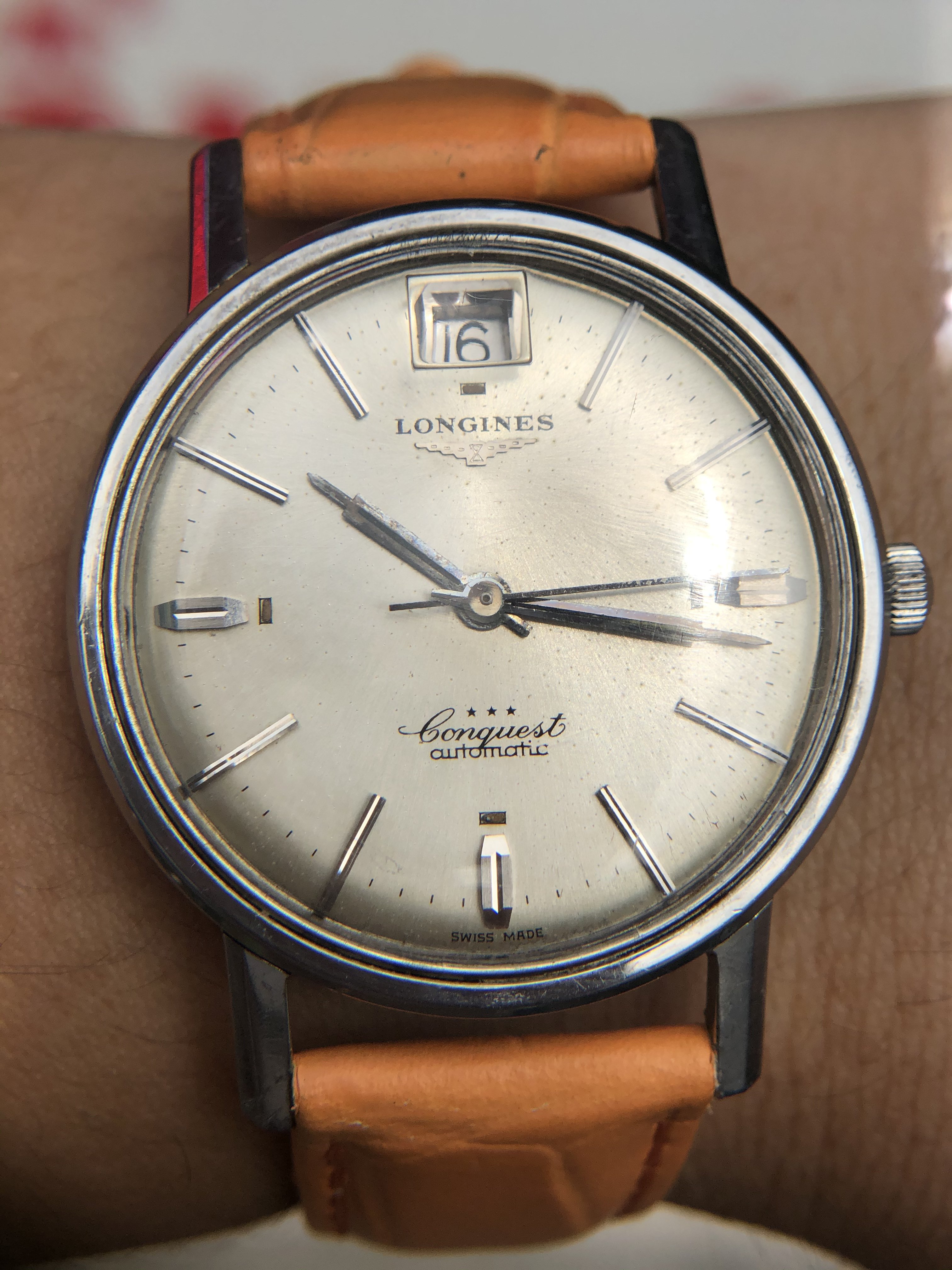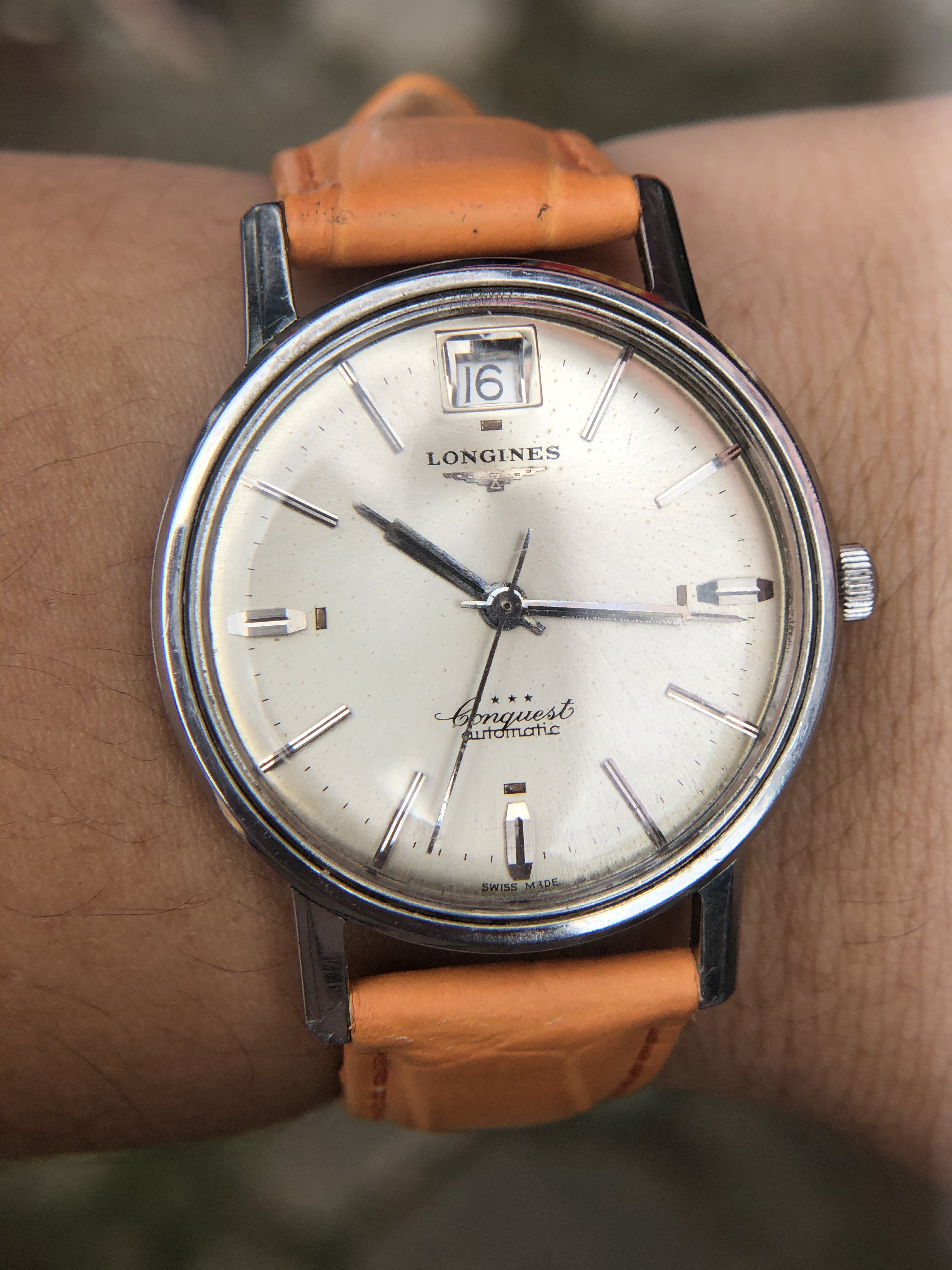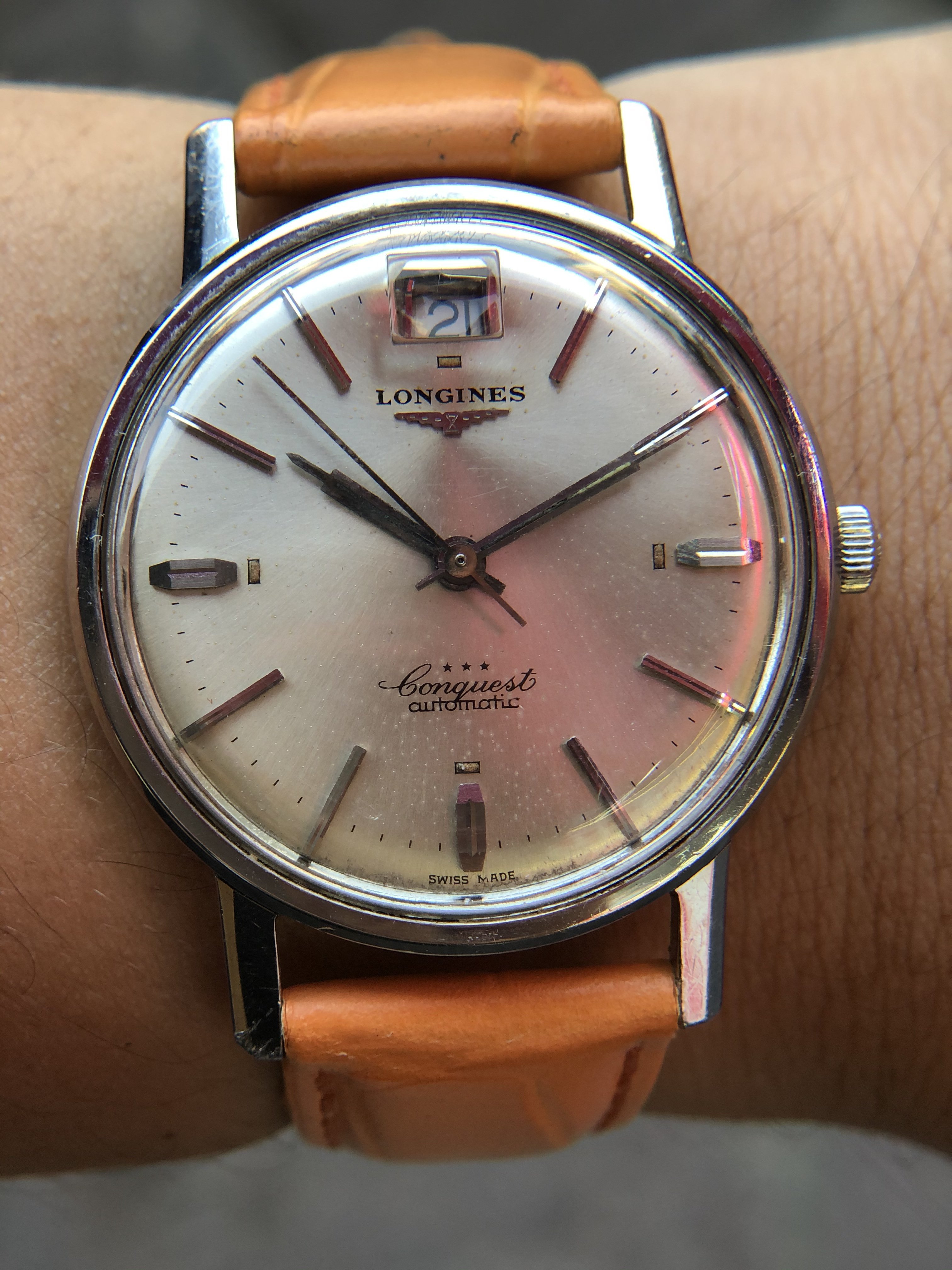 Up for sale today is a Vintage Longines Conquest with quite an usually date at 12.