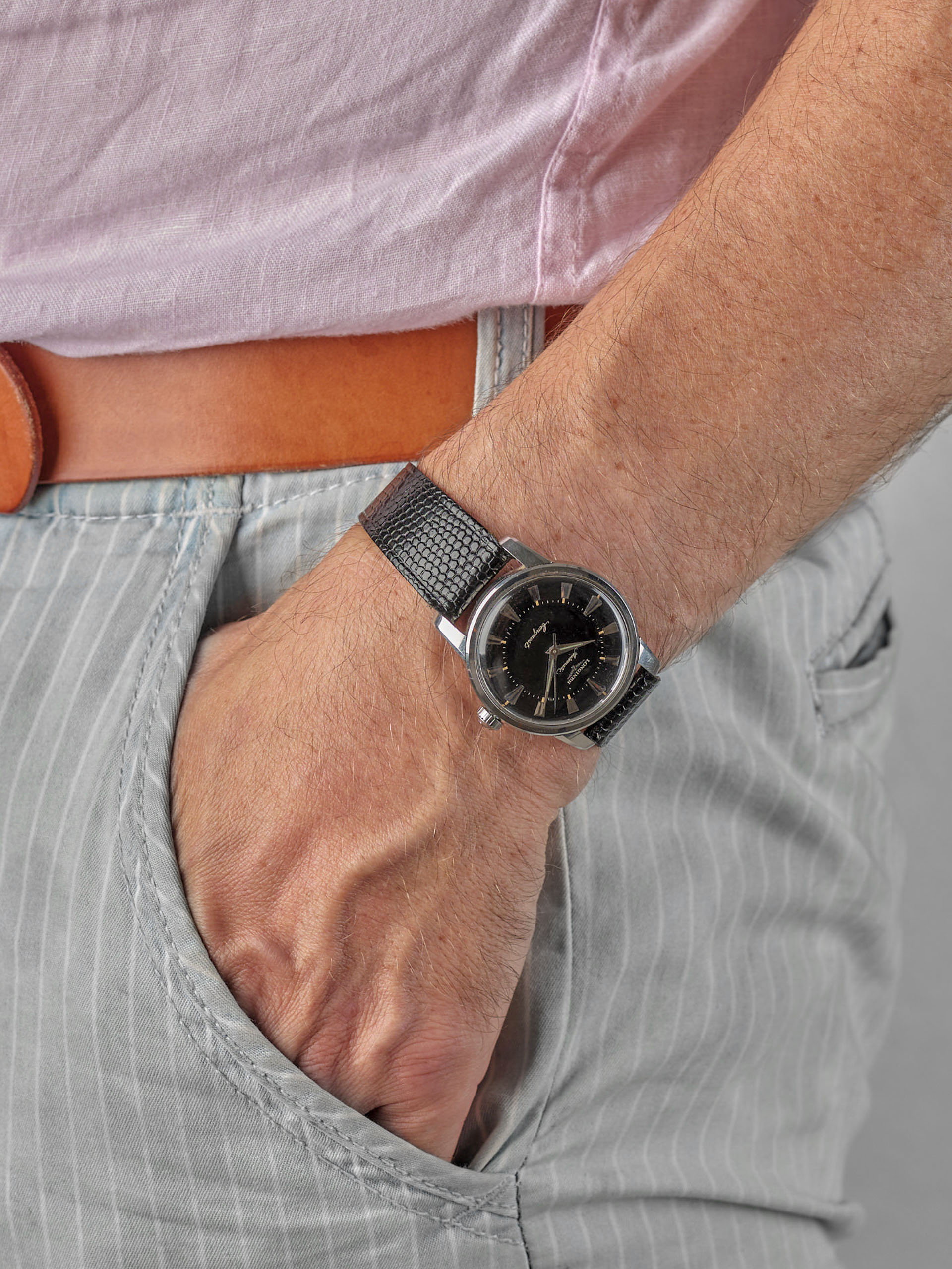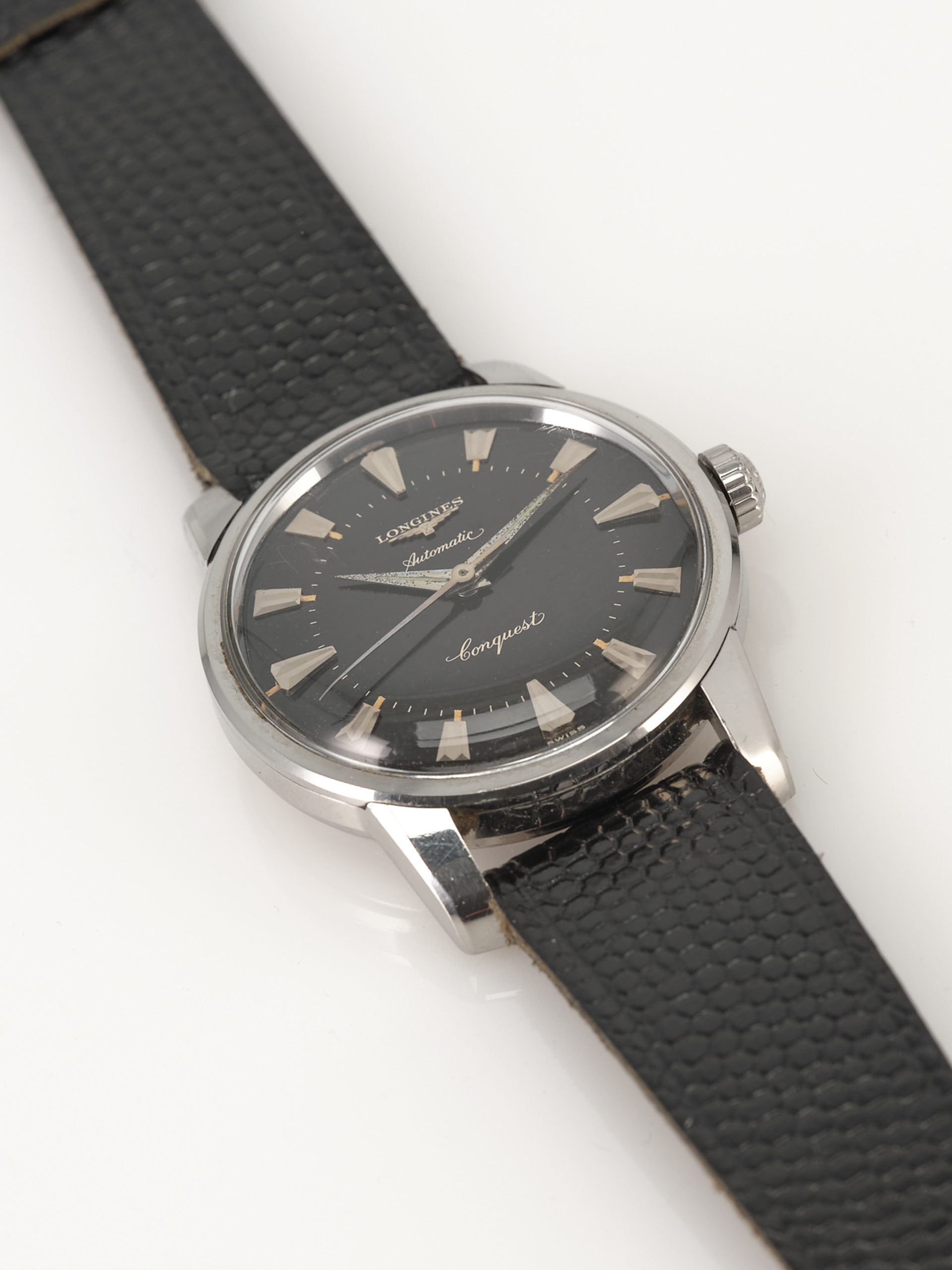 ·Longines Conquest watches from the late 50s early 60s are quite easy to find in silver or white dials. It is a watch which is comparable to the omega Constellation and the Seamaster of that era. All of these models are very rare with gloss black dial. Fine thing is that the Longines Conquest is still a watch you can buy at affordable price point. The condition of this piece is extremely good.