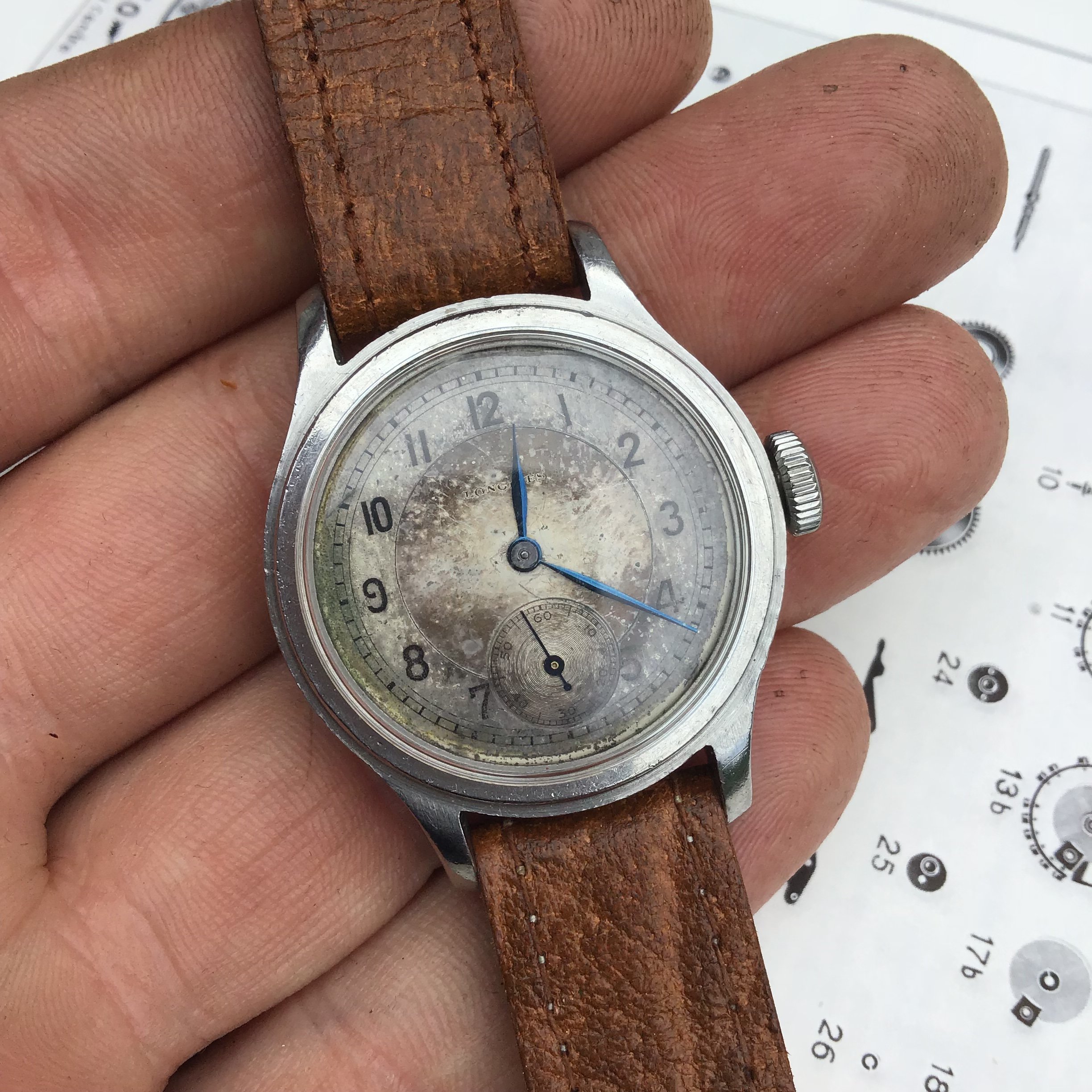Respectfully, I would like to state that I have never represented the black dial as being original to the watch. To be clear, I do not believe this black dial is original to this watch. Indeed all other MN Longines examples have white dials.