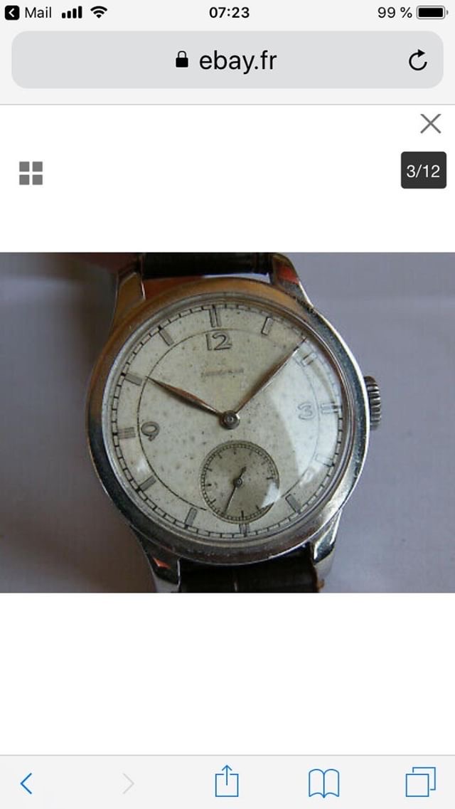 Very impressive, @Syrte ! Thank you for sharing this. What a terrible transplant. The 1930's-style dial does not look right in that 1940's 3T case. The seller even got the caliber name wrong in the title of his listing. A real shame.