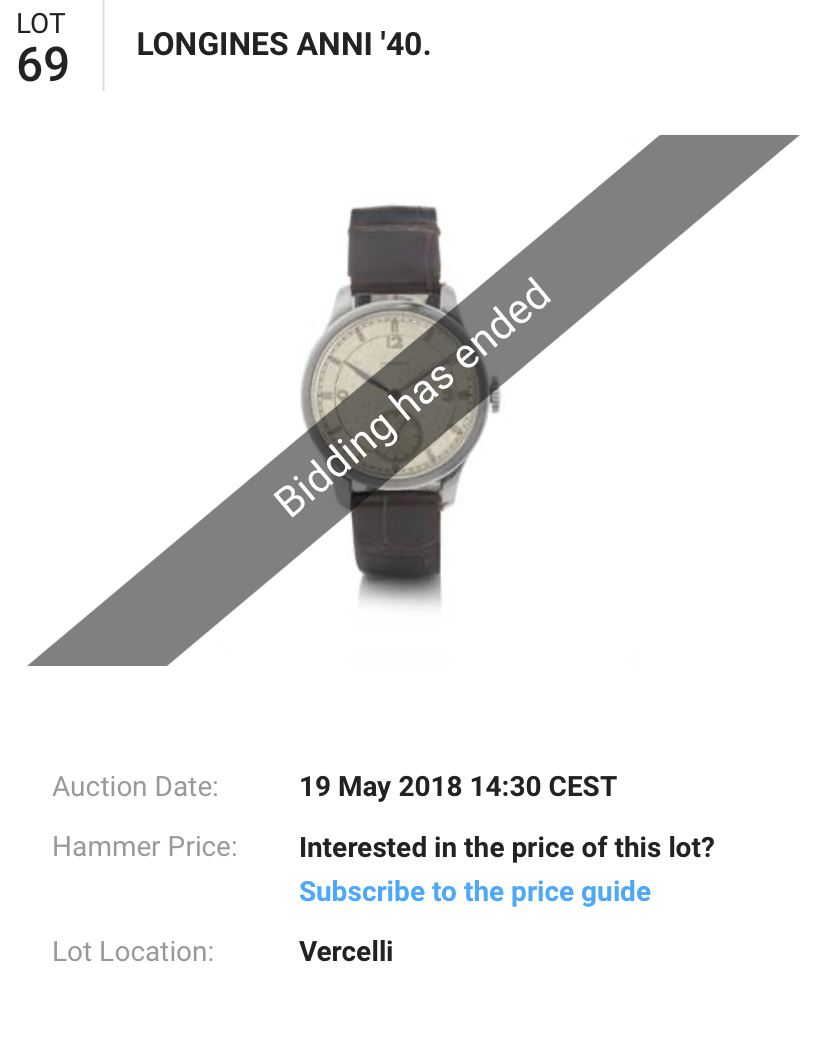 - original watch sold at Italian auction on May 19, 2018.