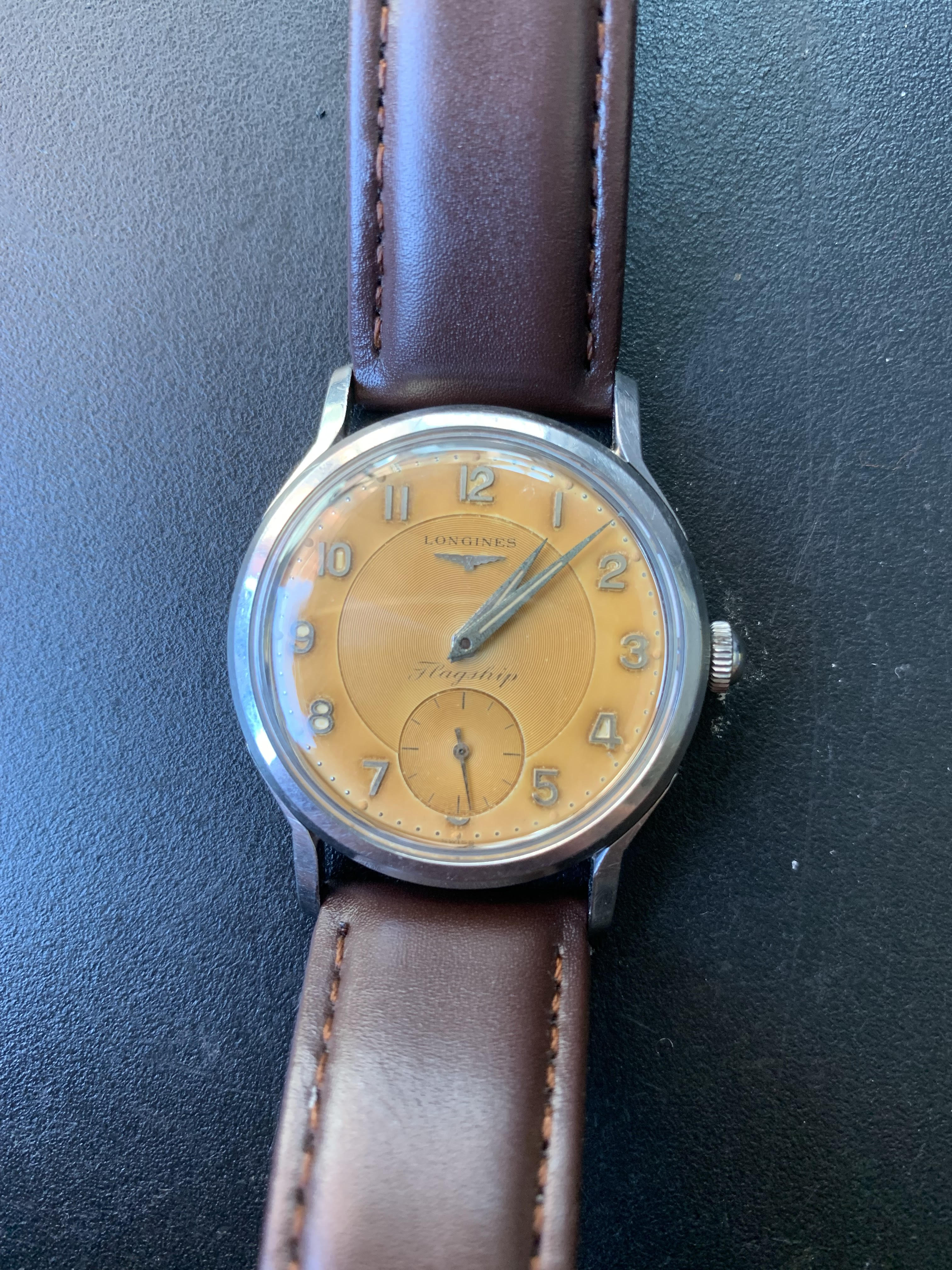 ·Today I was delighted receive a vintage grail of mine from a fellow forum member, a vintage Longines with a black dial and arrowhead markers. It's a Reference 6817, just one digit lower than the 6818, which I believe was officially the first Longines Flagship? I contacted the Longines History Department and it seems that the Reference 6817 is not listed in their records as a Flagship model, but further research from the Longines 30L Website shows that all of this reference have Flagship dials, and all seem to have been sold in Norway. Unlike other Flagships, the case back has no medallion or other pictorial engraving, much like the early All Guard which became the Conquest in 1954.