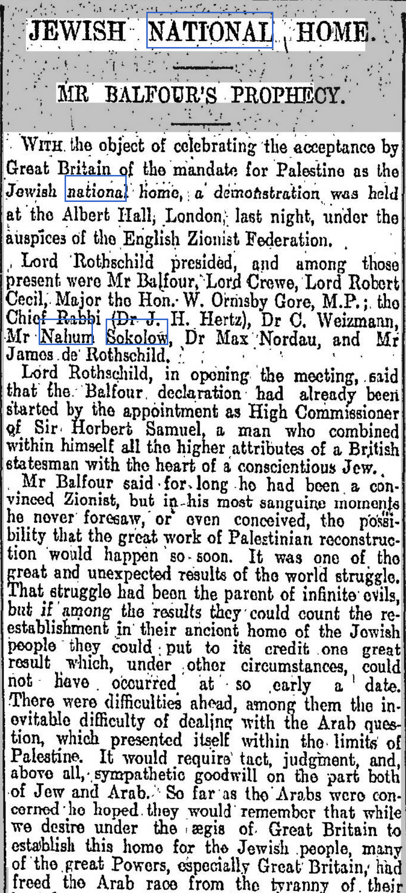 It was Sokolow, apparently, who coined the politically ambiguous though emotionally expressive term “Jewish national home.”