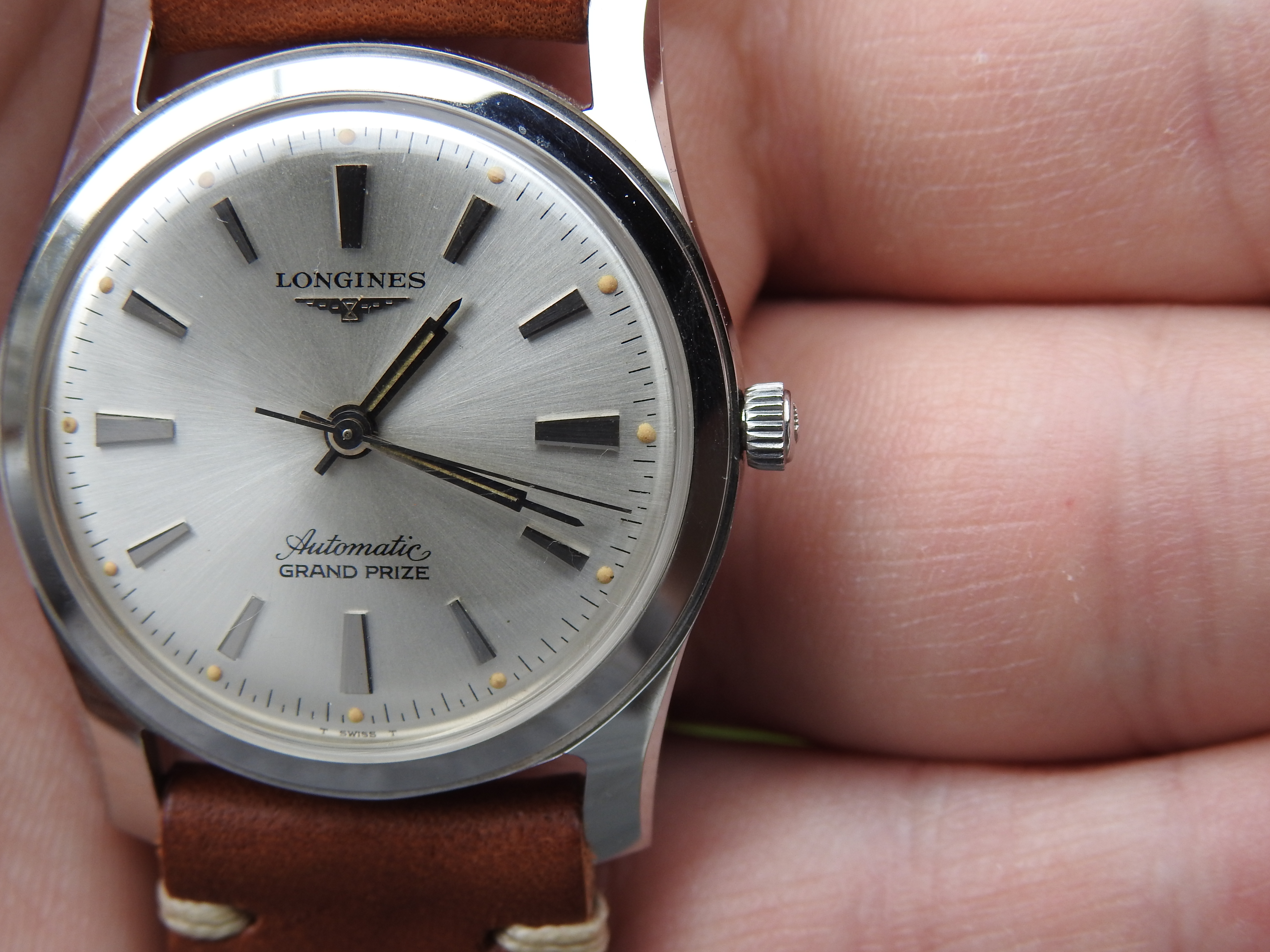 The printing on both dials are also slightly different. That is common and I think they are both original dials. Once you get to the mid 1960's, Longines dial finishes began to become synthetic lacquer, which make for a more durable finish. So dials from this period are generally in better condition than other watches only a few years older.