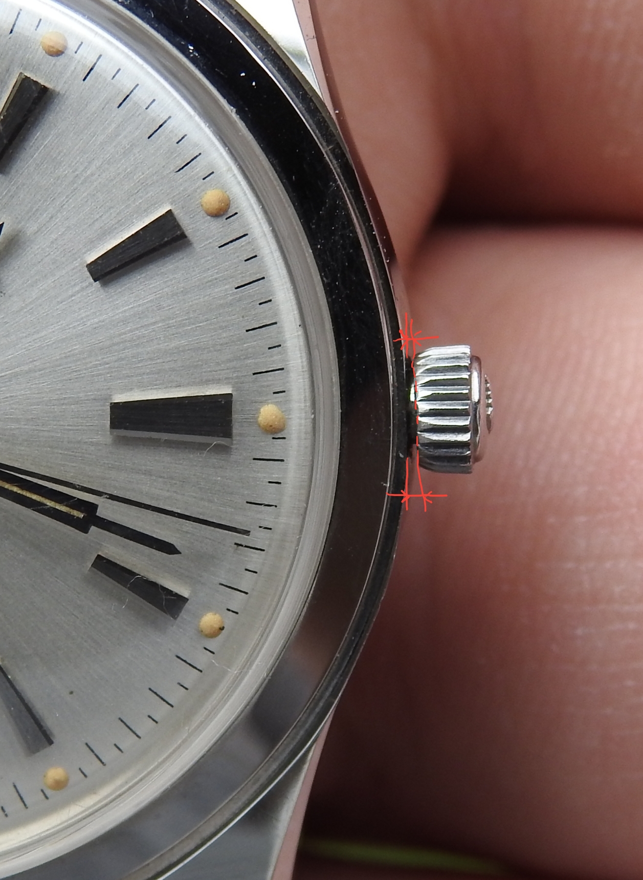 I have some concerns about the "Stainless Steel" engraving being rather shallow. That would indicate some sort of polish and re-creation of the original finish. This is done all the time in restoration work, but if it were, I would not call such a watch New Old Stock ("NOS").