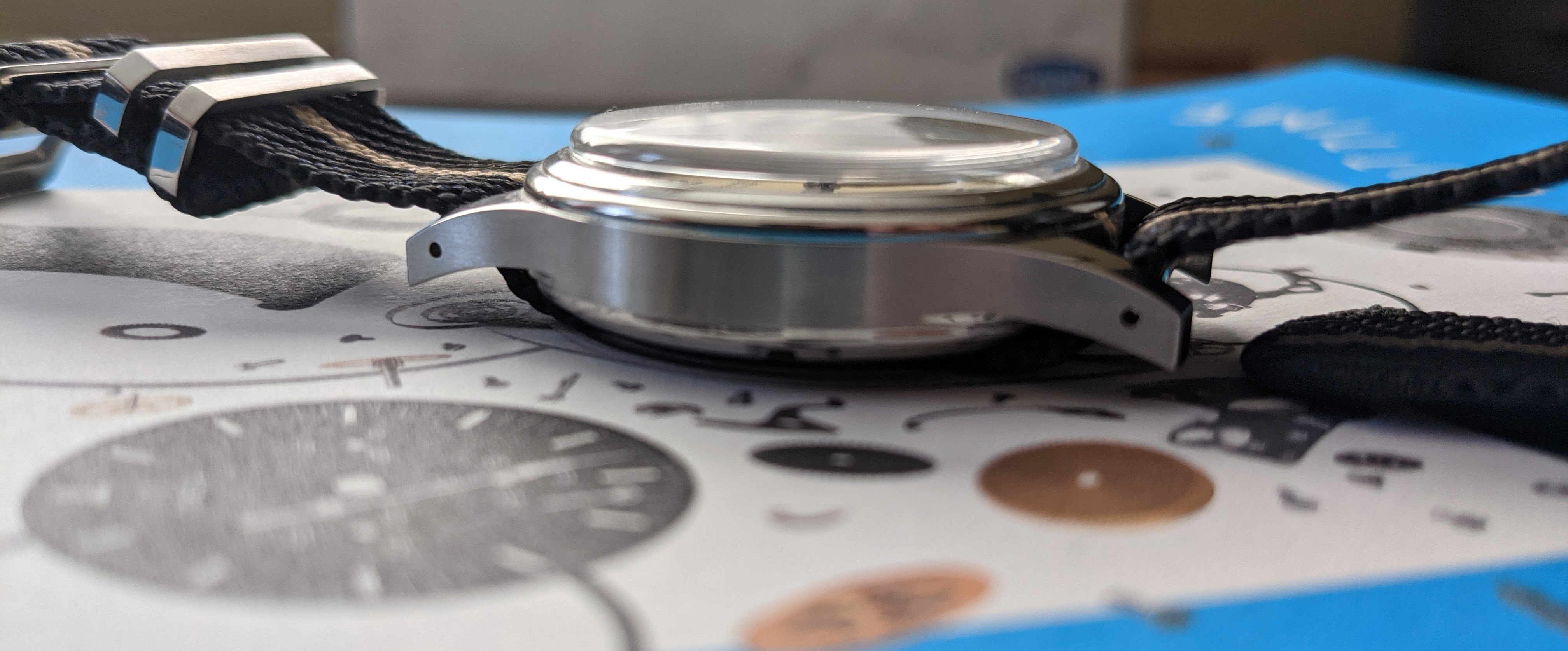 Bracelet: Comes with the original beige nato, brown leather strap and an additional blue nato with beige detail (non OEM)