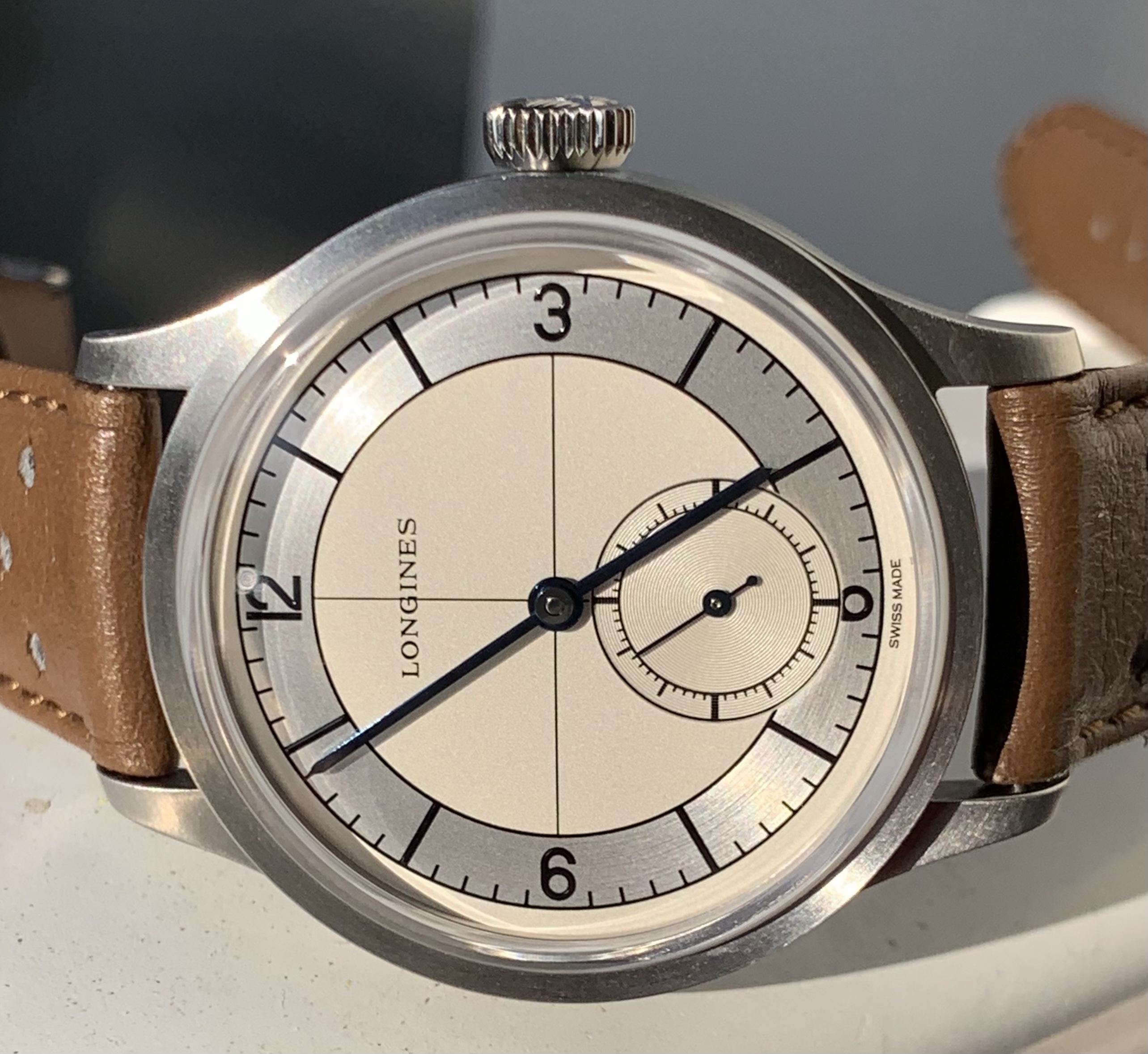 ·For Sale...Longines Heritage Sector Dial.... This stunning piece is another gorgeous model of their Heritage collection. It features a beautiful silver dial with painted Arabic numerals and indexes and blue steel hands. Furthermore, it has a rounded stainless-steel case with a 38.50 mm diameter and scratch-resistant sapphire crystal, which has multiple layers of anti-reflective coating. Case has brushed finish. The watch is mounted on an original Longines blue leather strap and authentic Longines buckle. (Comes with all the goodies)