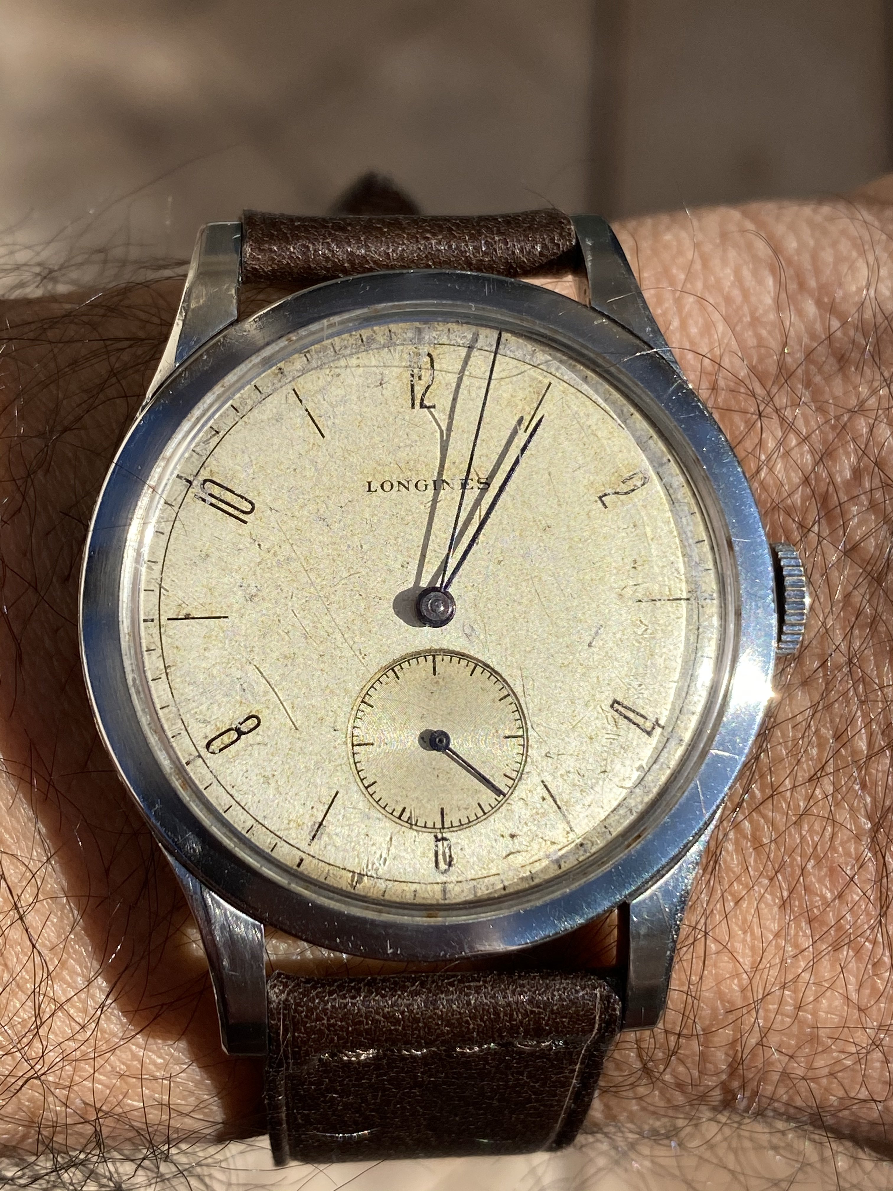 Hi Rumar89. I'm new on omegaforums and my mother language is German - sorry for possible mistakes in my English or breaking rules. But back to the "fixed bar & removable bar discussion". I can add some further information on this. I own a Longines 12.68N from 1941 in a case that is called "cassa bariletto" above. I bought it some time ago from Ebay and it came with one fixed bar and with one removeble bar. The removable bar was installed in the way you describe it by a former owner or a watch maker. This person did a pretty bad job. When drilling one of the holes he missed the exact position. But he noticed it and stopped drilling before the hole went completely througt the lug. The next try was better, the hole was drilled in the correct position completely through the lug. It is impossible that such a bad work all in all would have left the Longines company. I'm quite sure that watches with "mixed bars" have one repaired bar. So what to do with such a watch? To me this is more than what some people would call "patina" or "signs of age and use". To me it is just a bad damage. As the watch showed some more signs of damage - for example a deep scratch at the 9:00 position from unprofessional opening - I decided to have it restored carefully. A correct fixed bar was installed and all the unprofessionally drilled holes were closed. Also the deep scratch at 9:00 was filled up. This works were done by laser welding and the former holes are completely unvisible - even under strong magnification. At last the former surface structure was carefully renewed with a minimum of abrasive work to prevent loss of original substance more than absolutely necessary. I'm happy with this watch, it got back its dignity and beauty.